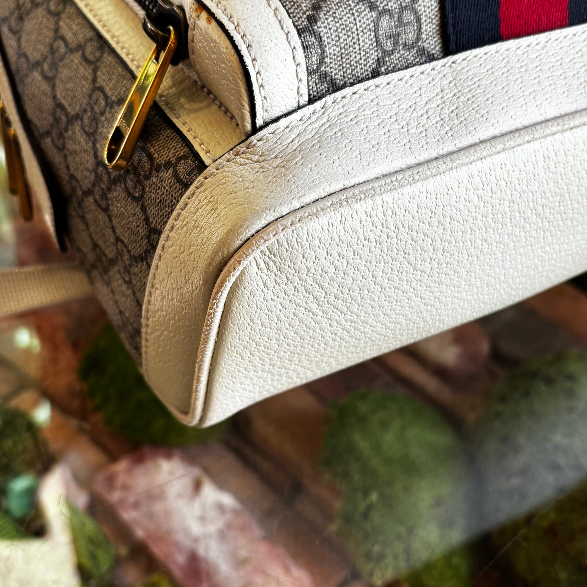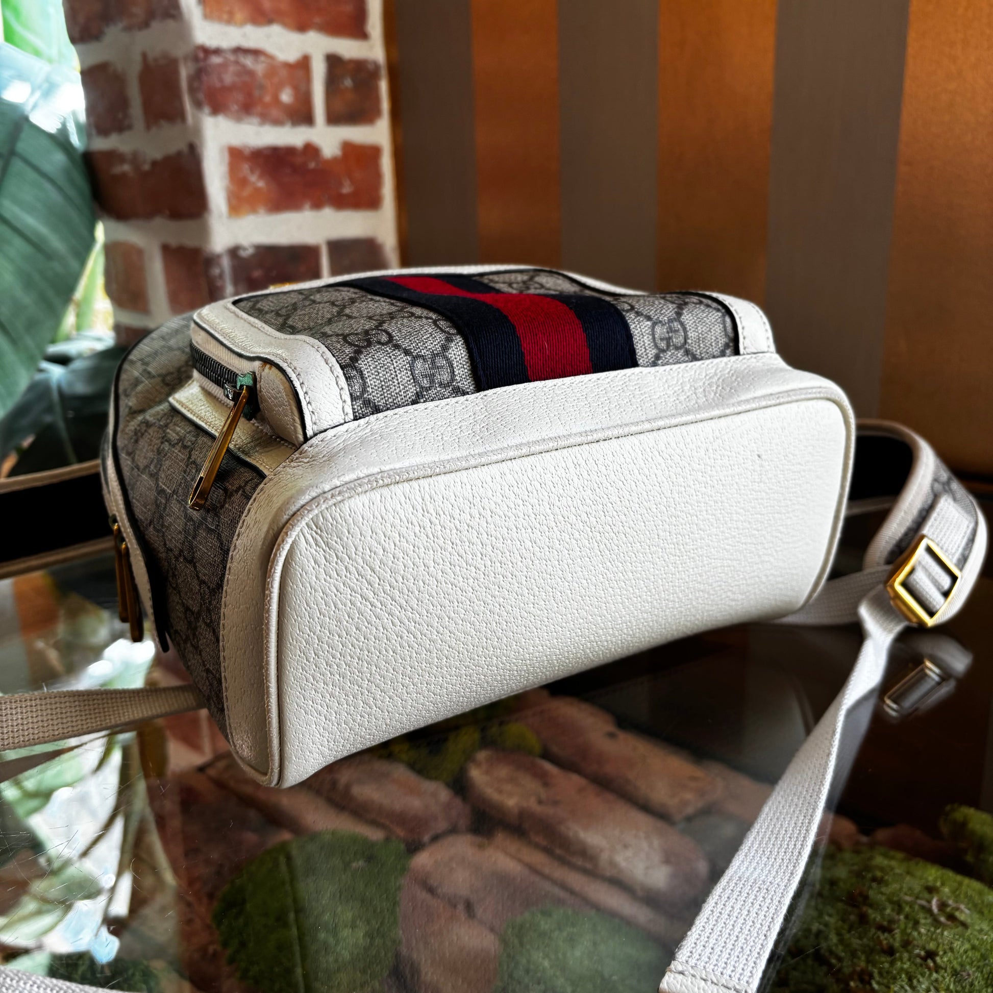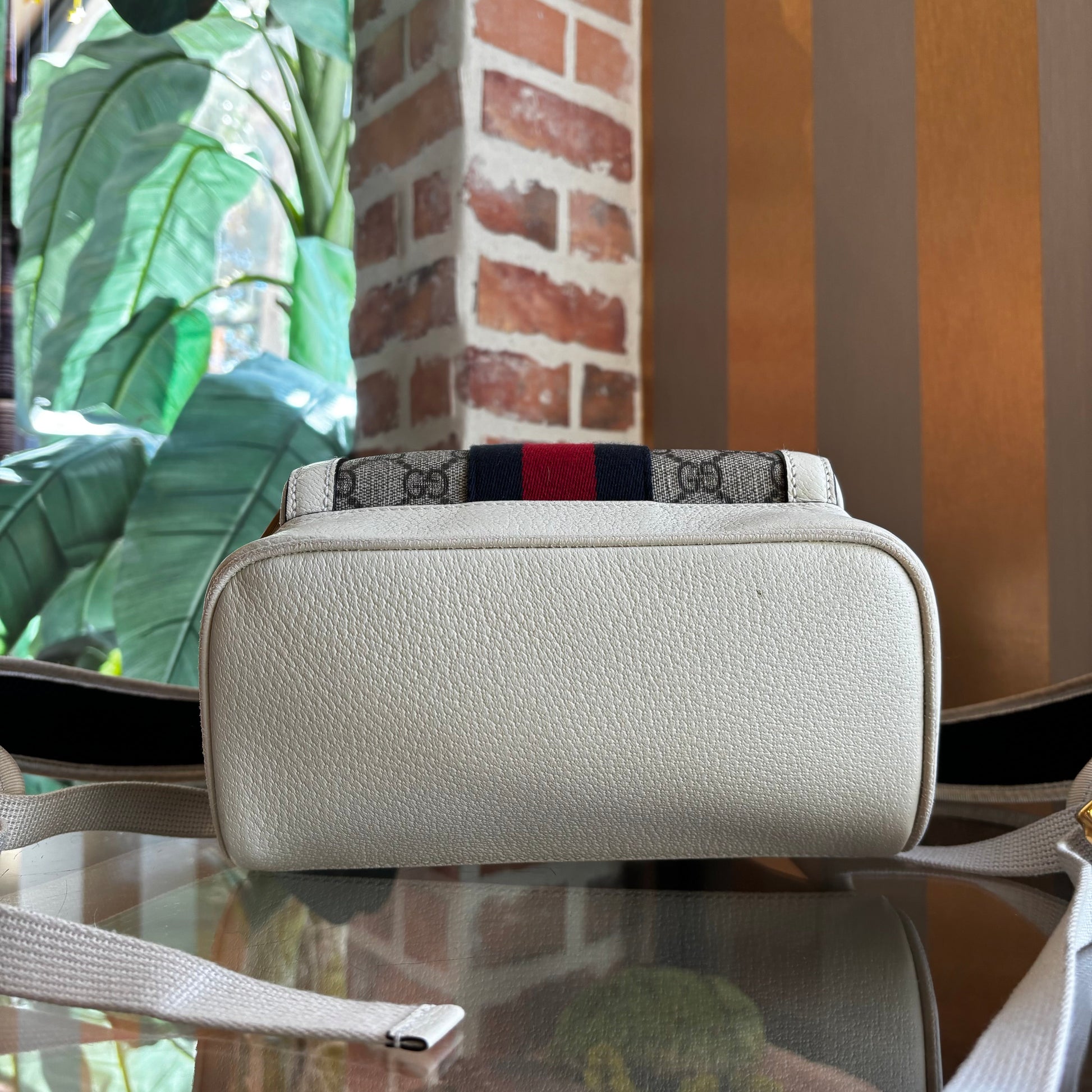 GUCCI Ophidia Small Beige GG Web Canvas Stripe Backpack