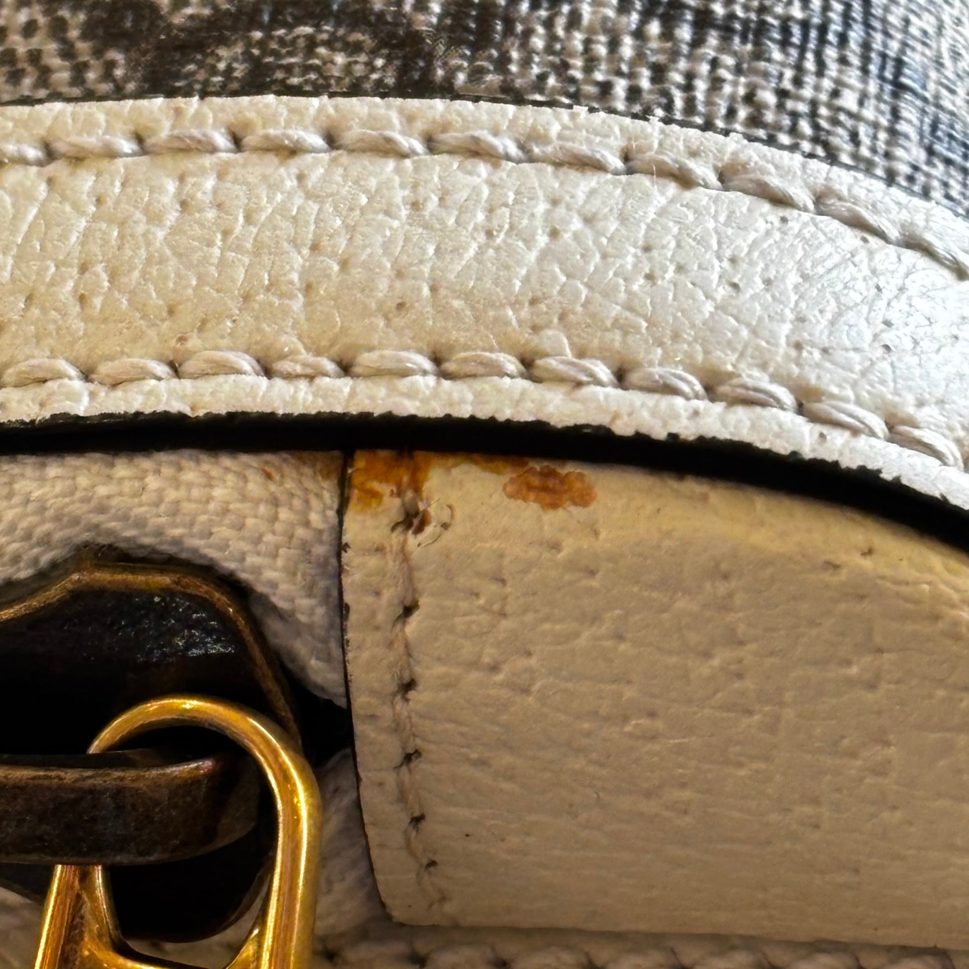 - Exterior: The leather is gorgeous and supple with gentle darkening, rubbing and scuffing. The coated canvas is vibrant and clean throughout. Overall, it's in very good condition.