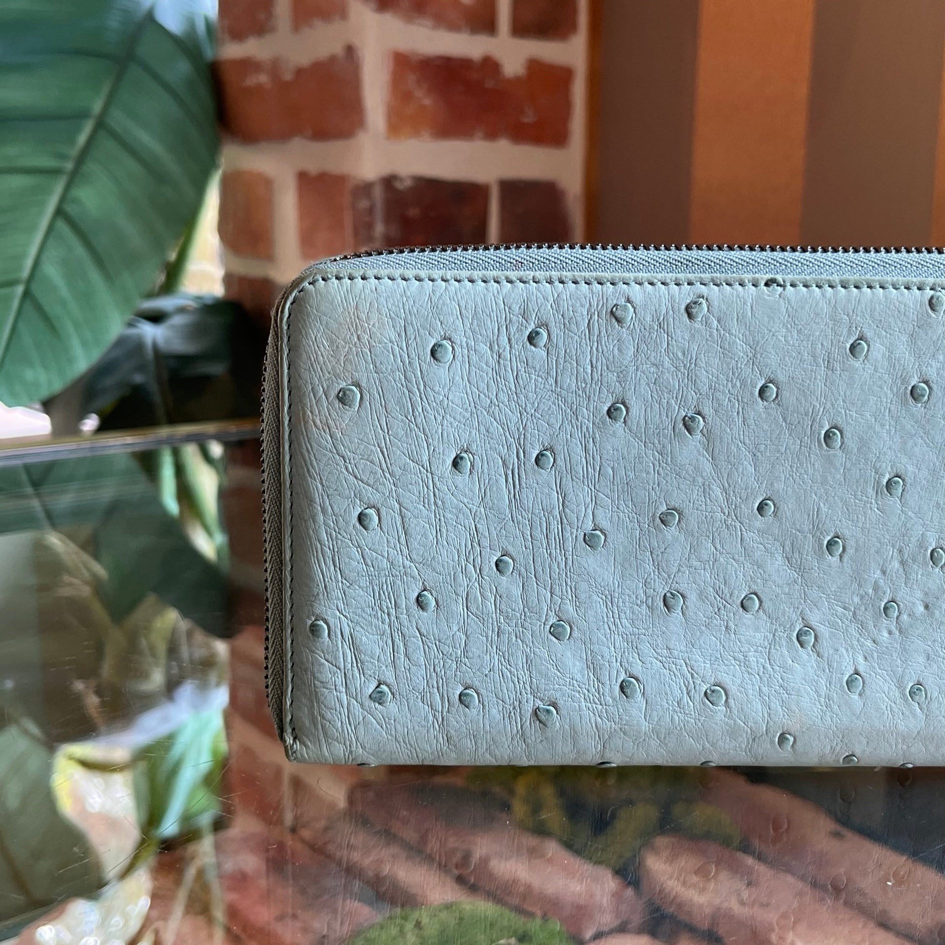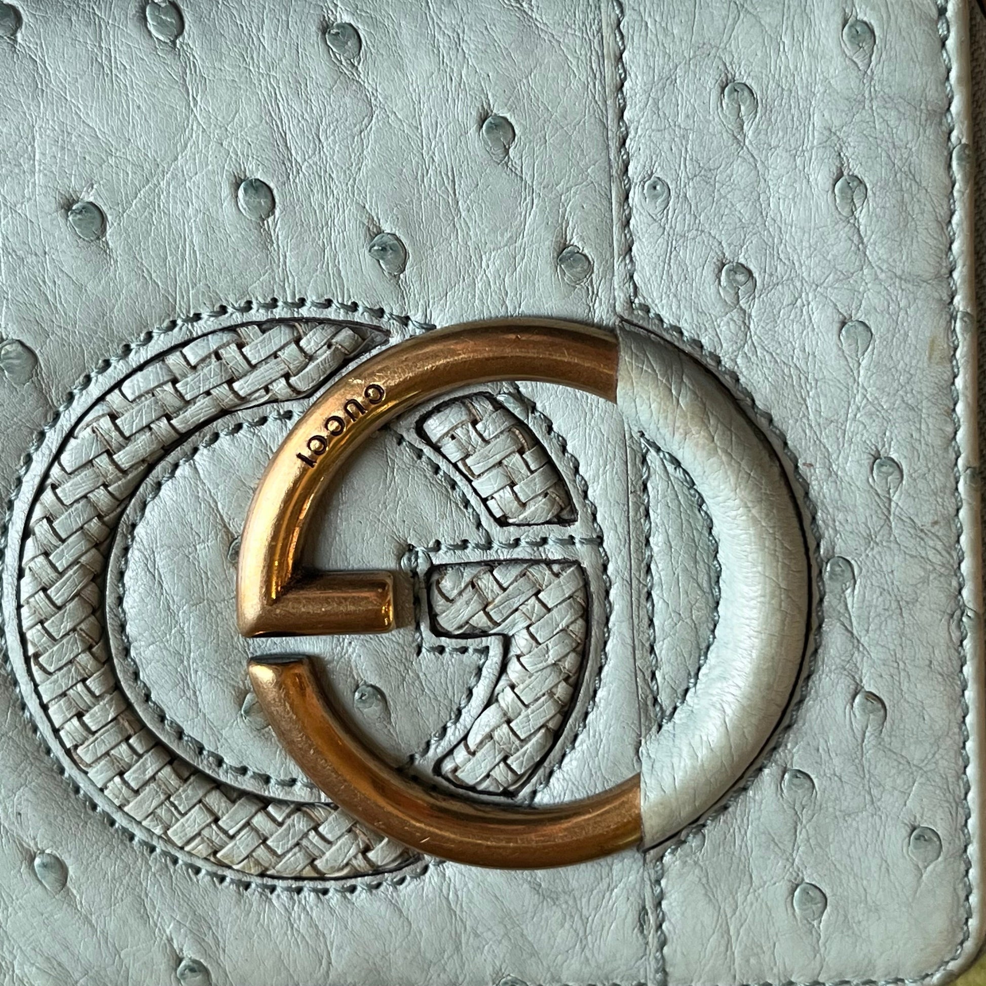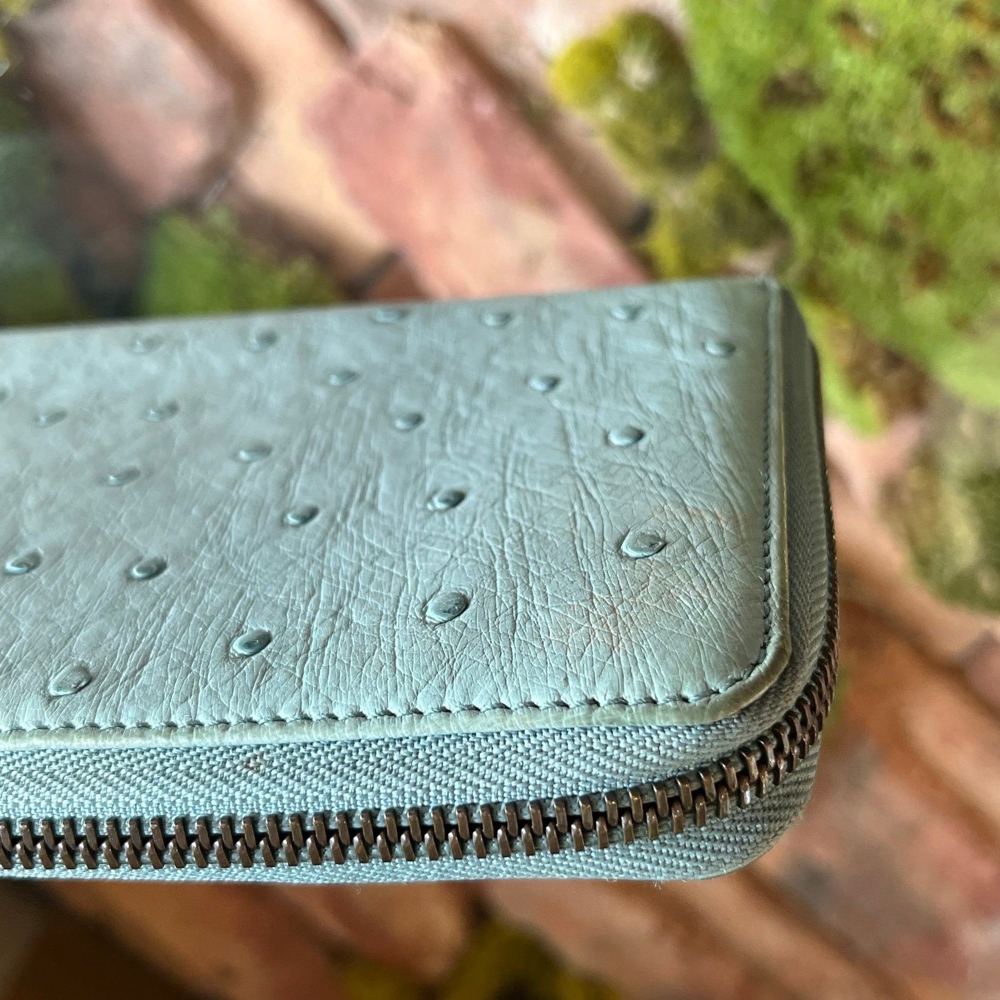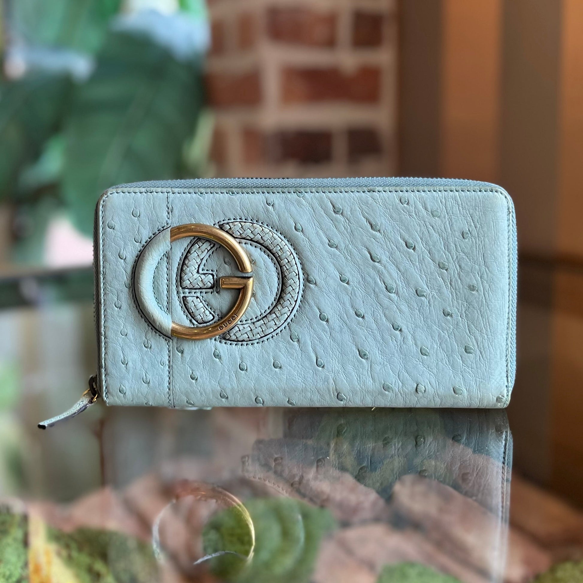 GUCCI Long Zip Organizer Blue Ostrich Interlocking G Wallet