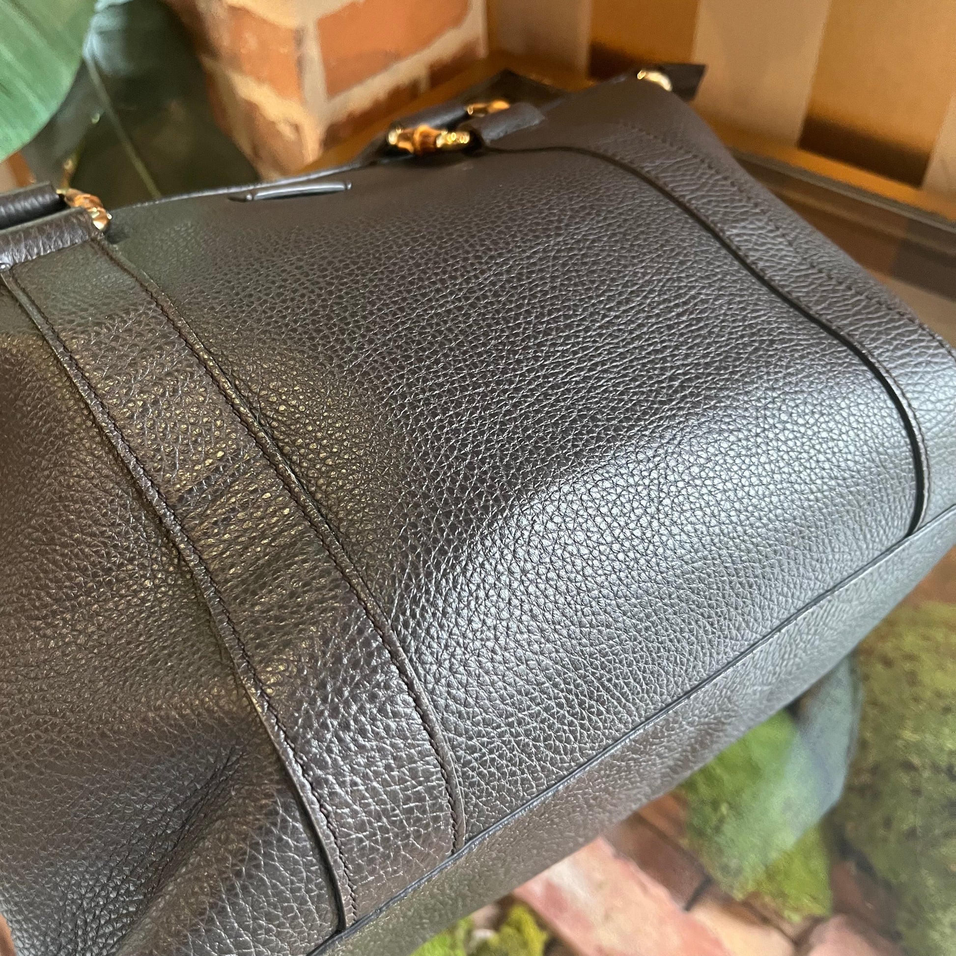 GUCCI Tote Brown Pebbled Leather Two-Way Tote