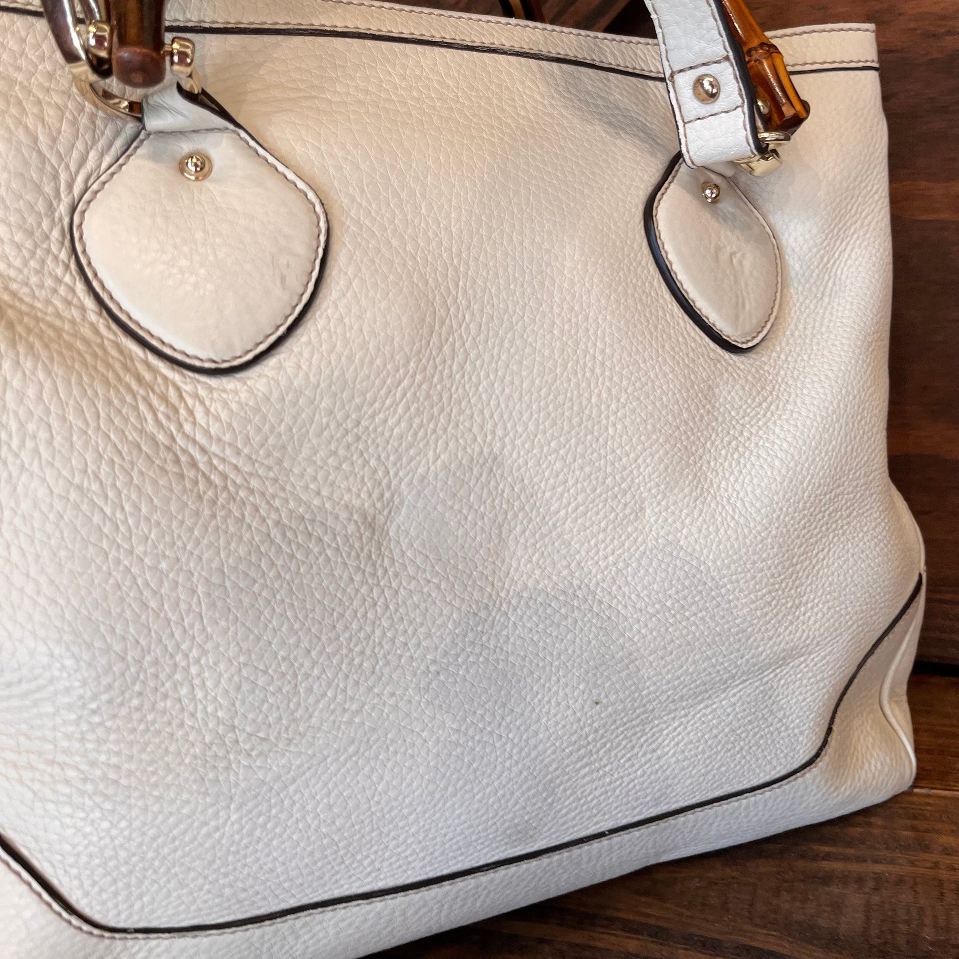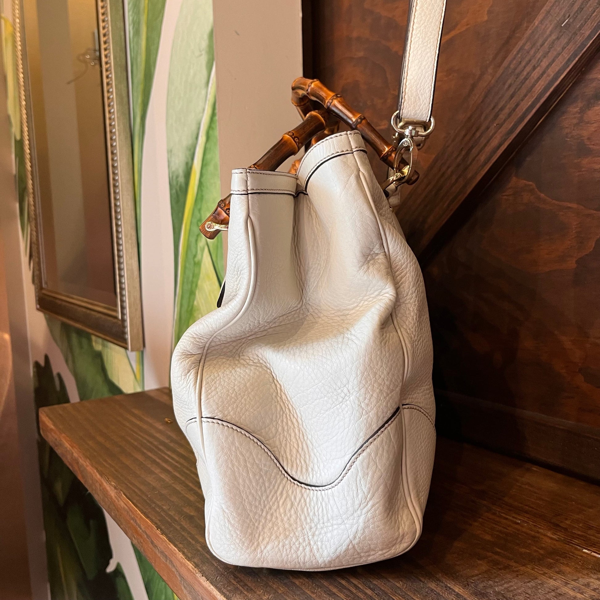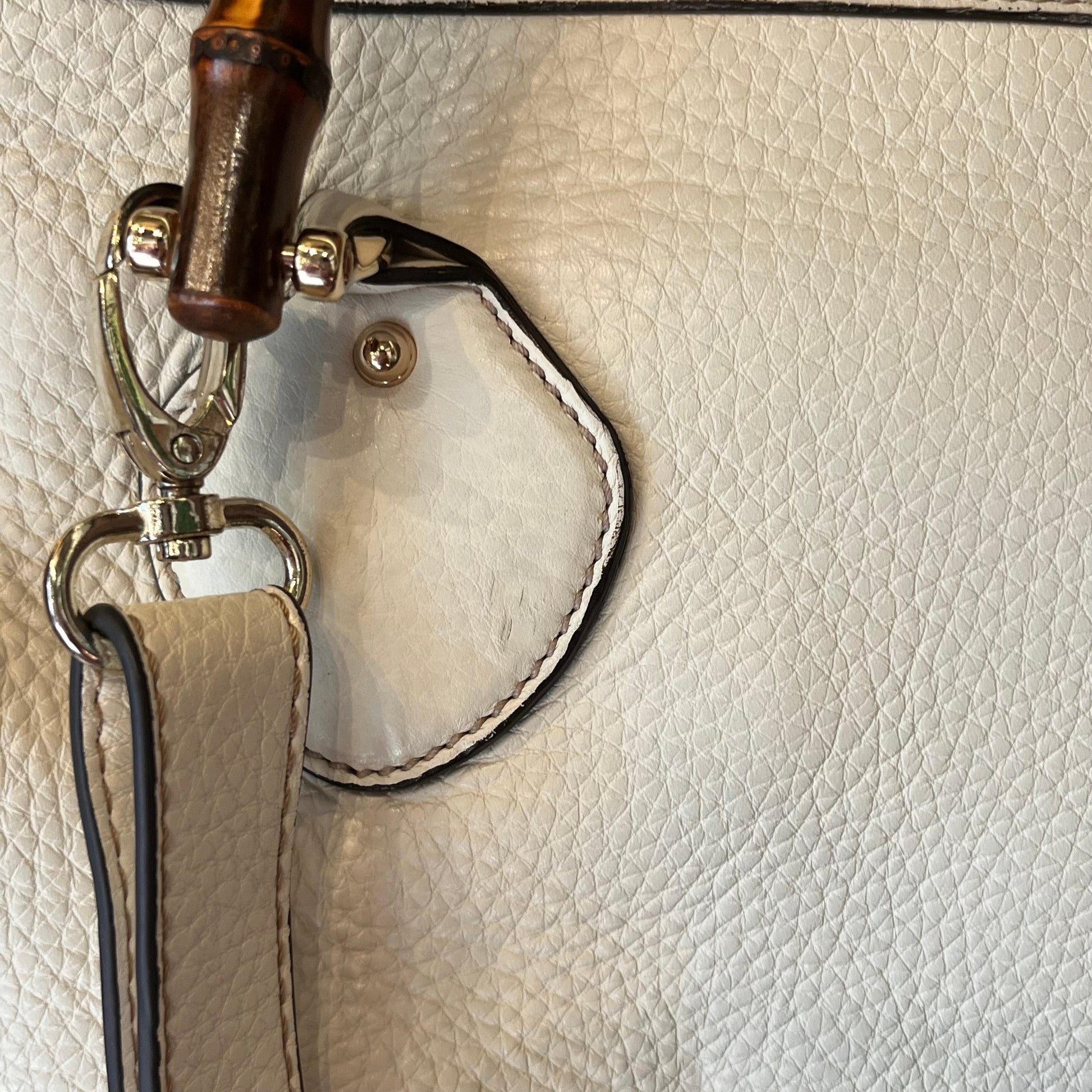 GUCCI Diana White Leather Bamboo Top Handle Tote