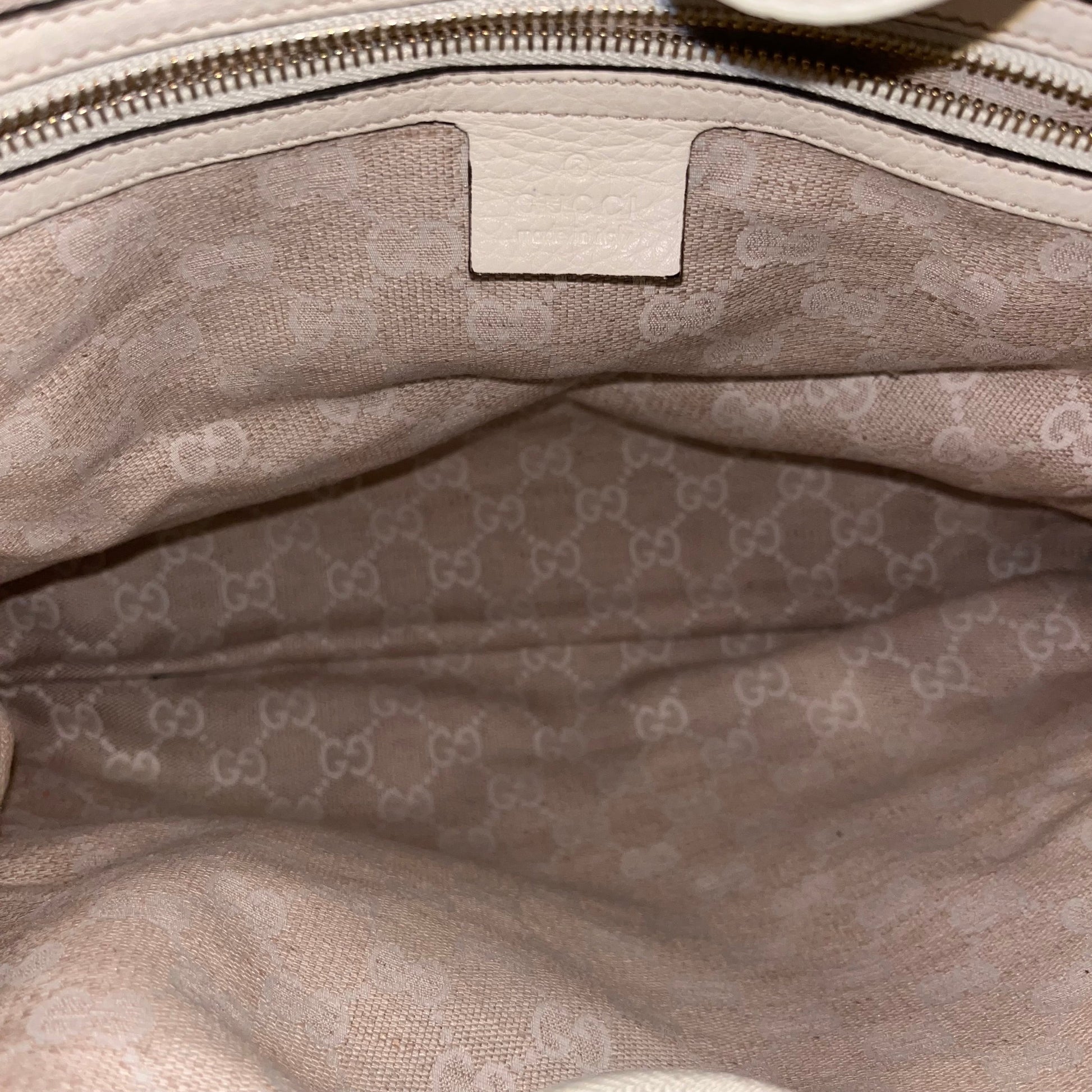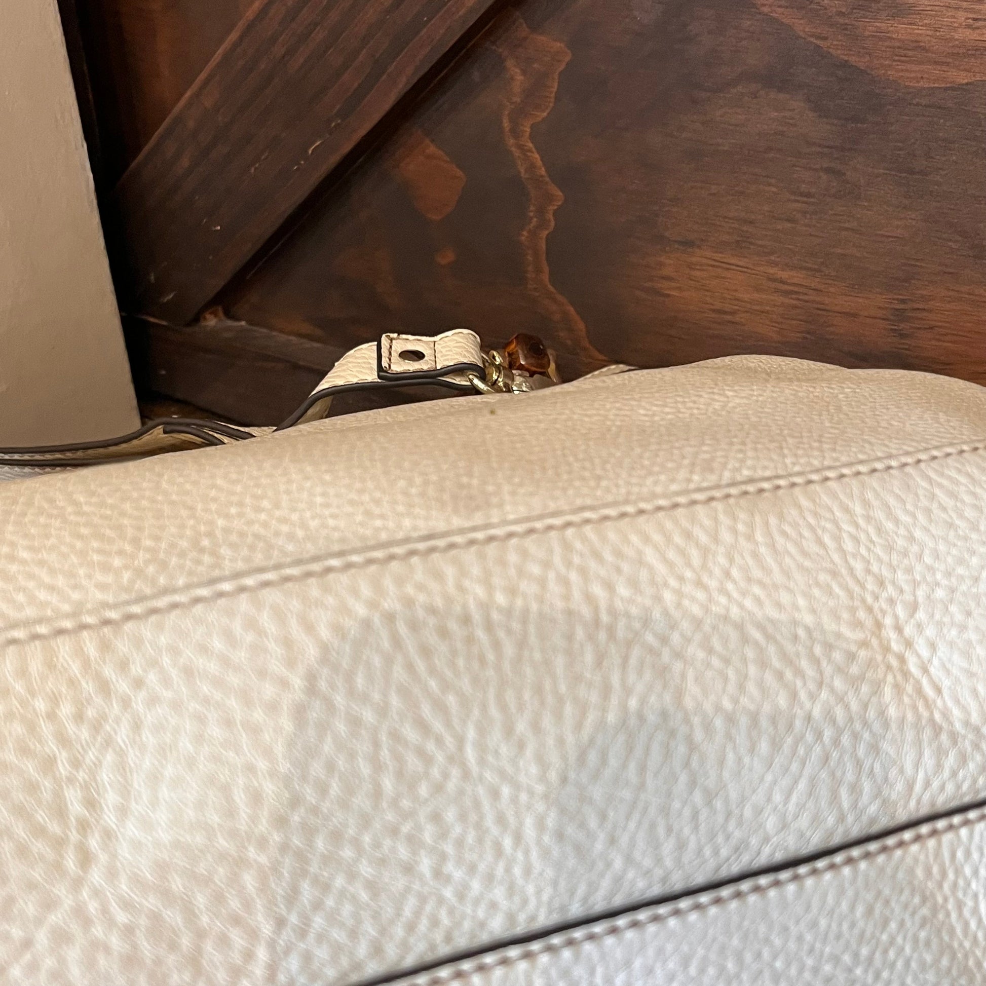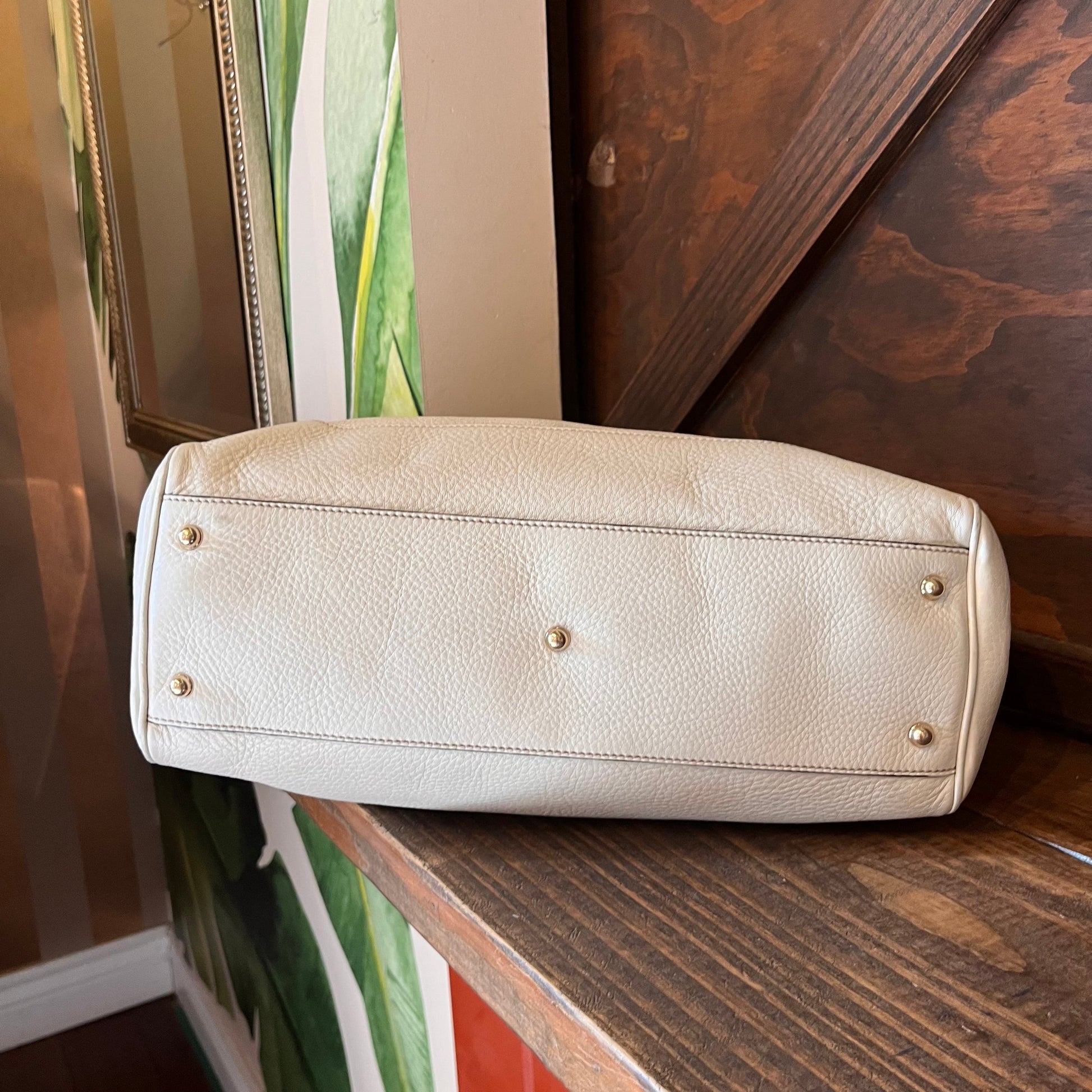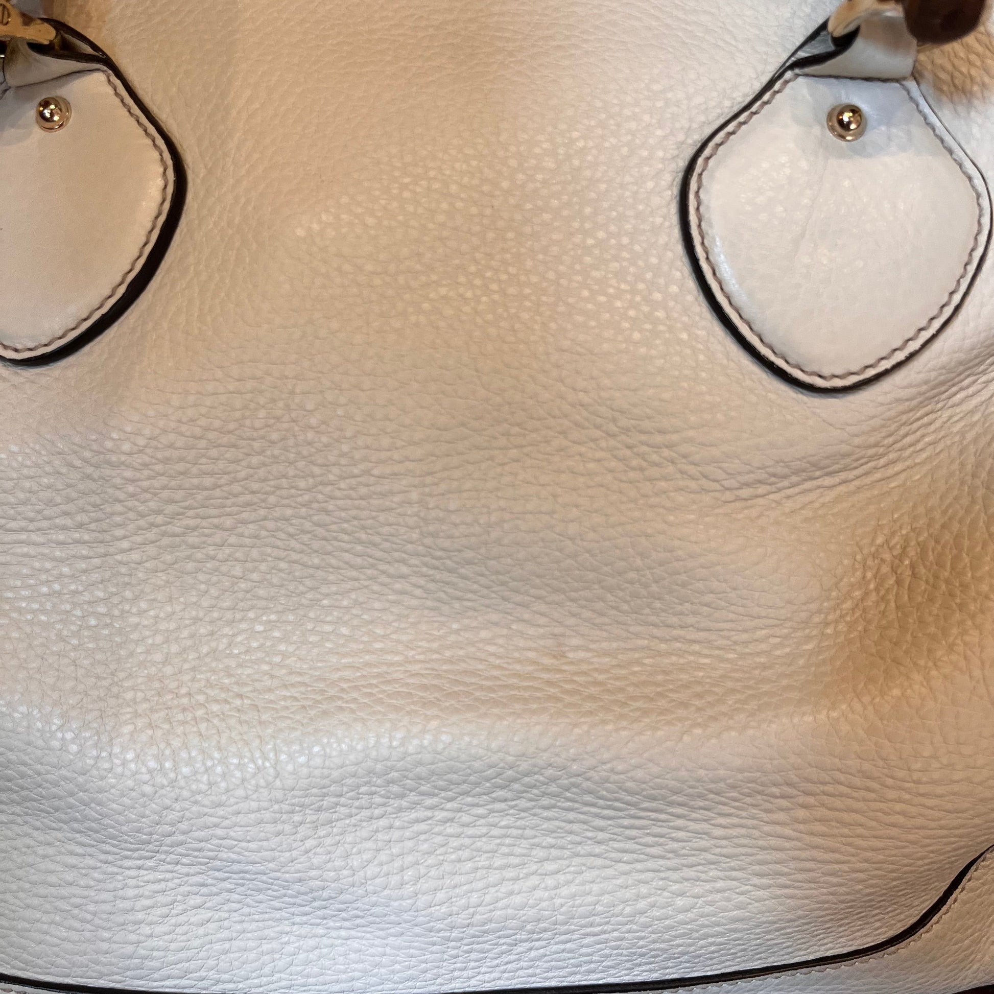 GUCCI Diana White Leather Bamboo Top Handle Tote
