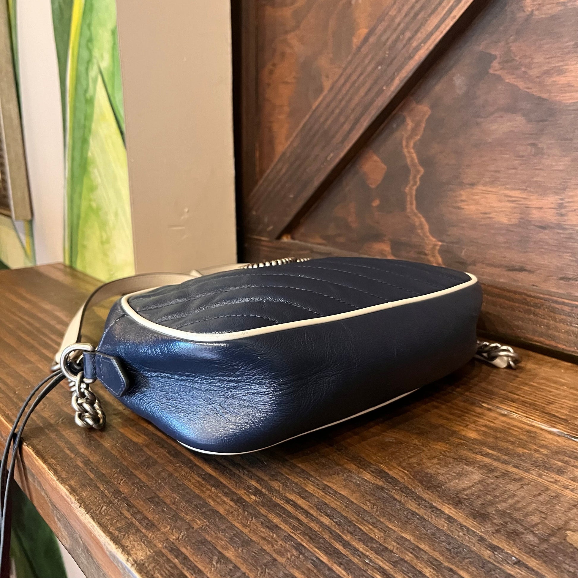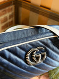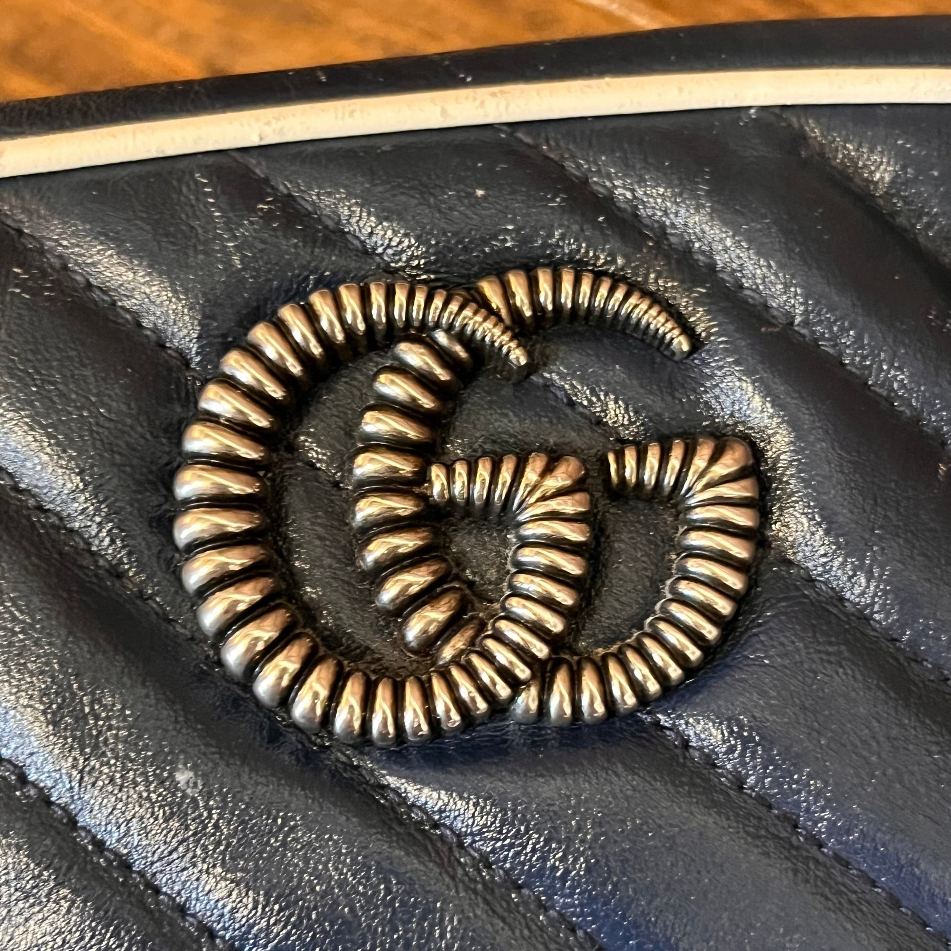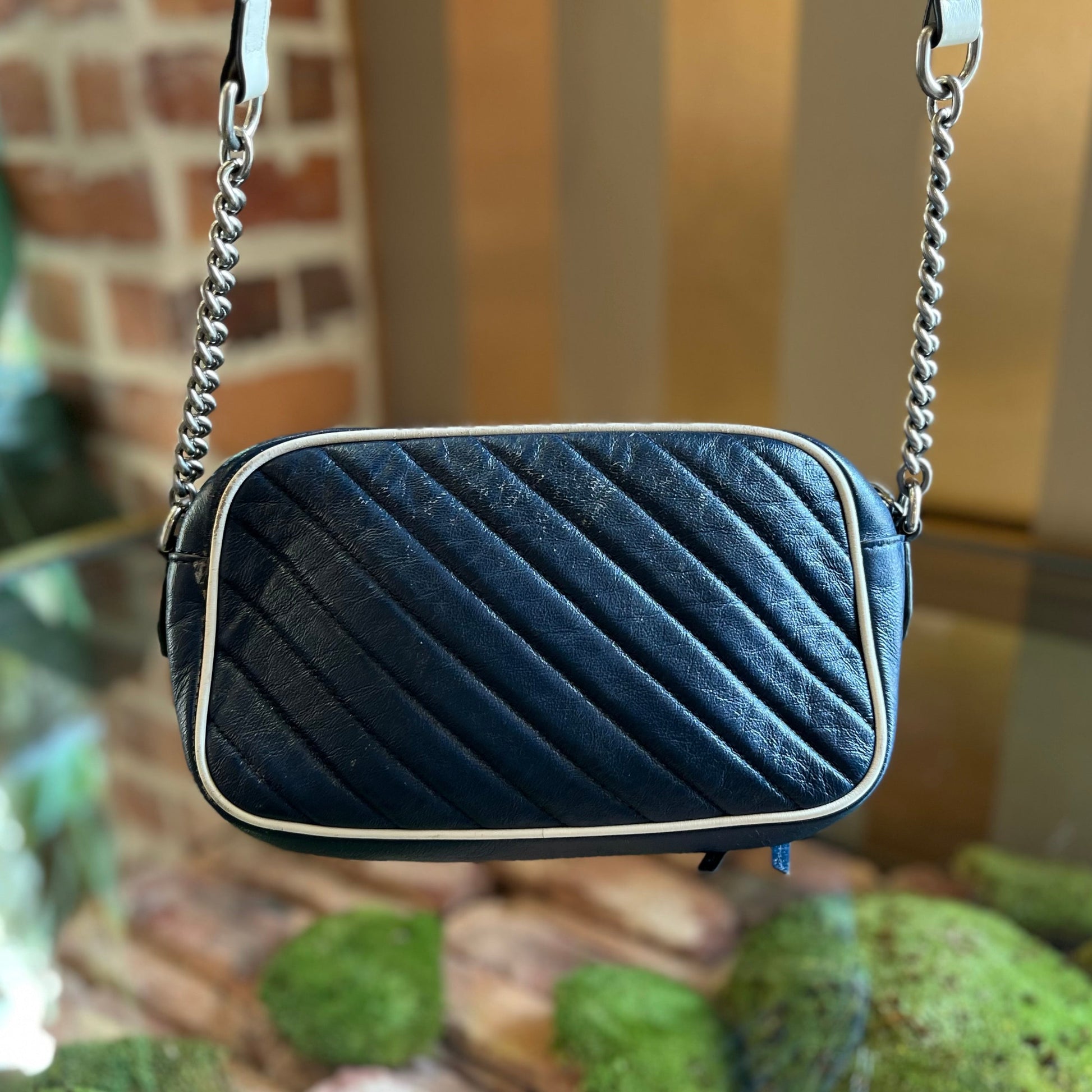 GUCCI GG Marmont Torchon Small Vintage Effect Calfskin Matelassé Diagonal Chain Crossbody Bag