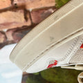 - Exterior: Scuffing and transfer marks. Creasing and small glue mark on the heel tab. The color still remains fairly clear. Overall very good condition.