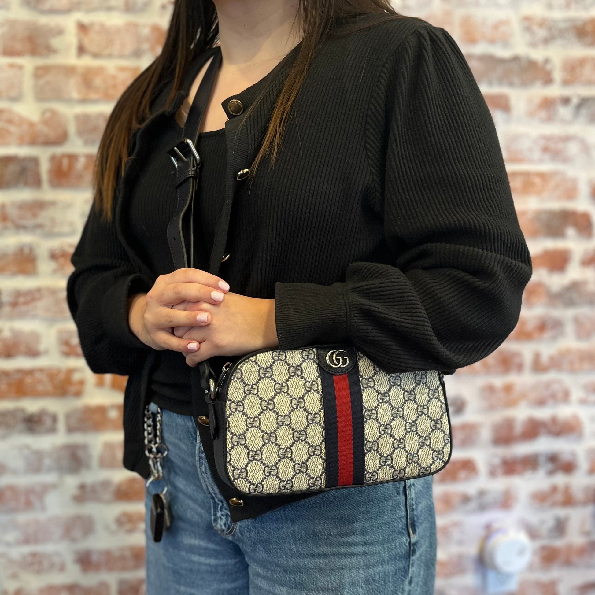 GUCCI Ophidia Camera Navy Blue GG Supreme Canvas Shoulder Bag