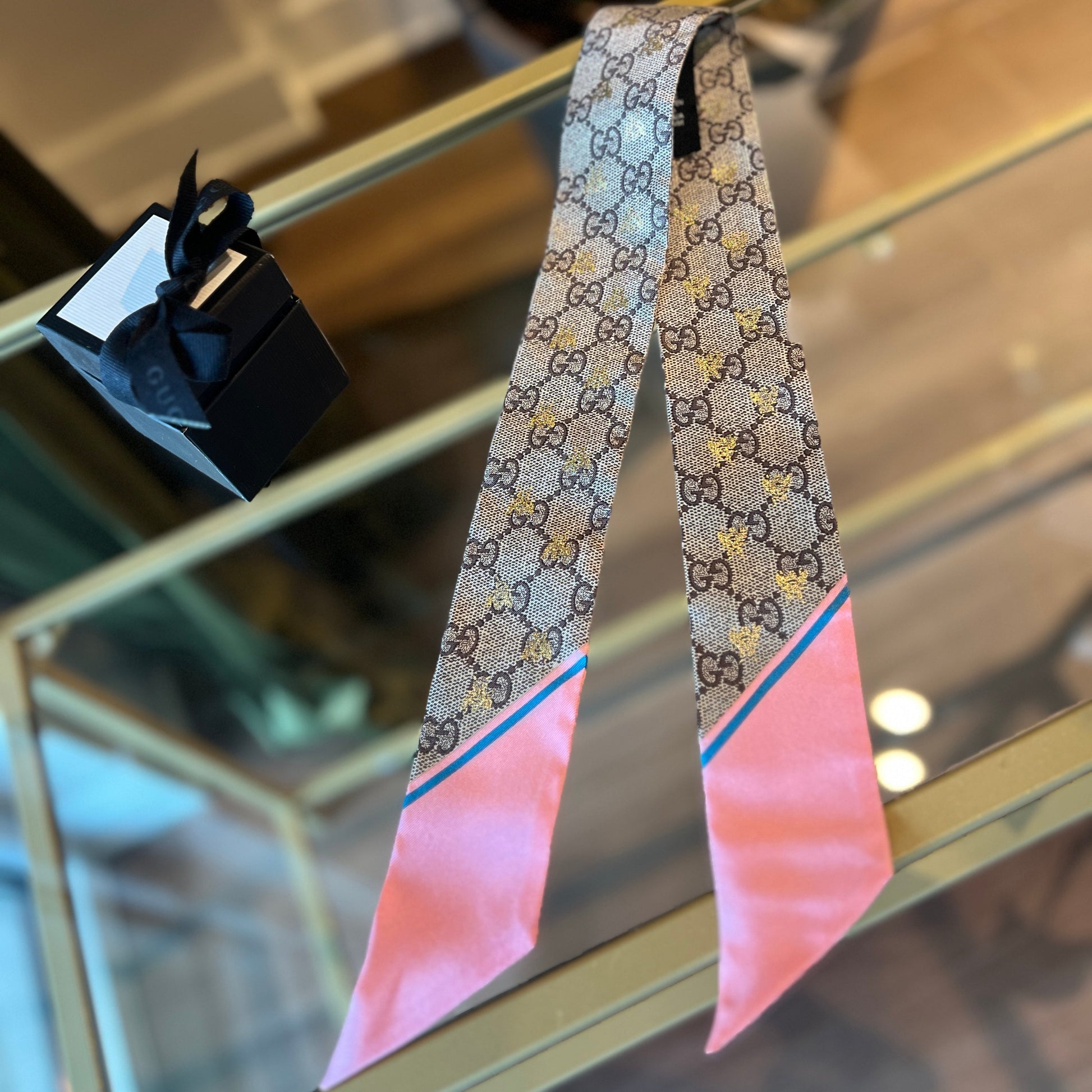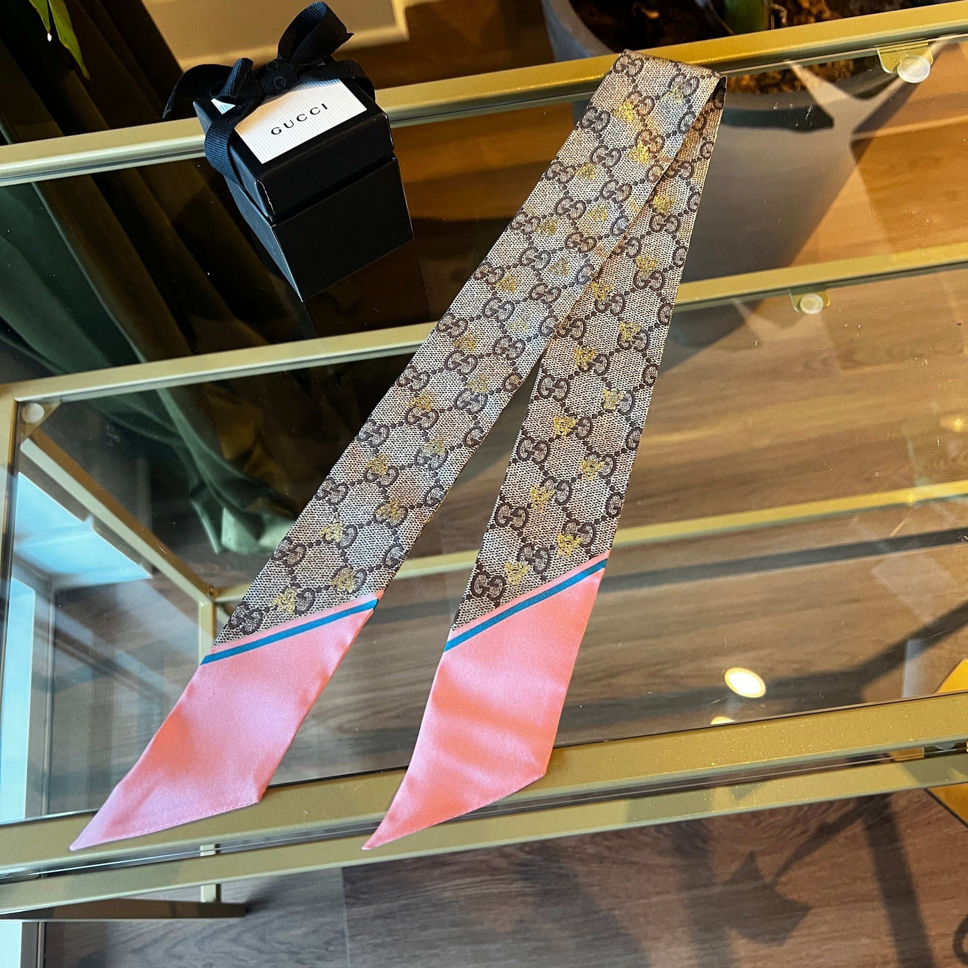 GUCCI Silk Bee GG Supreme Silk Neck Bow Scarf