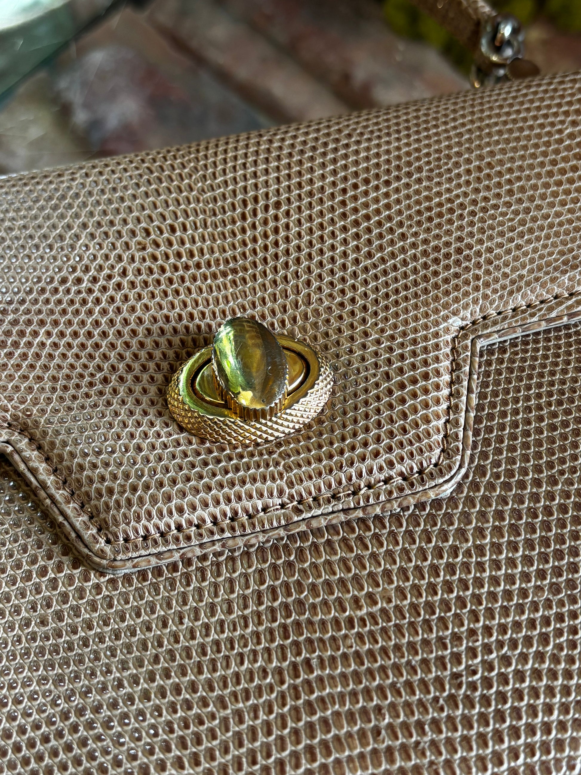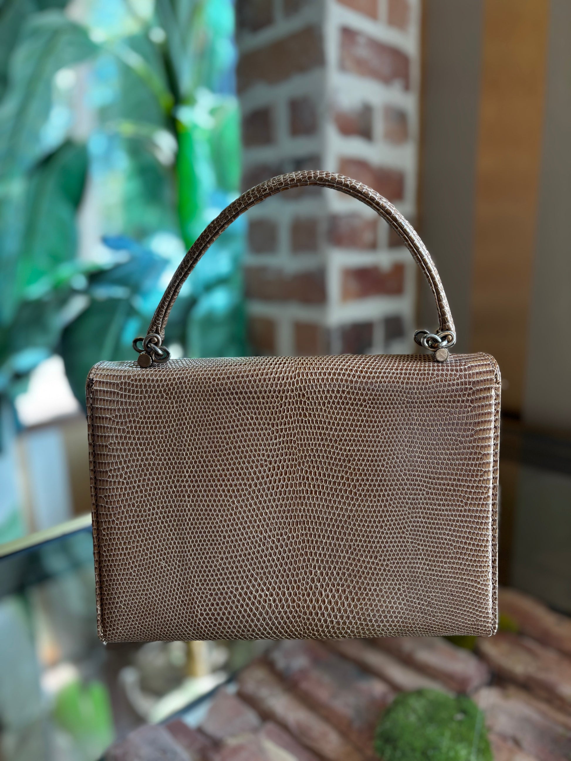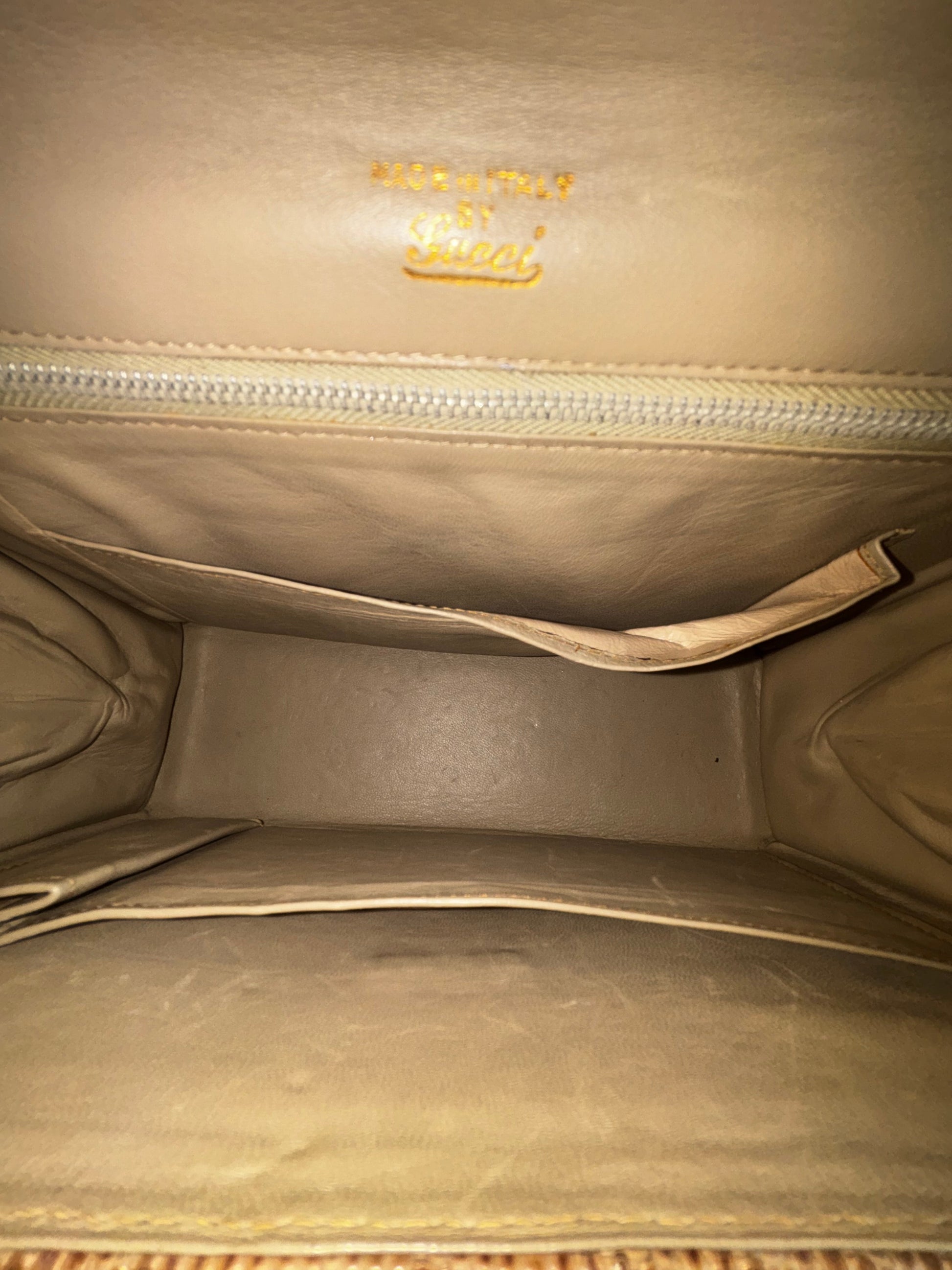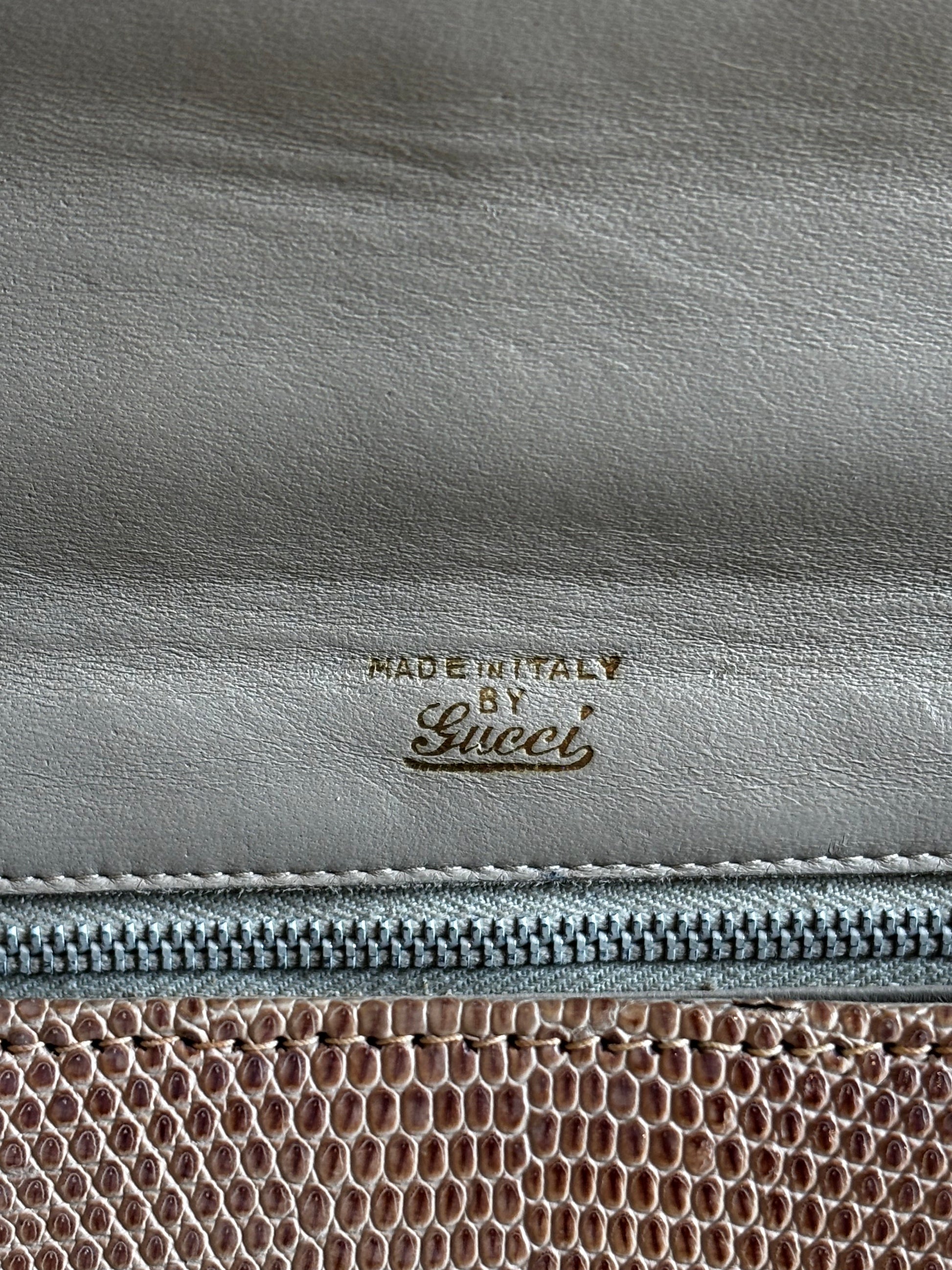 GUCCI Beige Vintage Lizard Embossed Satchel