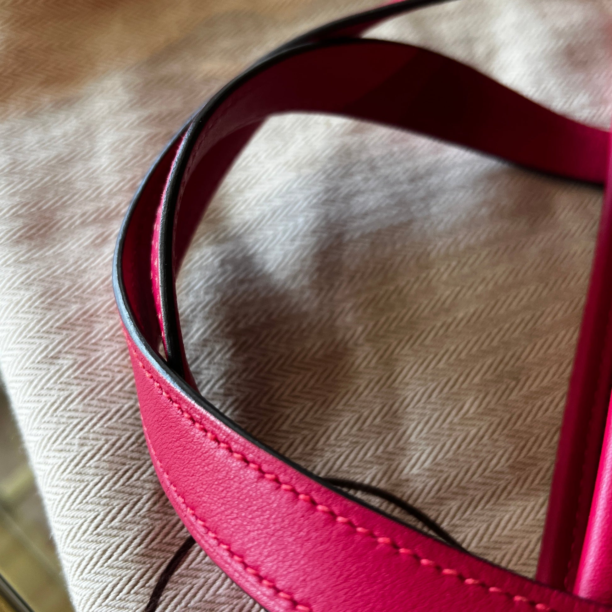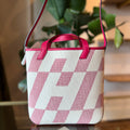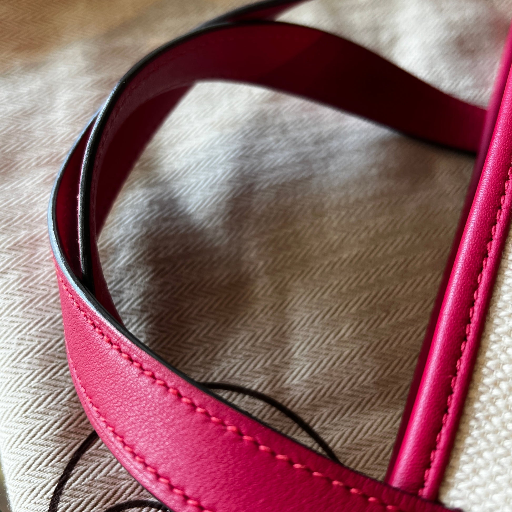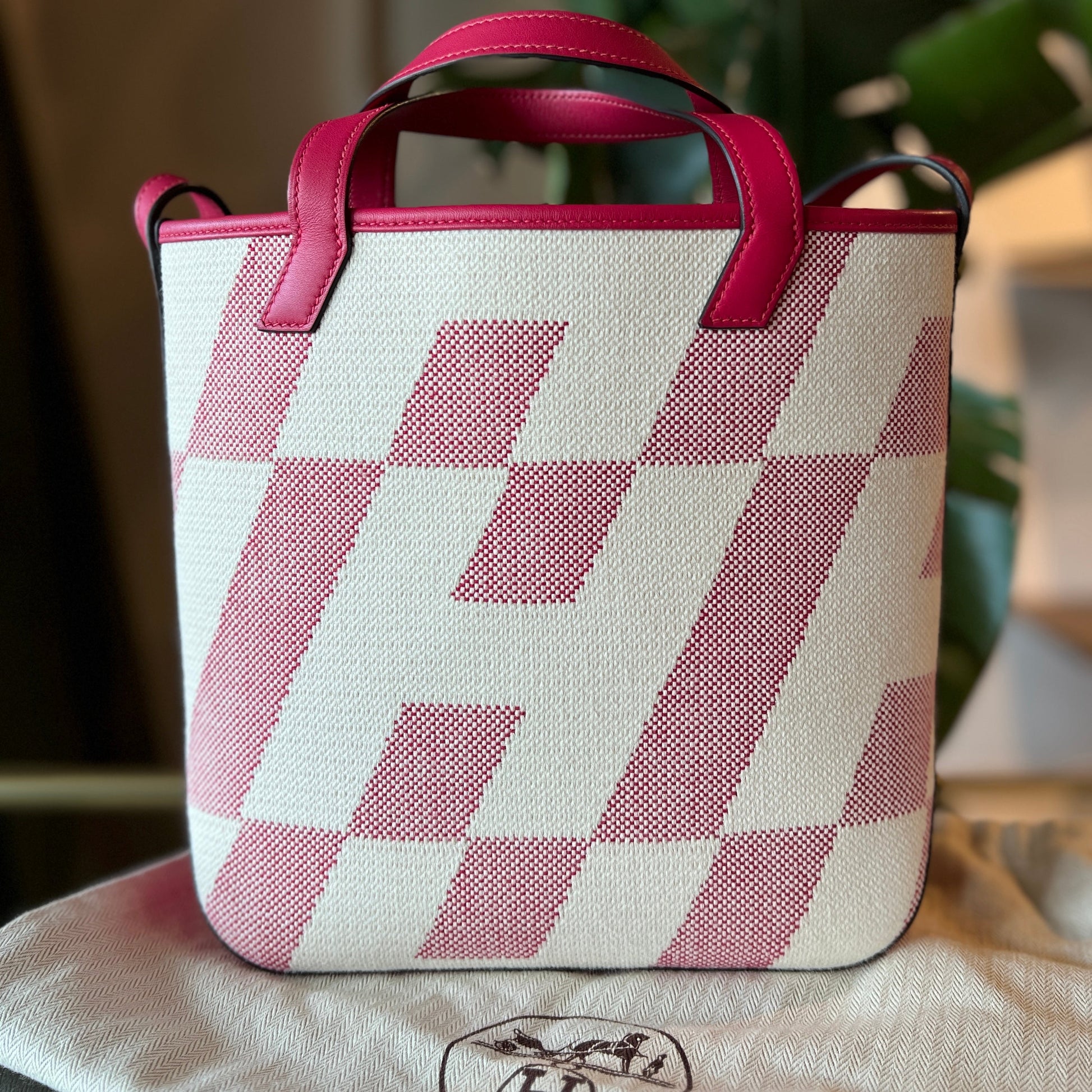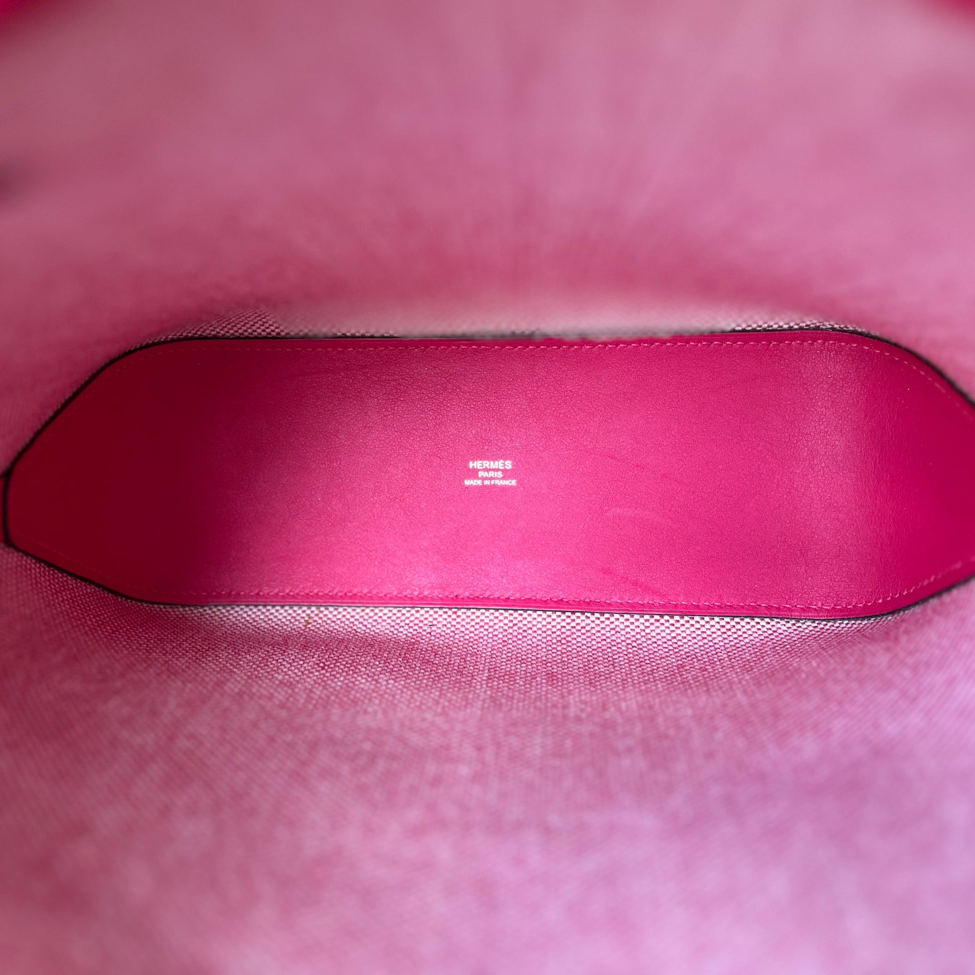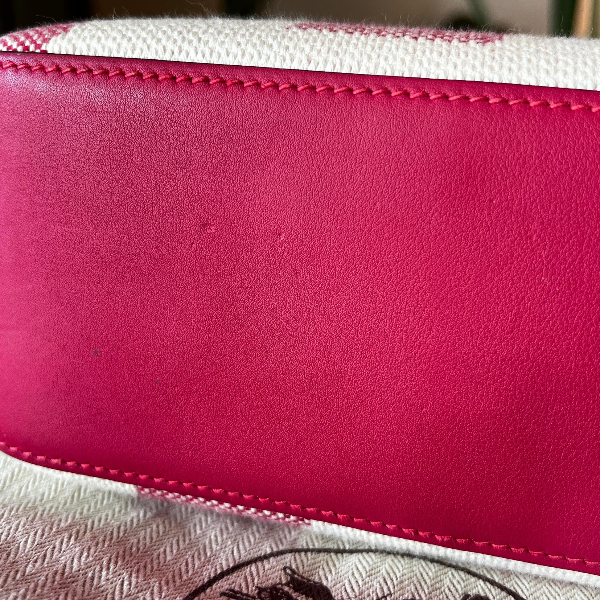 HERMES Ambie PM Framboise Toile H Veau Swift Tote