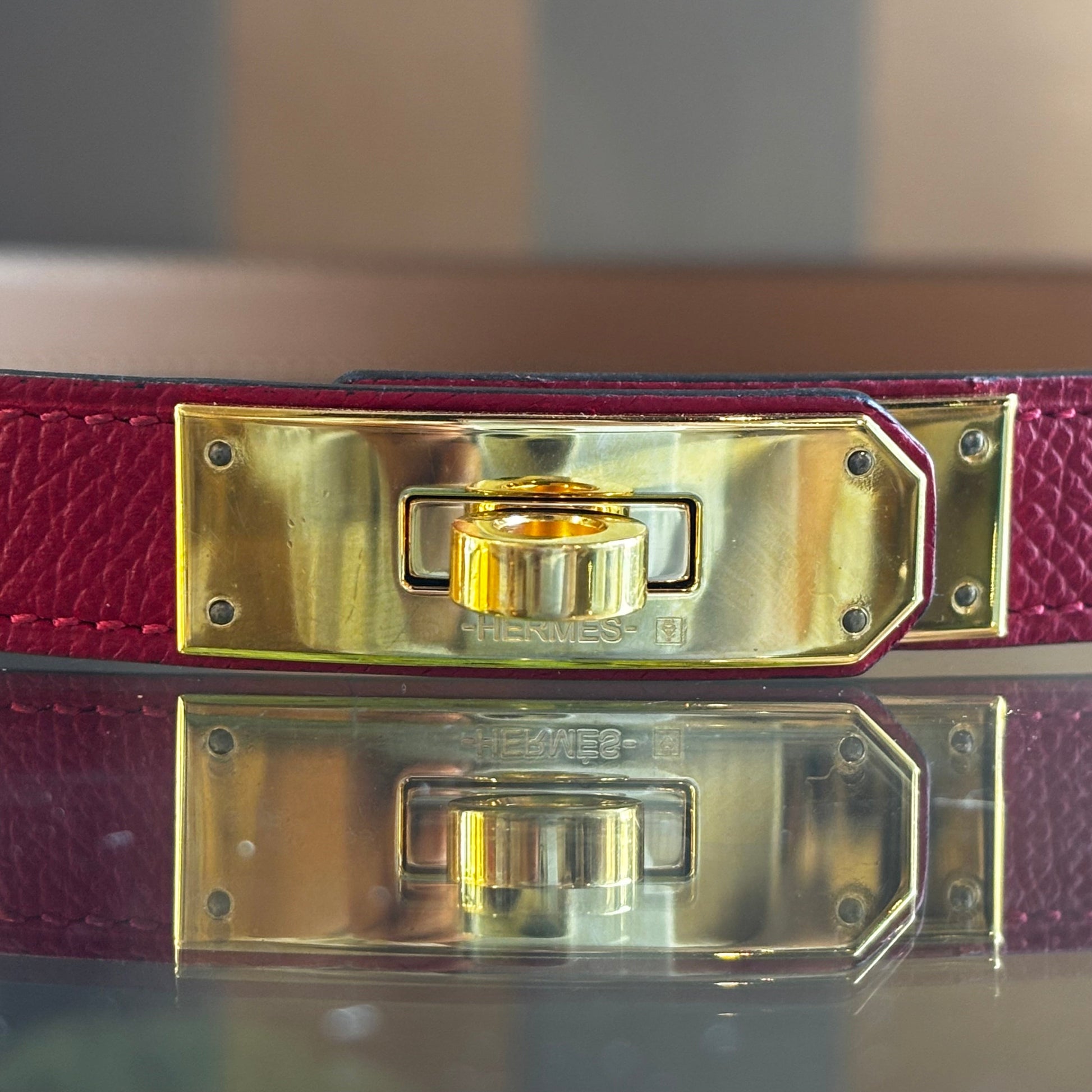 HERMES Kelly Epsom Rouge Casque Leather 18 Belt