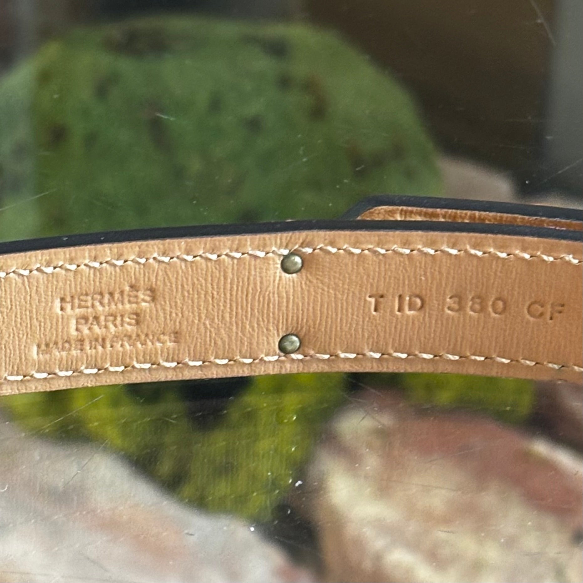 - Exterior: Creasing on interior of belt. Moderate scratches on buckle. Color is still bright and vibrant. Leather is smooth and supple. Overall very good condition.