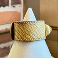 A striking ode to Hermès' mastery of exotic materials, this bracelet showcases gleaming Varanus lizard skin accented with the iconic Médor stud design. The bold hardware and lustrous texture create a luxurious juxtaposition of edgy sophistication and timeless craftsmanship. B+ Very Good Condition