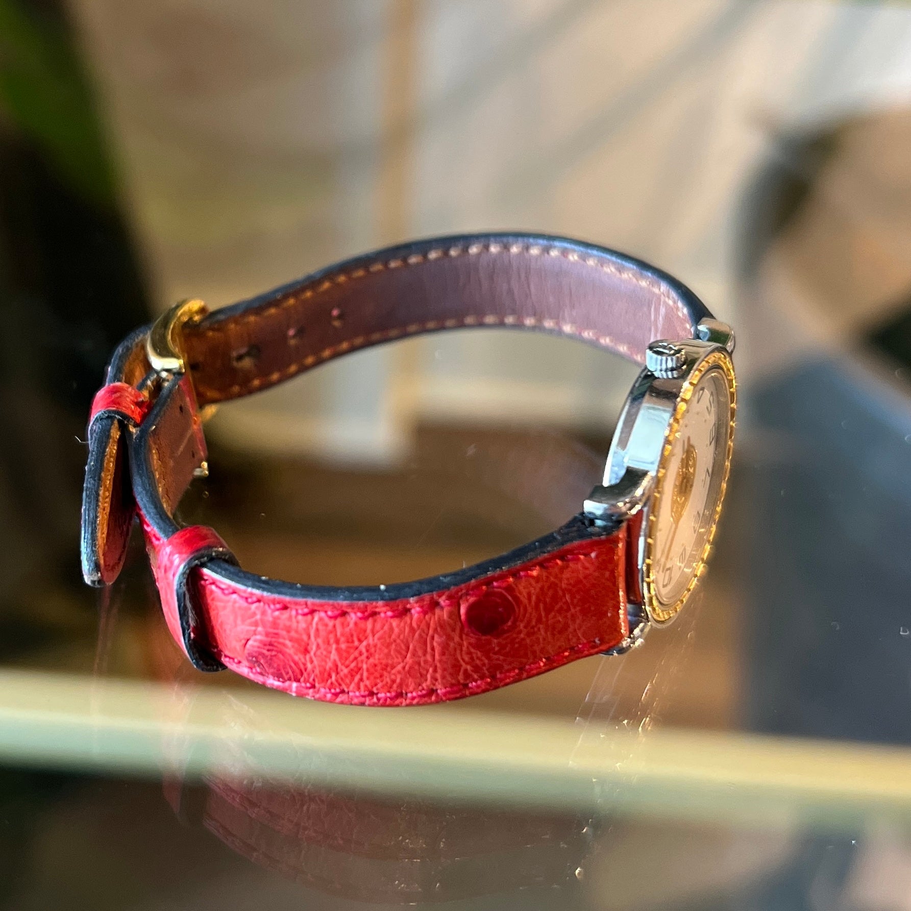 The HERMES Sellier Round Ostrich Watch combines timeless elegance with exceptional craftsmanship. Featuring a distinctive ostrich leather strap and a sleek round case, this watch offers refined sophistication for those who appreciate luxury with subtle character. Its meticulous design ensures both style and durability, making it a perfect accessory for elevated everyday wear. B+ Very Good Condition