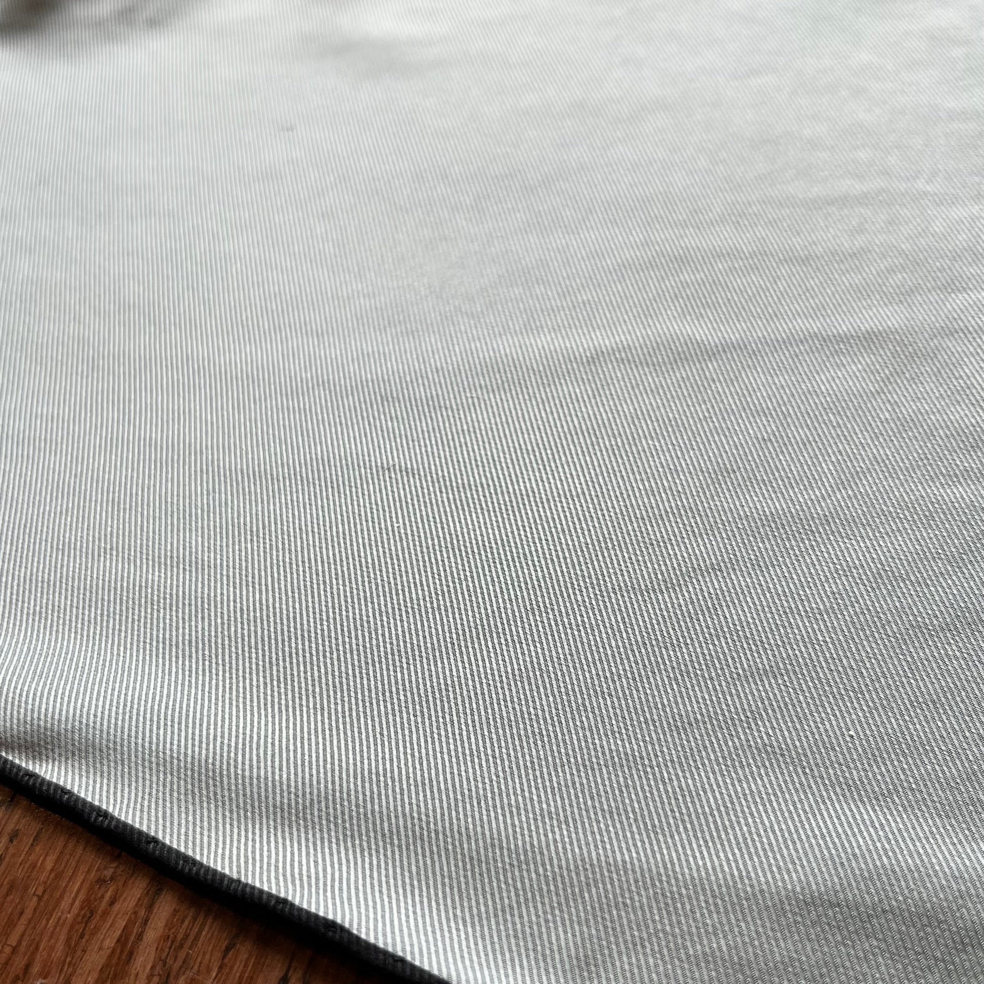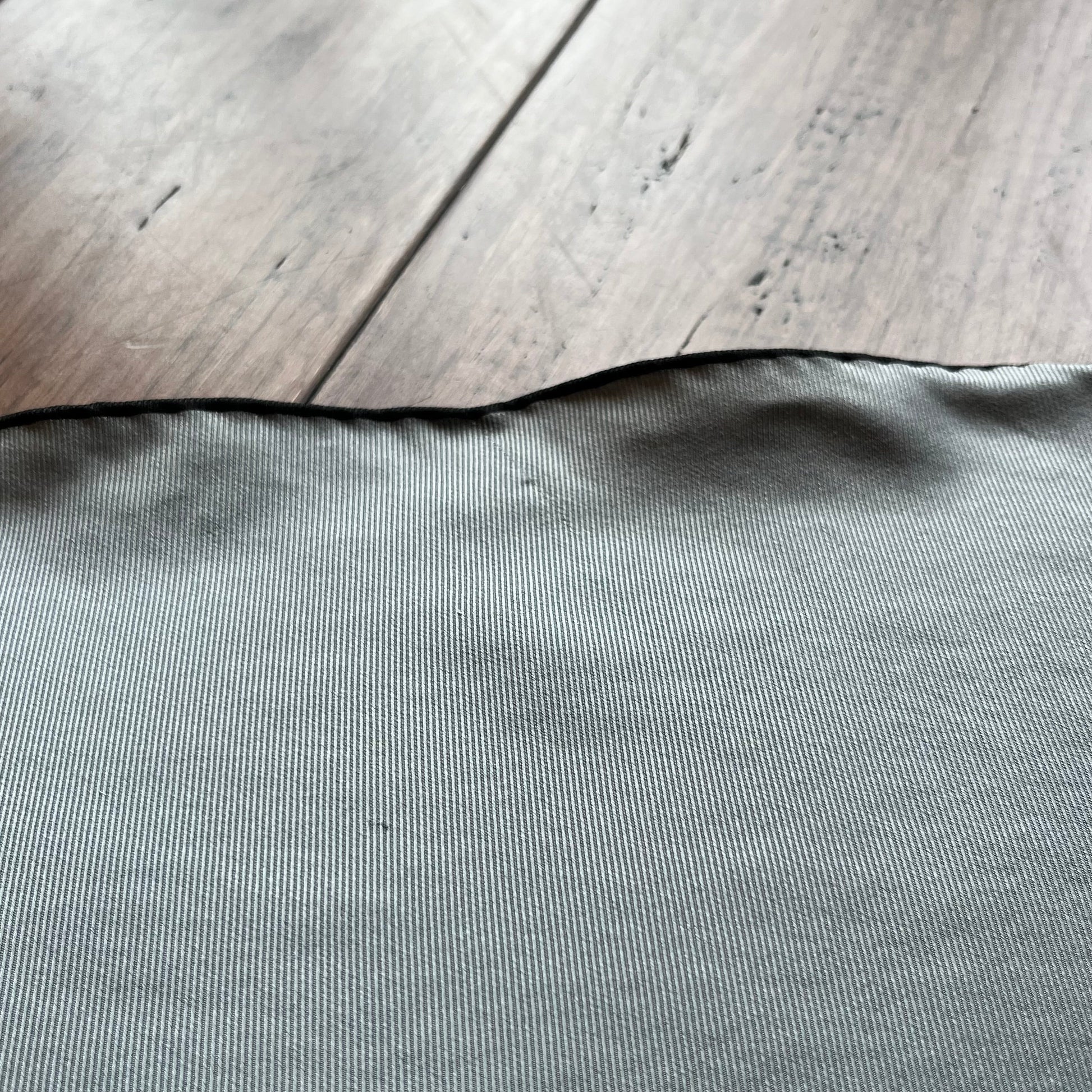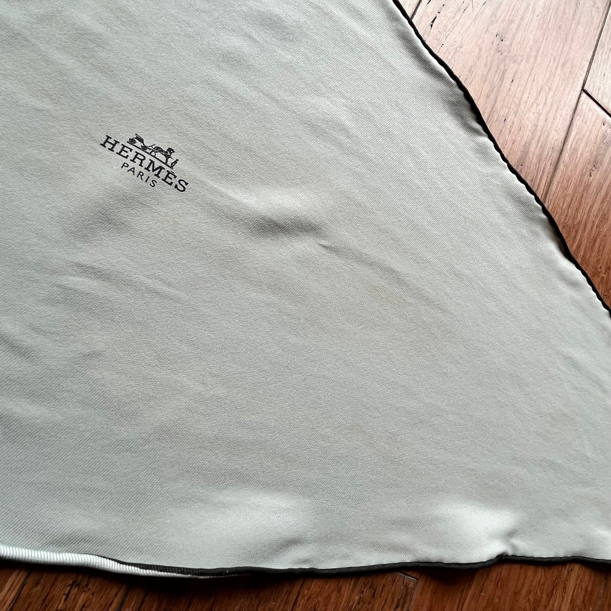 A masterclass in monochrome elegance, this scarf drapes in luminous gray silk with razor-sharp black hand-rolled edges—Hermès' signature precision meeting downtown minimalism. The elongated losange (diamond) shape offers fresh styling possibilities, from asymmetric neck knots to bag adornments, while the subtle sheen whispers quiet luxury. B+ Very Good Condition