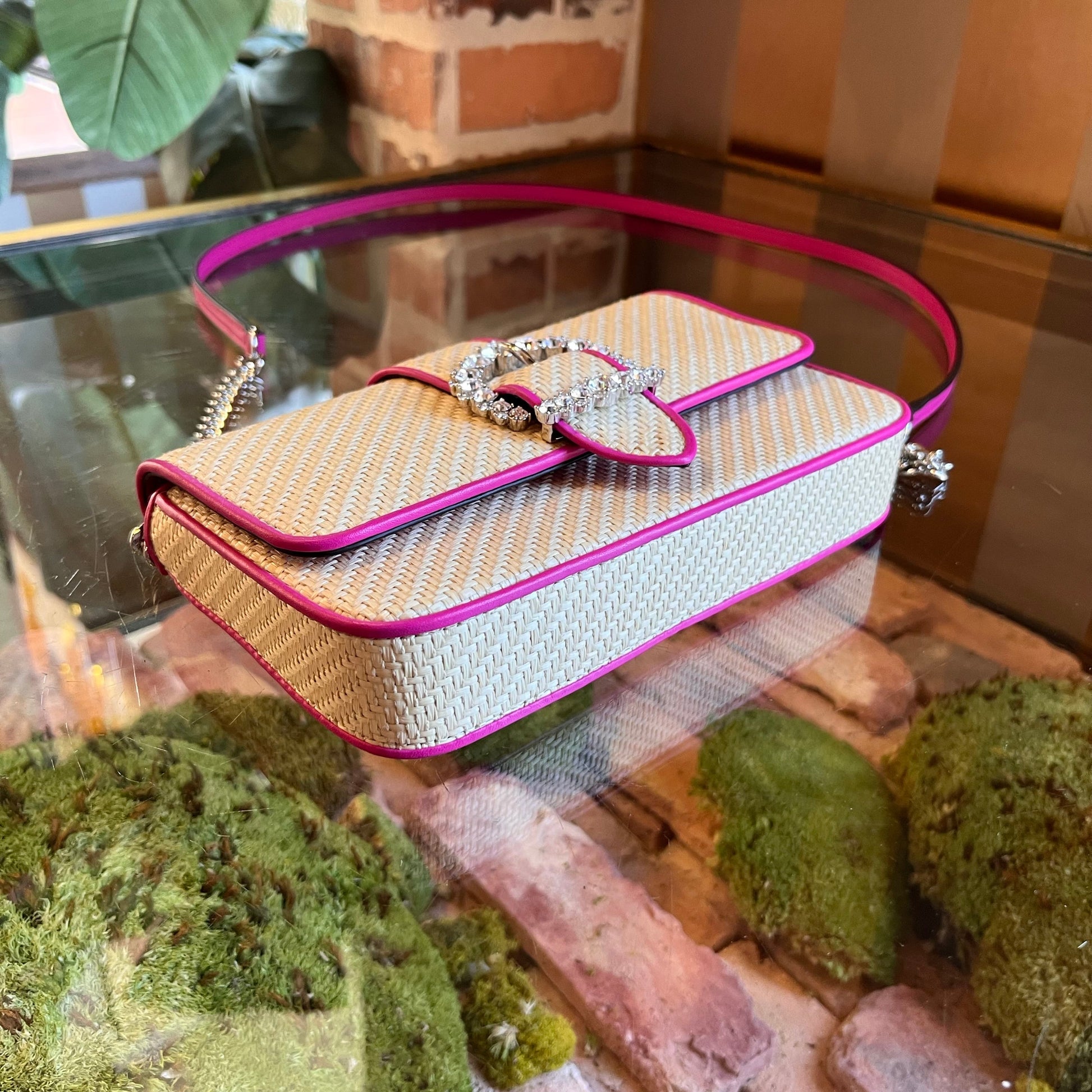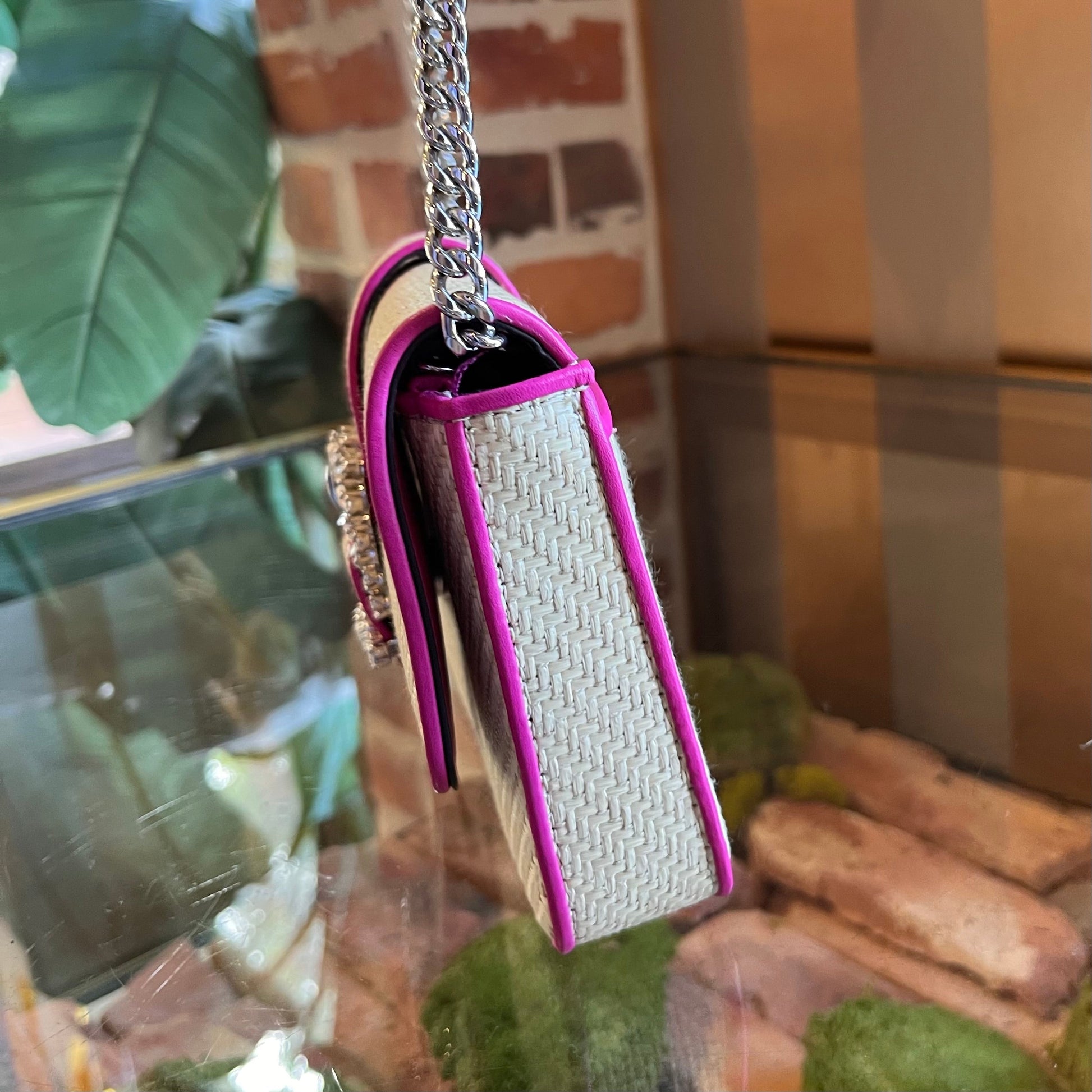 JIMMY CHOO Raffia Leather Trim Crossbody Bag