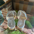 Elevate your summer style with these JIMMY CHOO Silver Platform Flip Flops in size 35. Featuring a sleek silver finish and a comfortable platform sole, they blend luxury with effortless ease. Perfect for adding a refined touch to casual looks while ensuring all-day comfort. Very good condition.