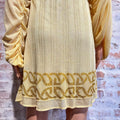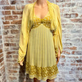 A bold and summery ensemble, this set features a vibrant yellow viscose knit dress paired with a matching bolero. The textured fabric and coordinated design create perfect poolside-to-party versatility. B+ Very Good Condition