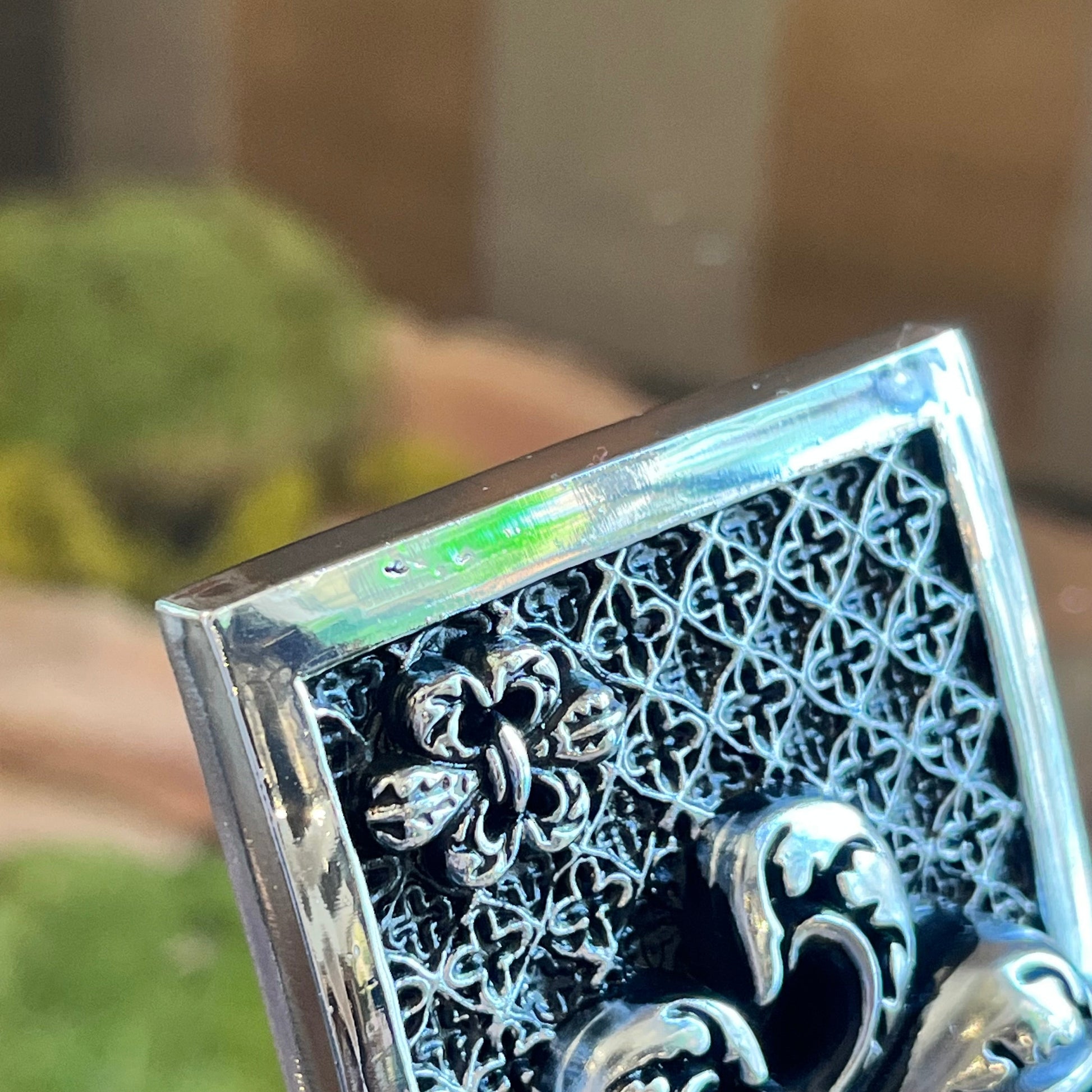 A bold belt buckle crafted from rugged alloy, featuring King Baby's signature FDL (Faith, Discipline, Loyalty) motto in a weathered relic finish. The distressed detailing and Gothic-inspired typography channel rebellious sophistication, while the substantial weight ensures a statement-making fit. Designed for those who wear their ethos as sharply as their style. B+ Very Good Condition