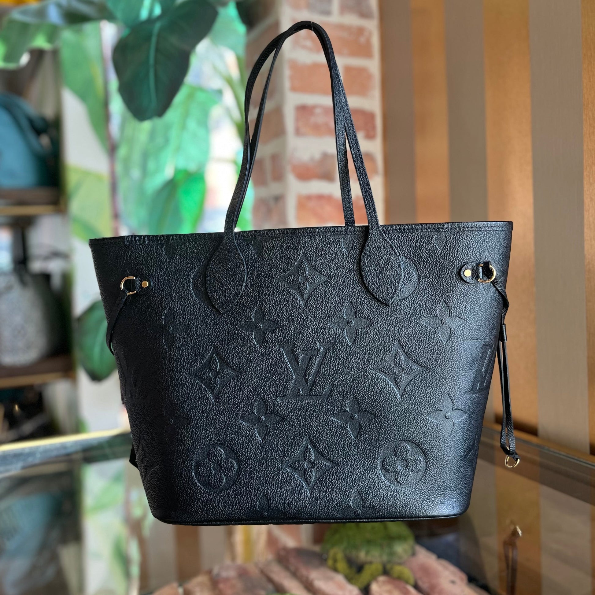 LOUIS VUITTON Neverfull MM Black Empriente Leather Tote Bag