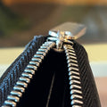 - Interior features multiple card slots, bill compartments, and a zip coin pocket