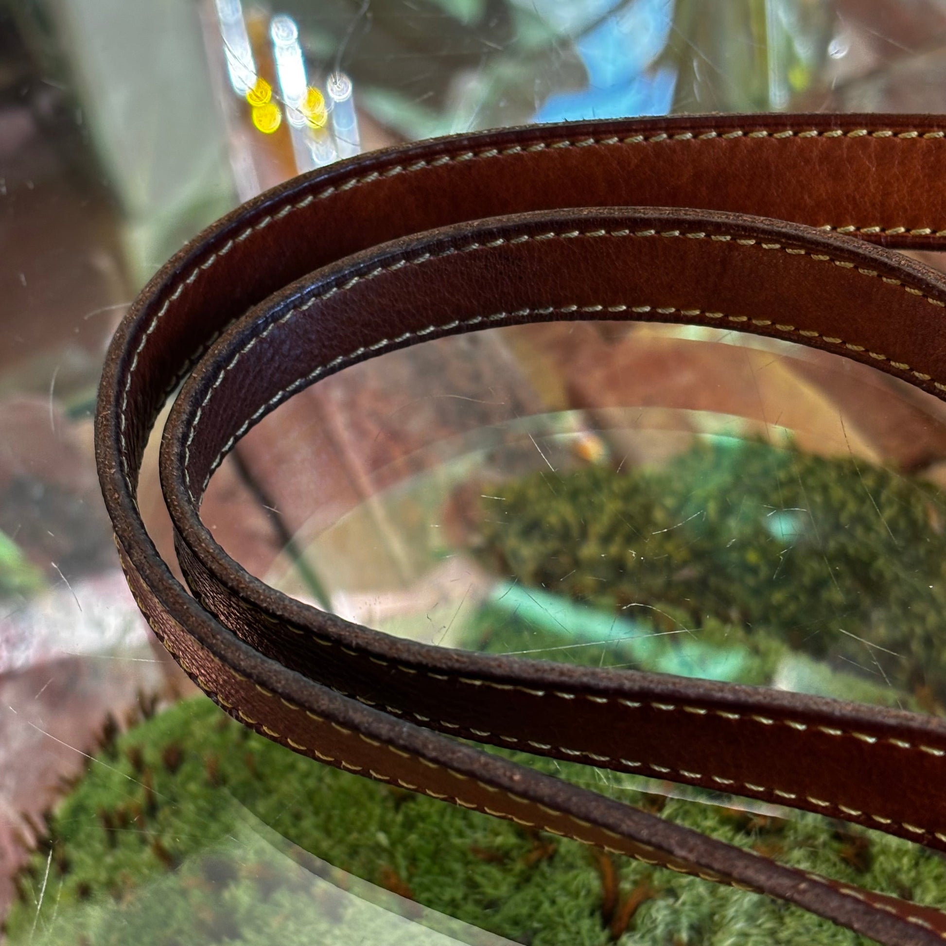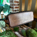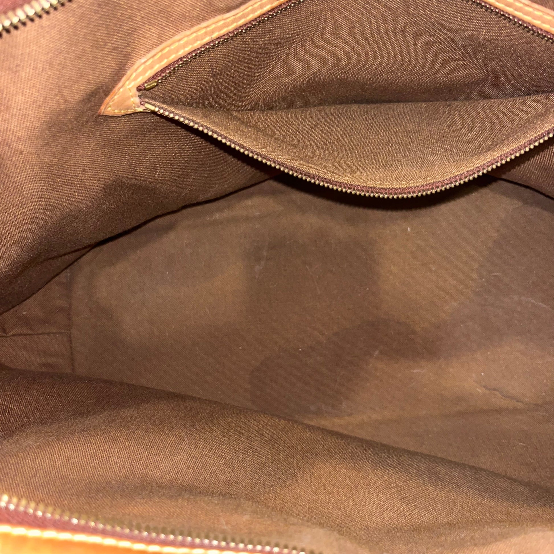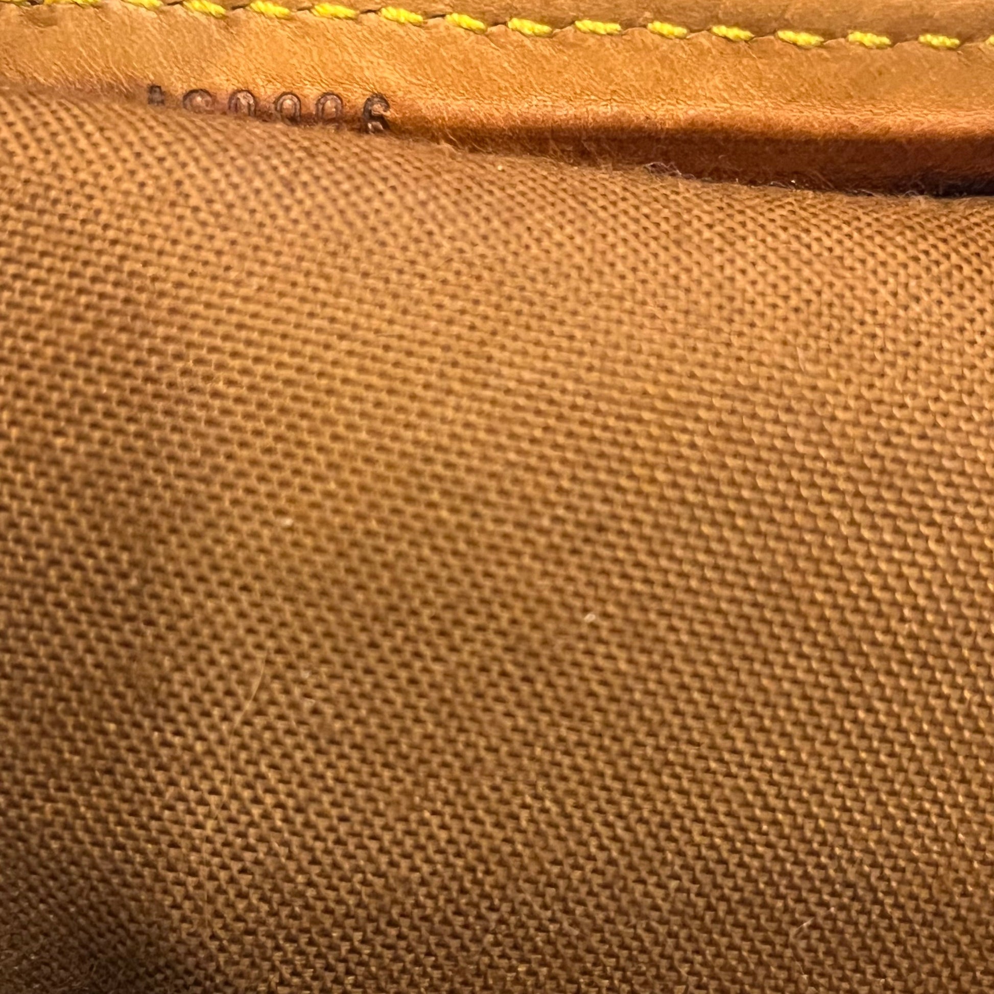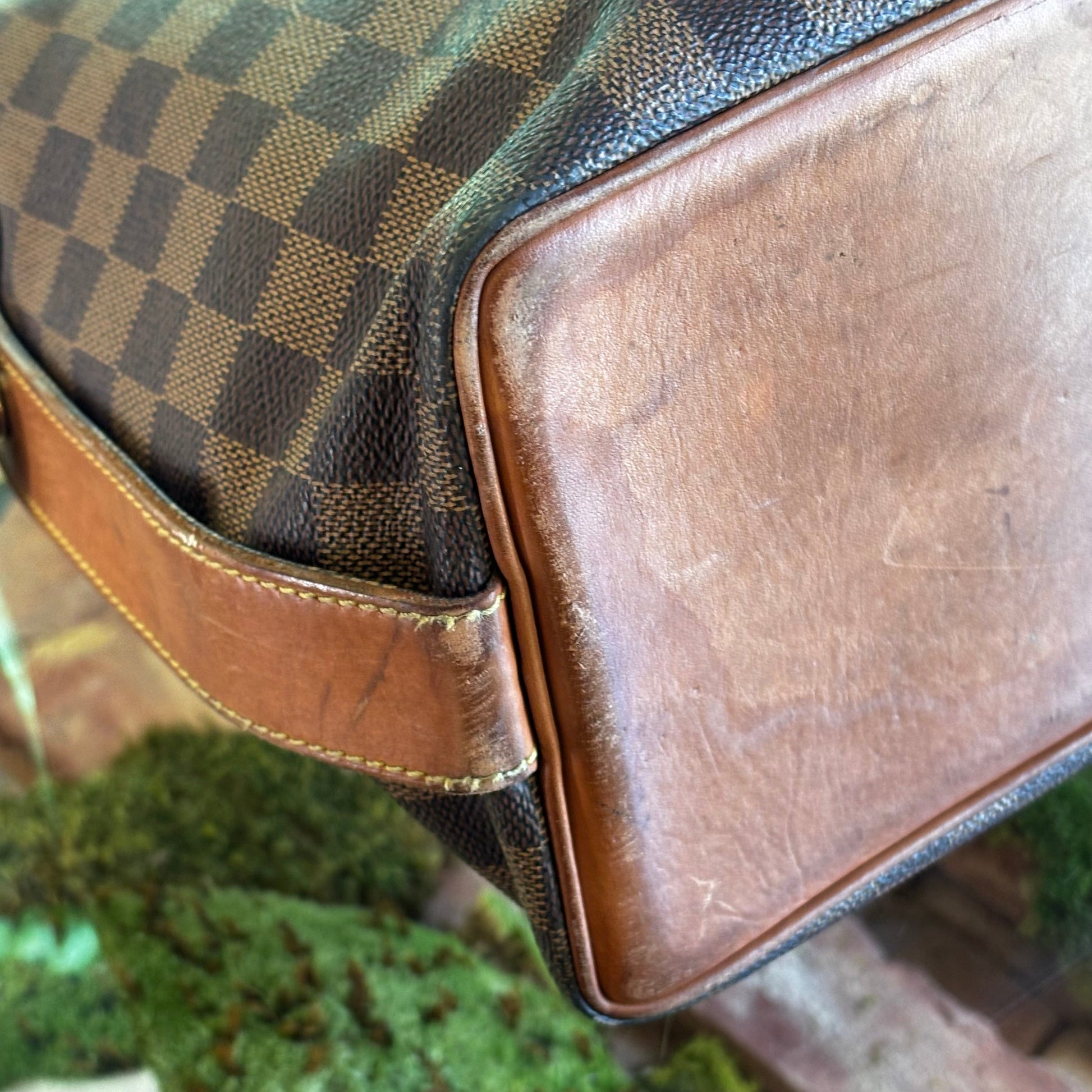 - Handle + Vachetta Leather Trim: The vachetta leather has developed a dark patina displaying wear such as: water spots, scuffing, soiling, rubbing, markings, creasing, loose threading, it appears some of the stitches may have been redone, scratches while appearing darker in certain areas(please refer to photos).