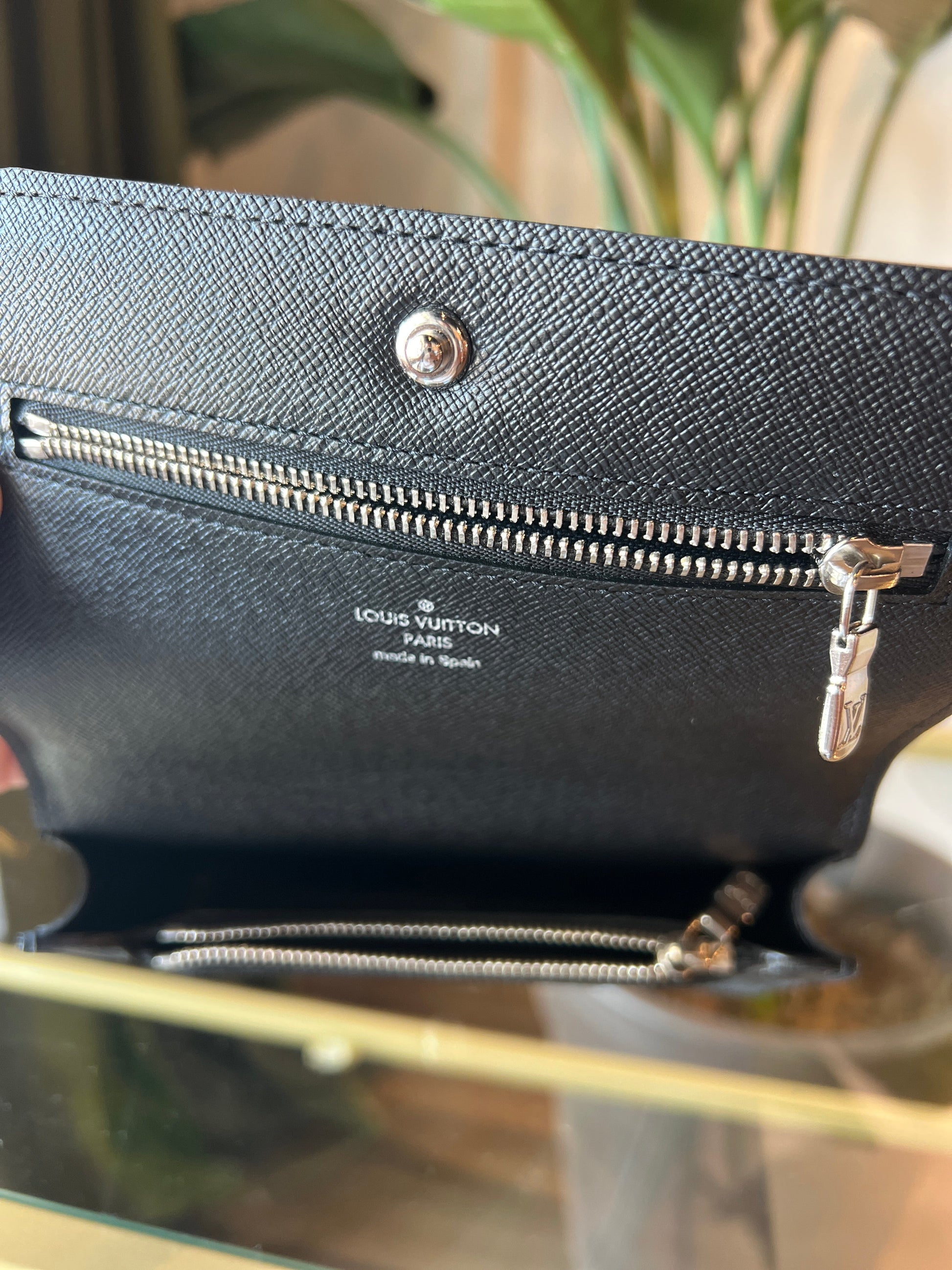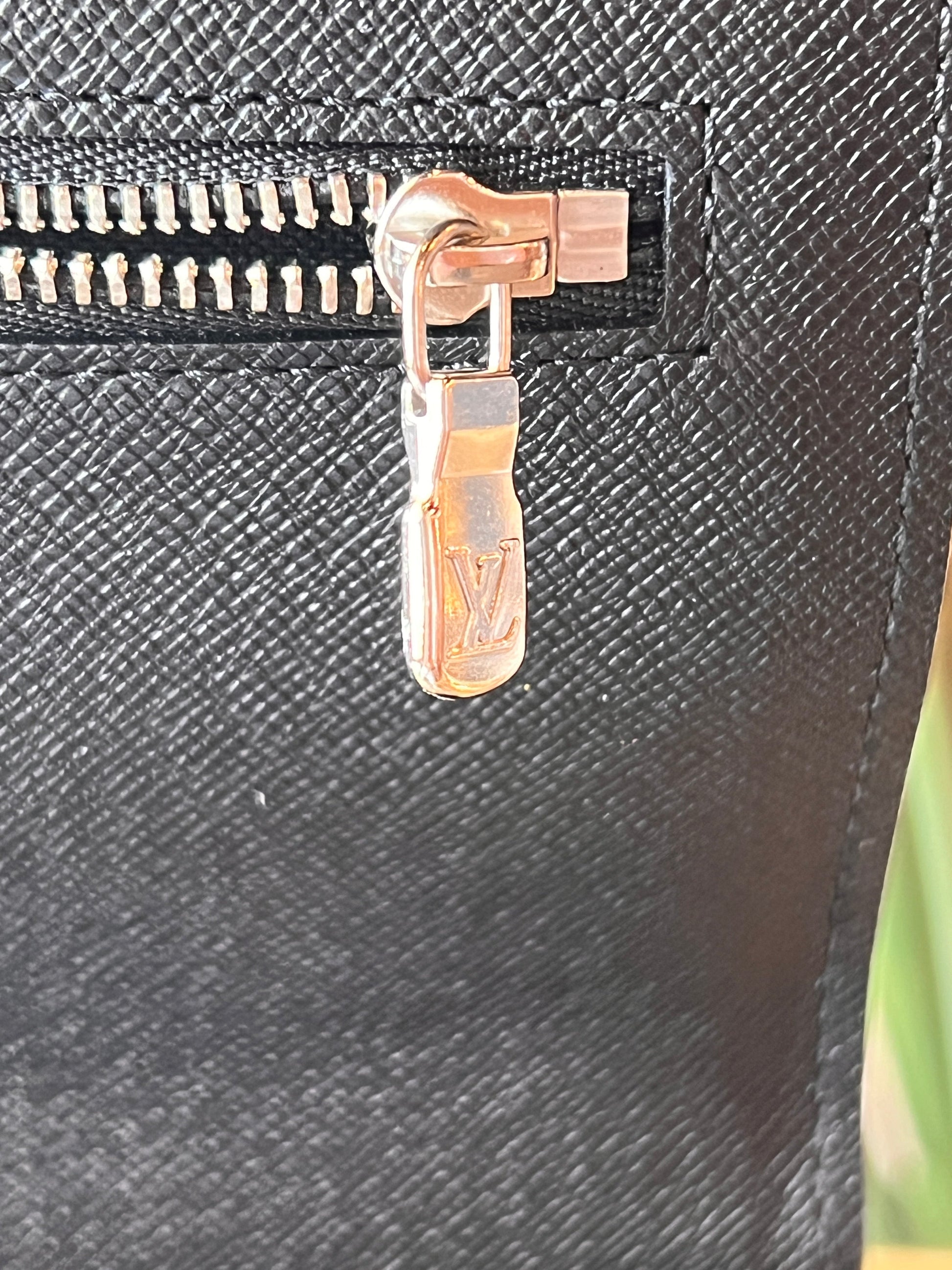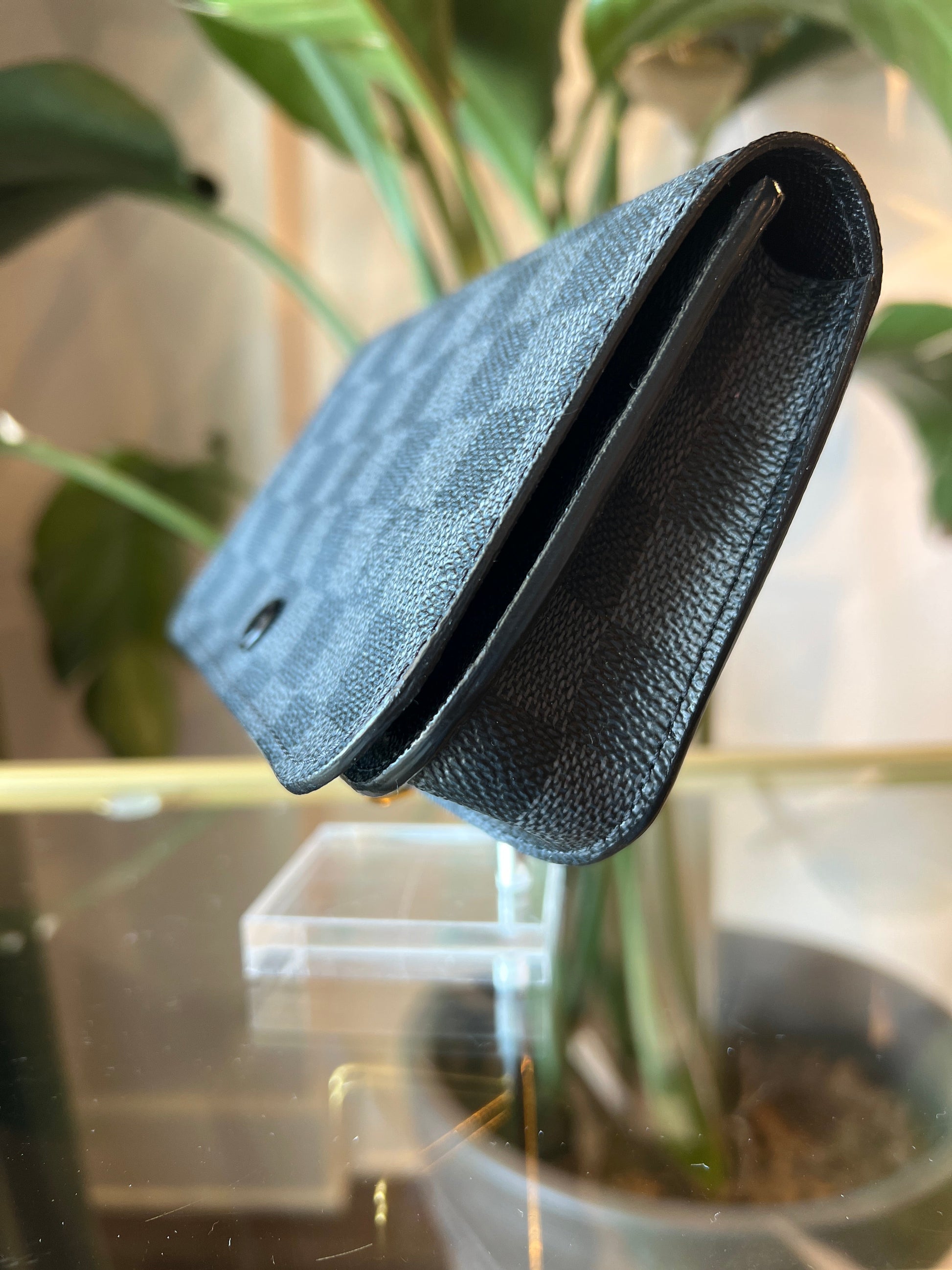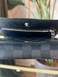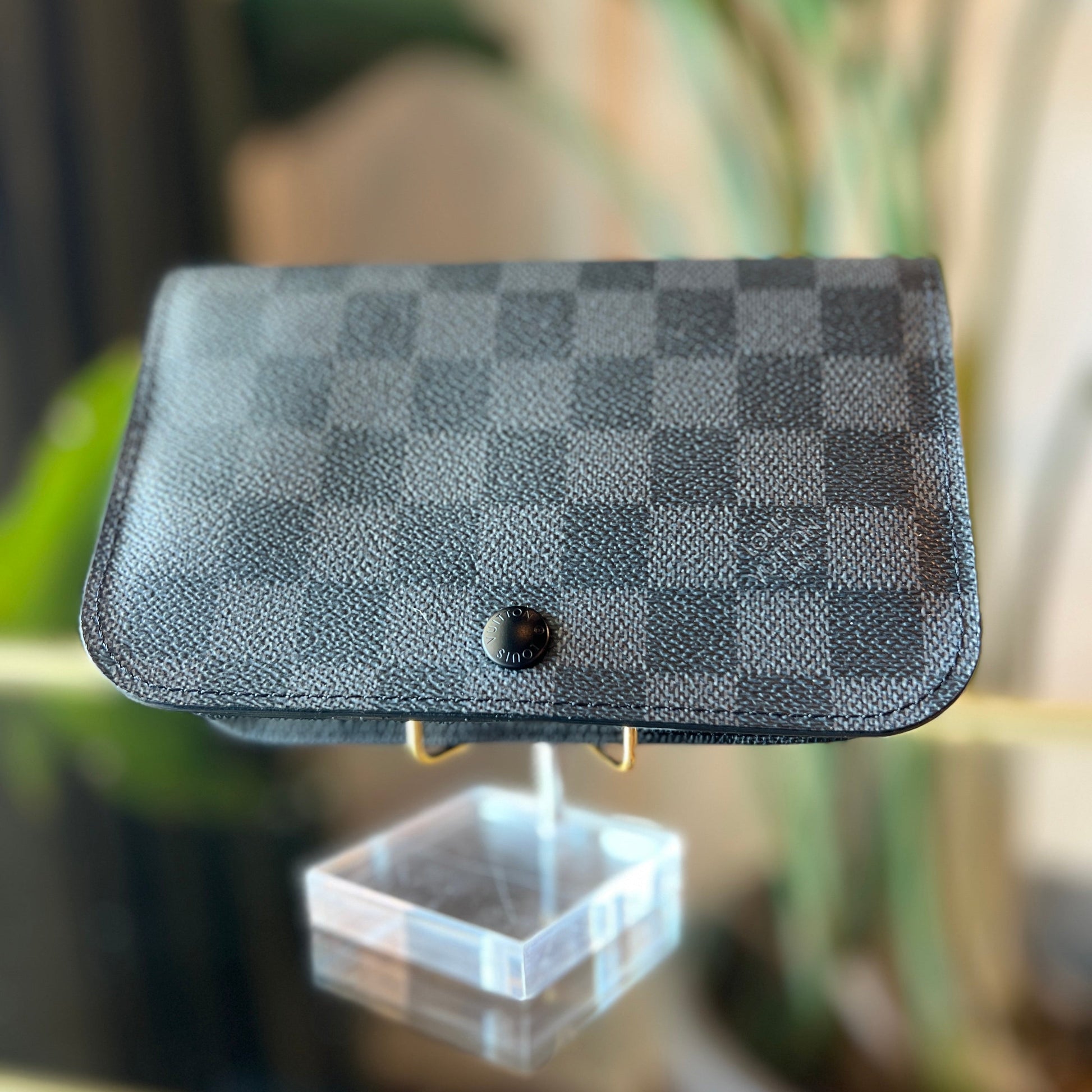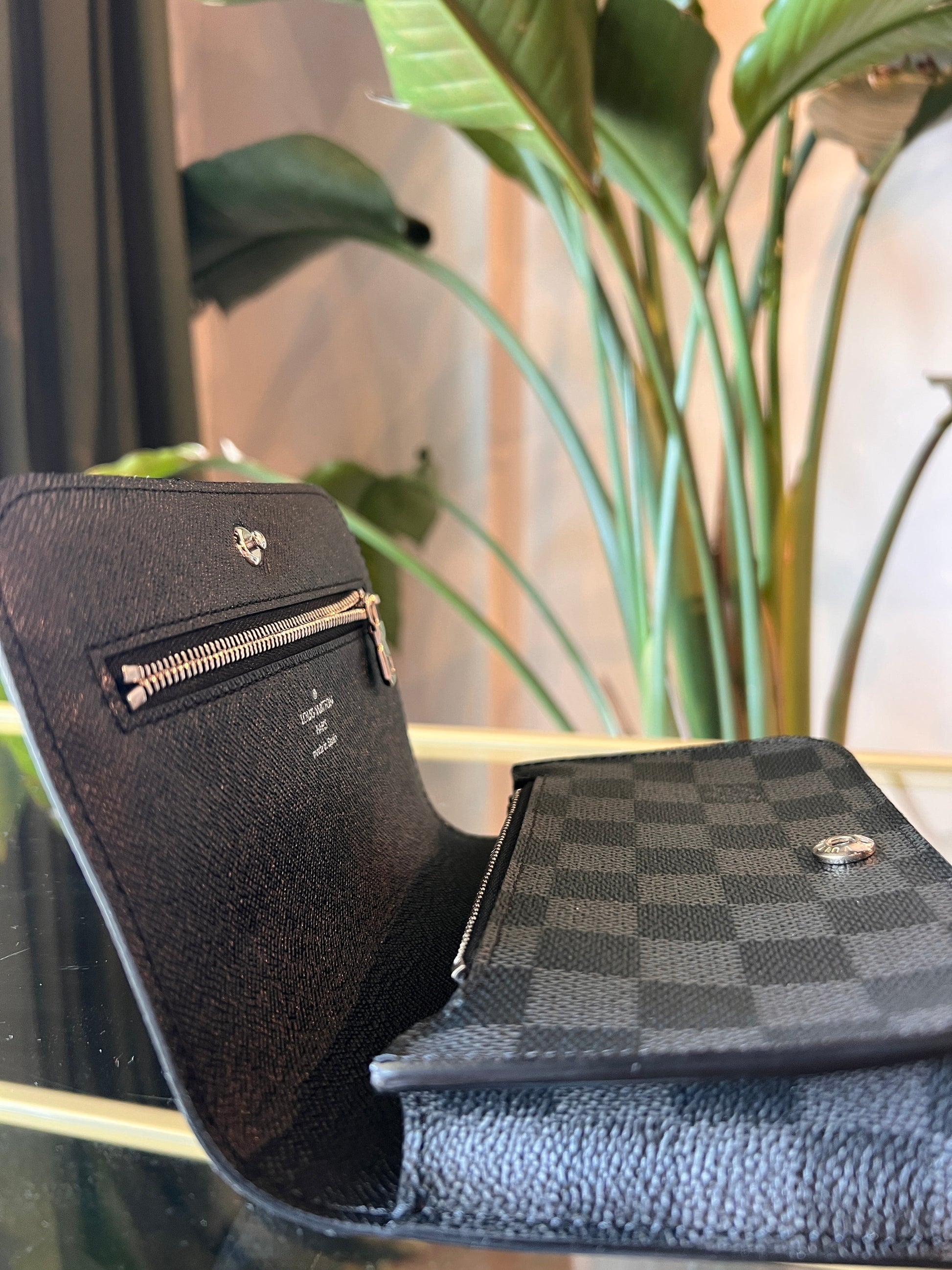- Material: Coated canvas in the Damier Graphite pattern with leather trim