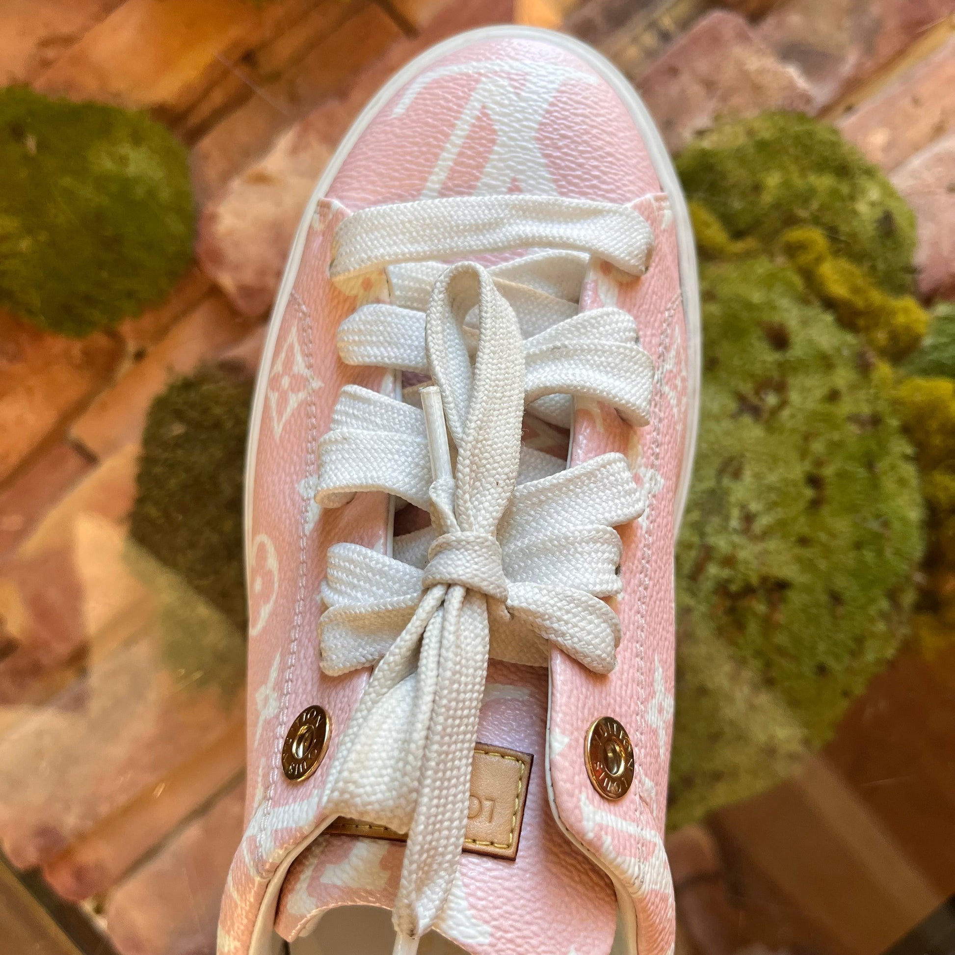 LOUIS VUITTON Giant Monogram Time Out Pink Canvas Sneakers SZ 37 (7 US)