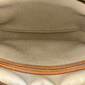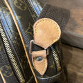 - Exterior: The vachetta leather trim and tabs on the strap has developed a caramel patiana displaying wear such as: water spots, scuffing, soiling, rubbing, markings, creasing, scratches while appearing darker and dry in certain areas(please refer to photos). The coated canvas is misshappen with rubbing, scratches and white transfer marks. It remains vibrant and unfaded. It remains in good overall condition.