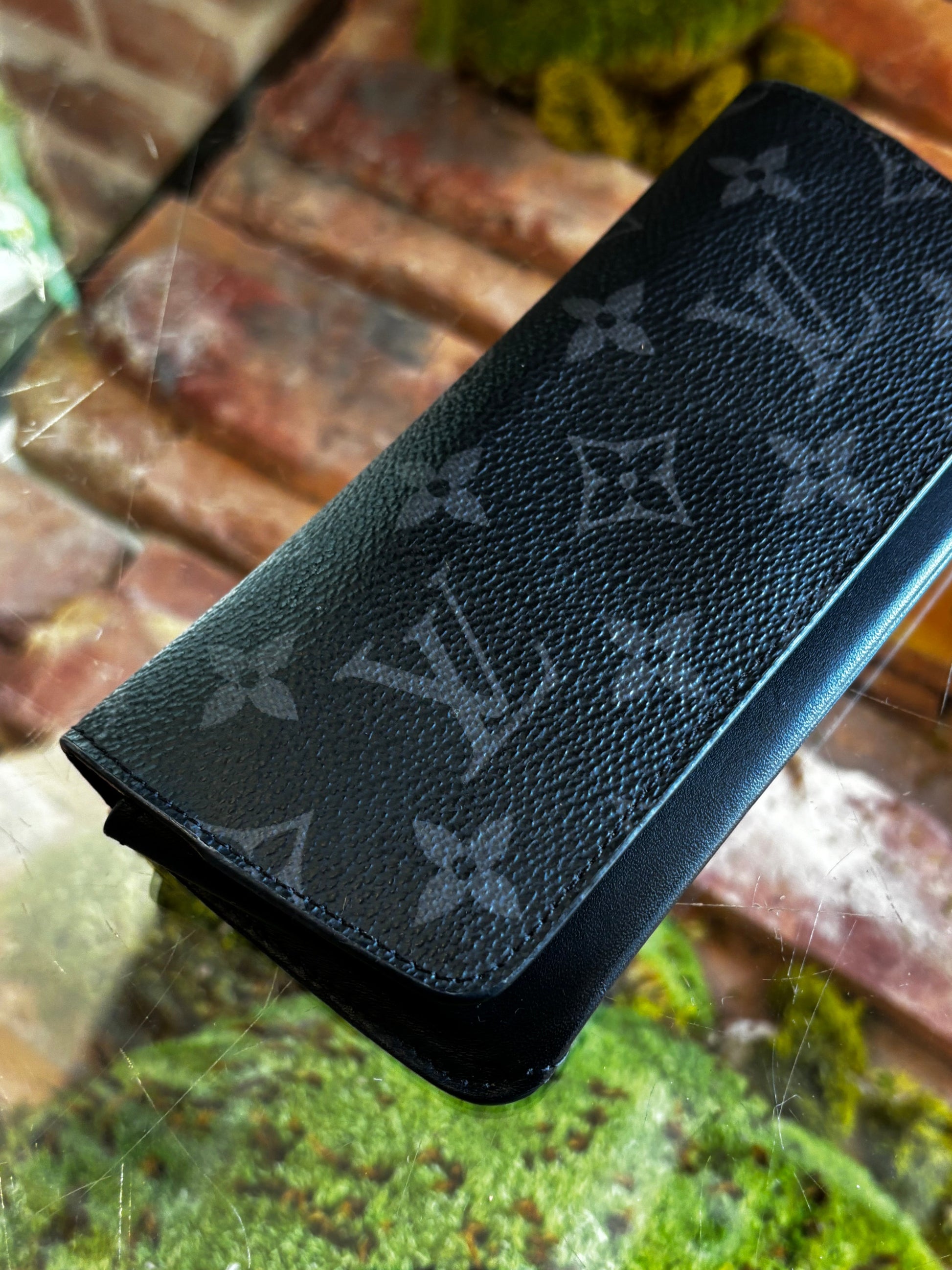 The LOUIS VUITTON Monogram Eclipse Woody Glasses Case offers a refined blend of luxury and practicality. Crafted with the iconic Monogram Eclipse canvas, this case provides elegant protection for your eyewear while reflecting timeless style. Its sleek design ensures your glasses remain secure and easily accessible, making it an essential accessory for those who appreciate sophistication in every detail. Overall in Very Good Condition. B+