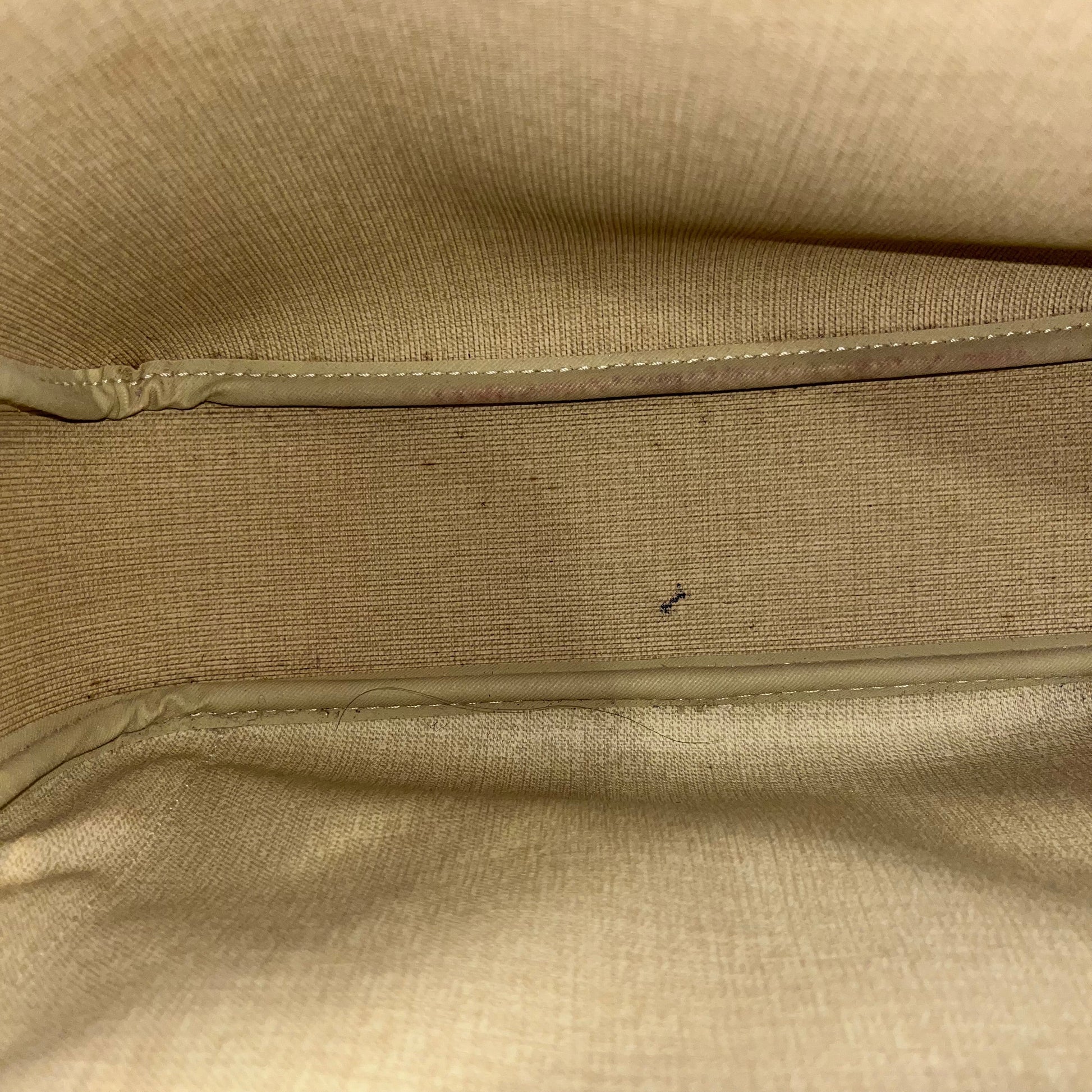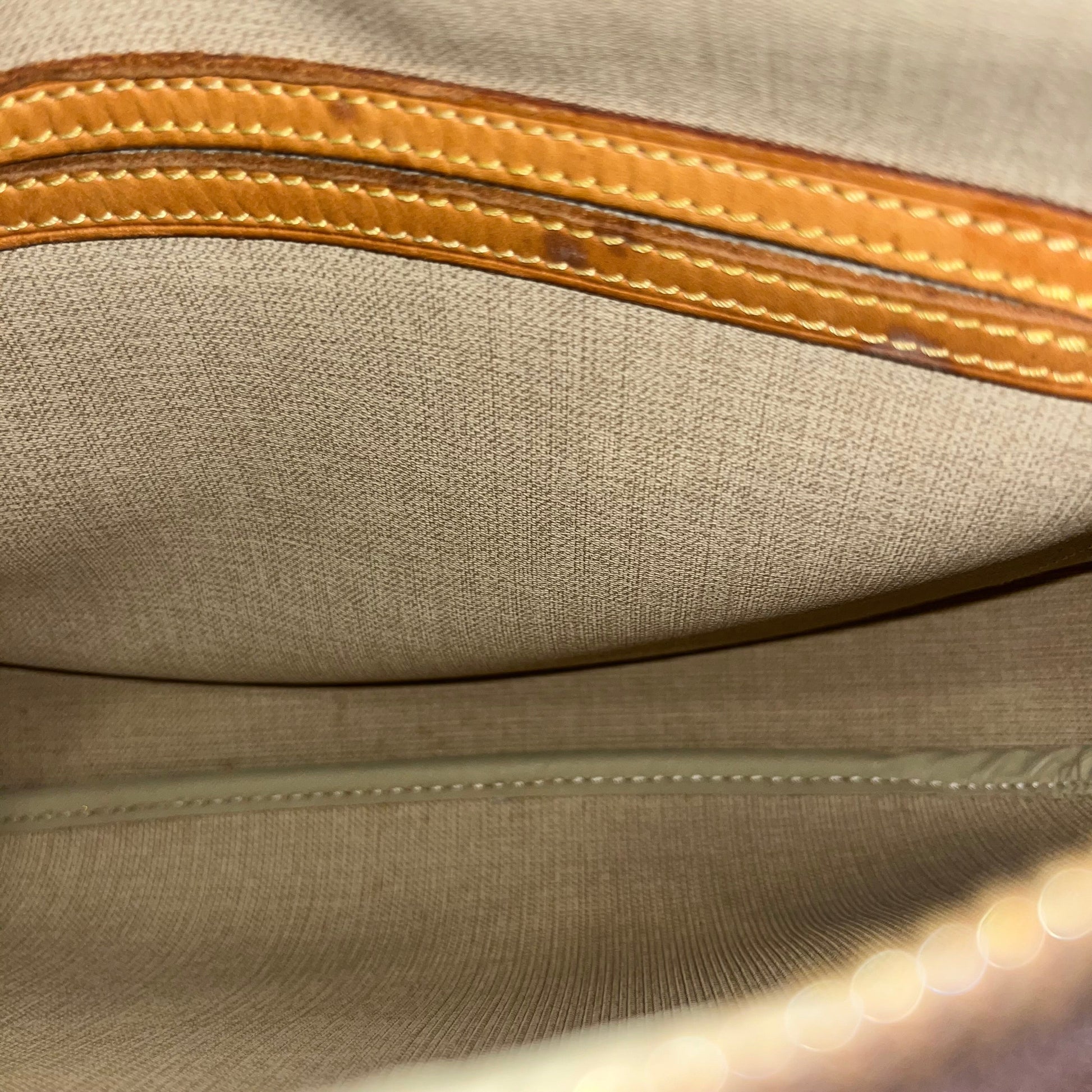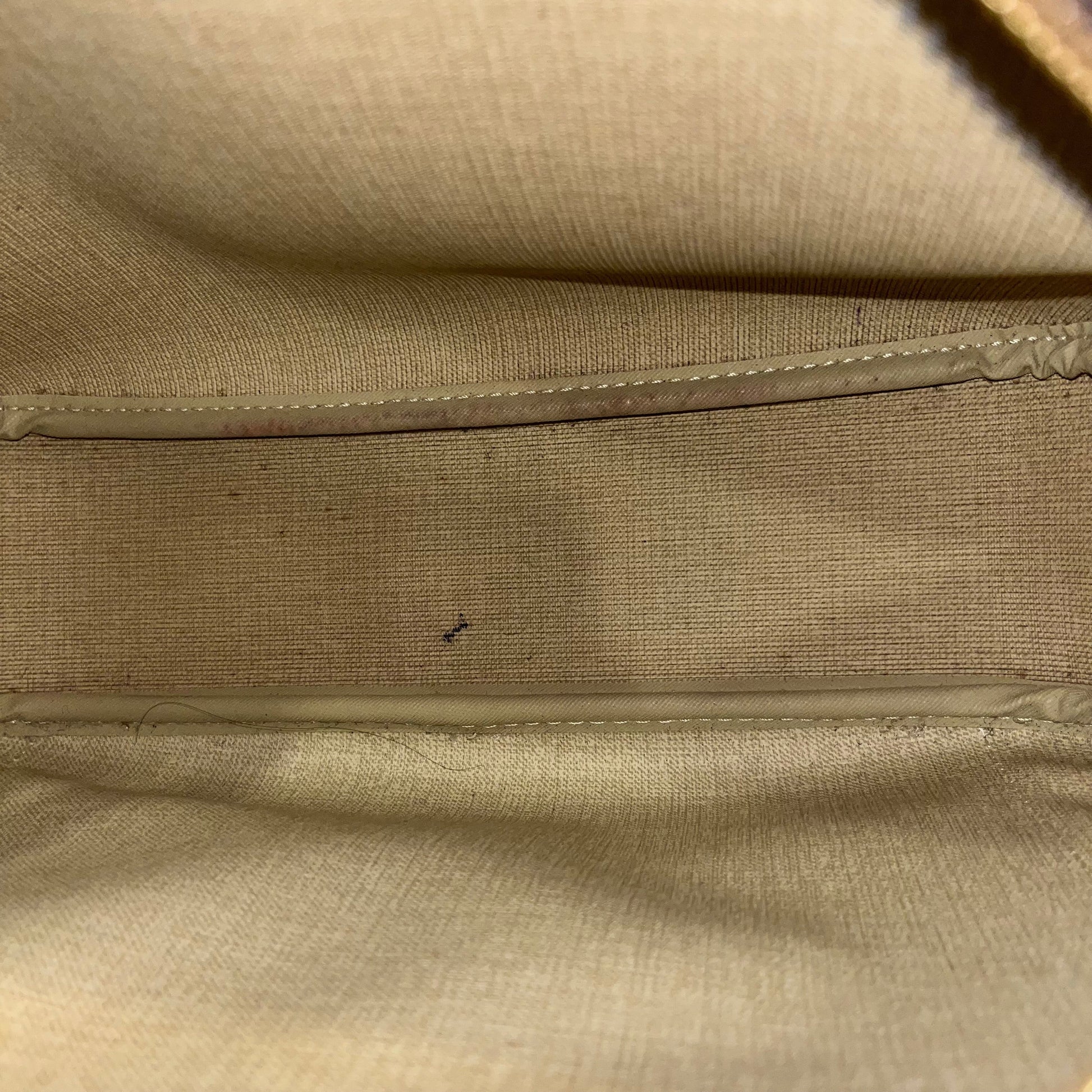 - Exterior: The vachetta leather has developed a deep honey patina appearing darker along certain parts with soiling, rubbing, scuffing, scratches, flaking and water/oil marks. The coated canvas is vibrant and clean with mild rubbing. Overall it's in very good vintage condition.
