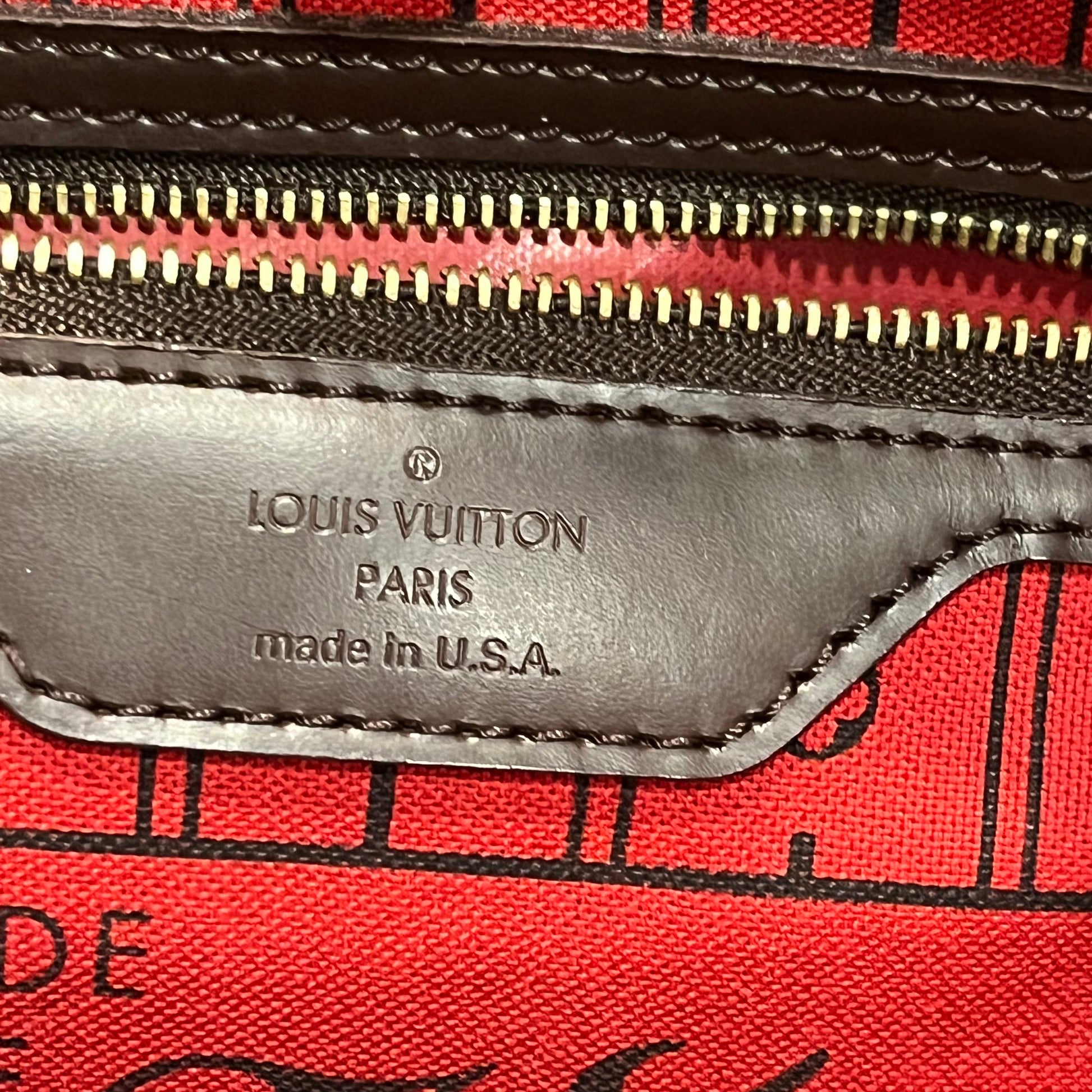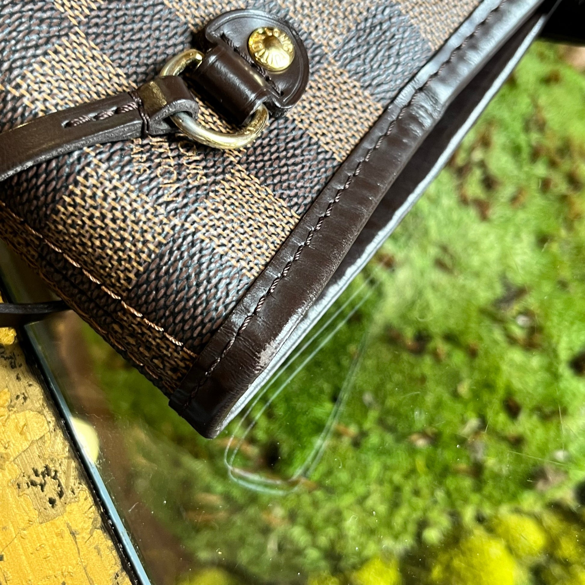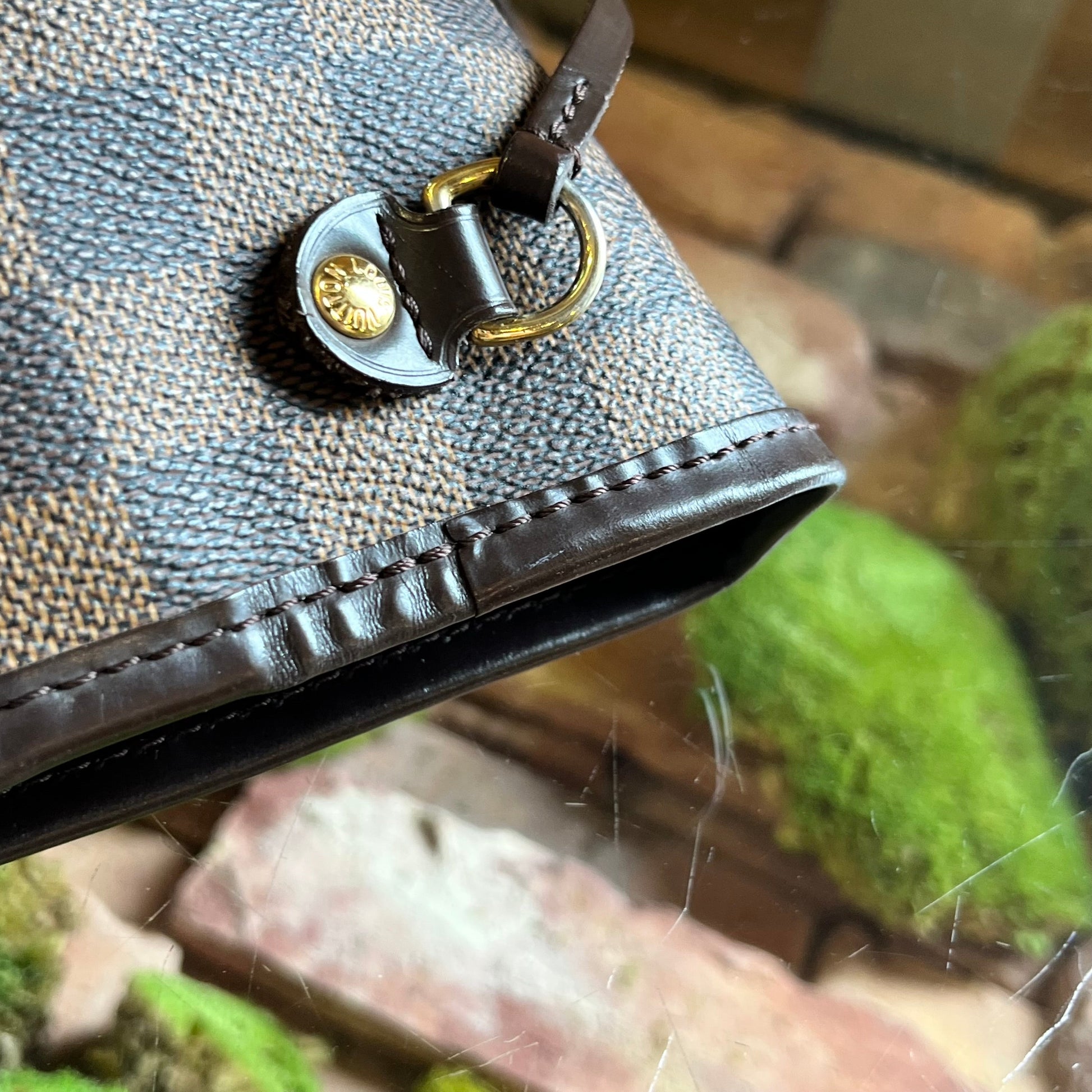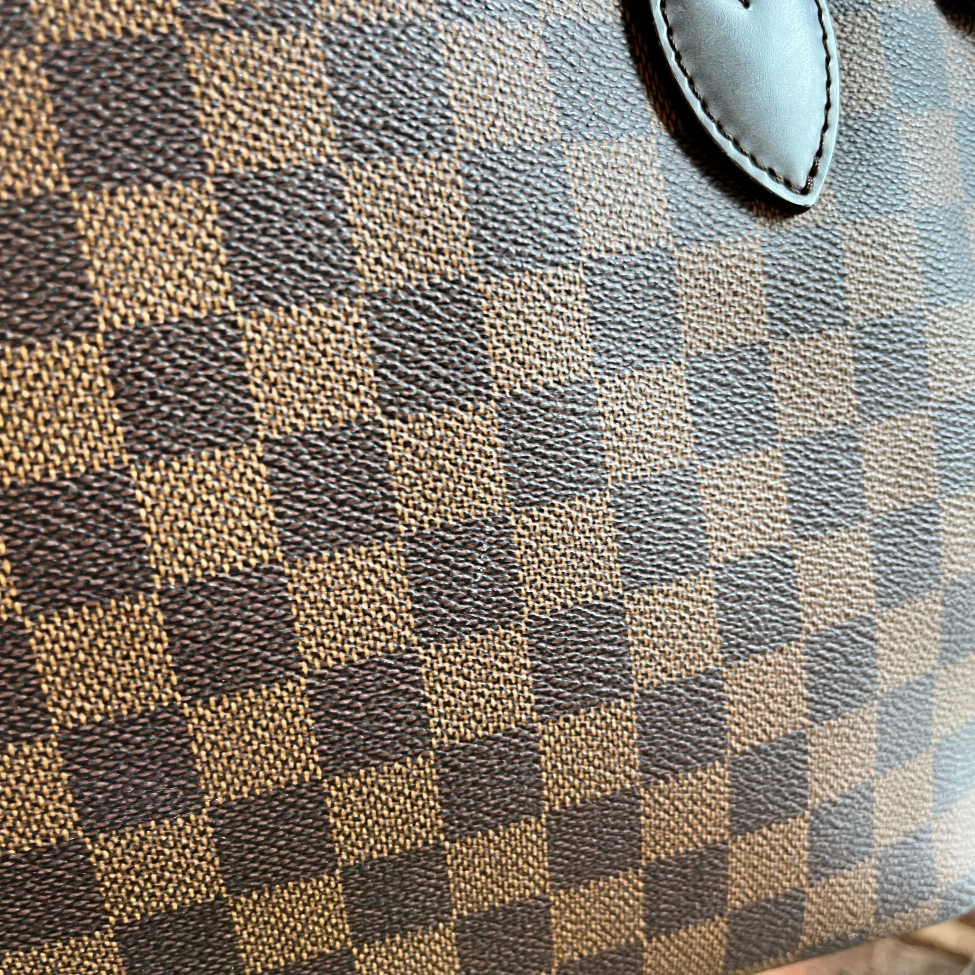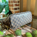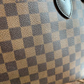 A classic tote in Louis Vuitton's durable Damier Ebene canvas, featuring leather trim and roomy open-top design. The comfortable rolled handles and optional pouch make it perfect for daily errands or work, while the timeless pattern ensures lasting style. B+ Very Good Condition