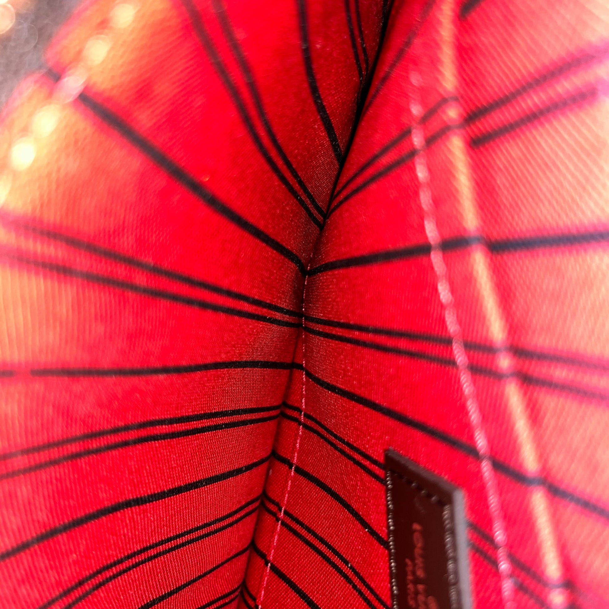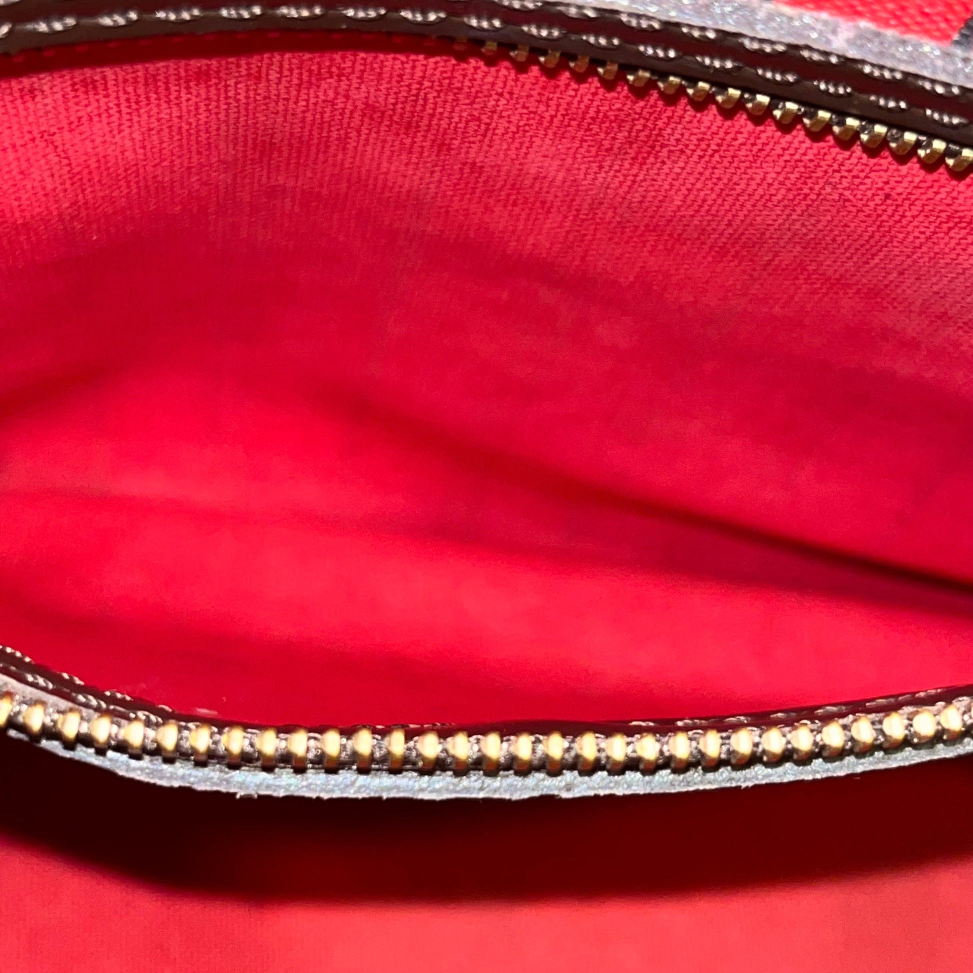 - Exterior: The exterior is vibrant and beautiful with heavy rubbing to the bottom corners, a light scratch and gentle scuffing to the leather trim.