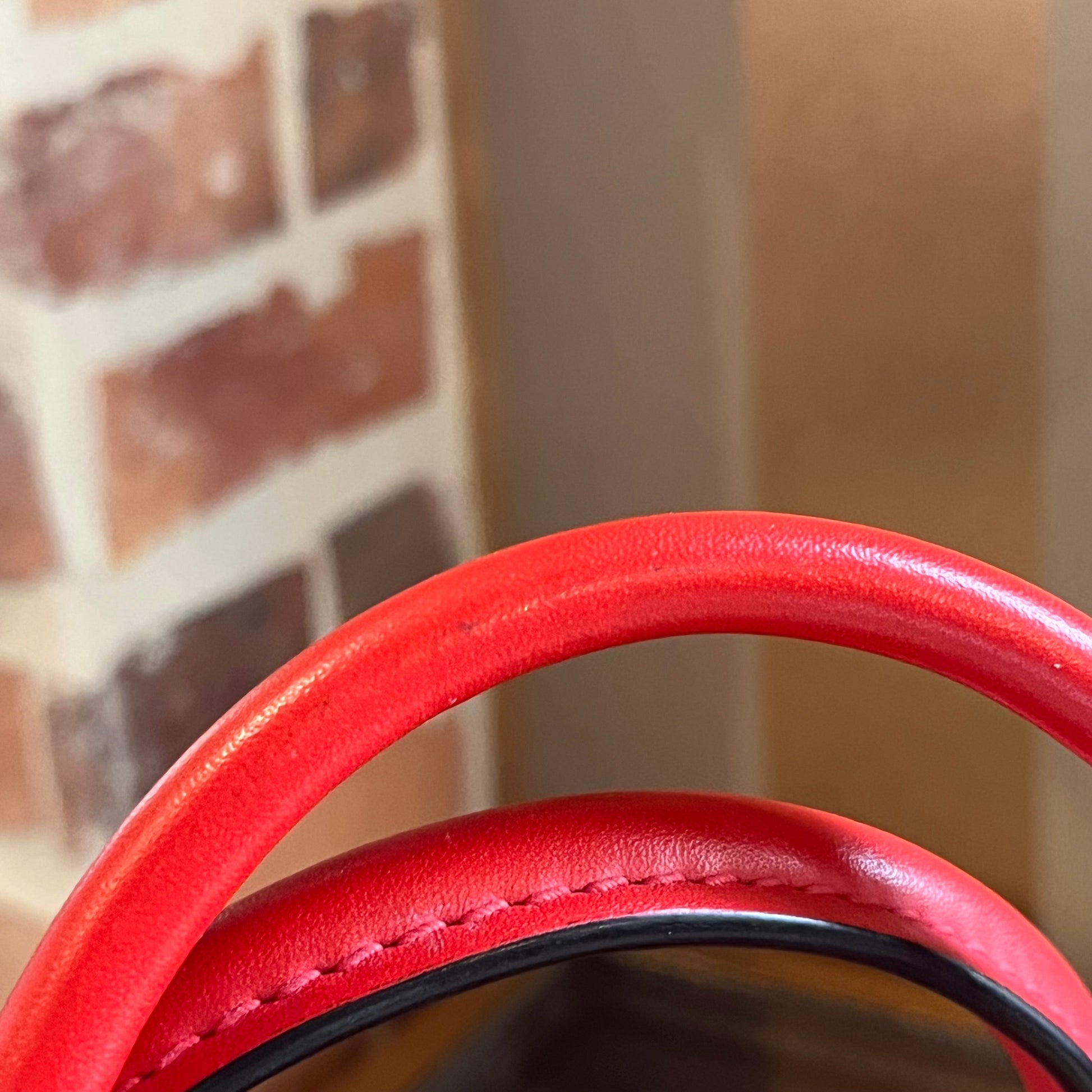 - Handle: The leather is gorgeous and vibrant displaying markings, creasing, rubbing, glazing wear.