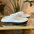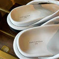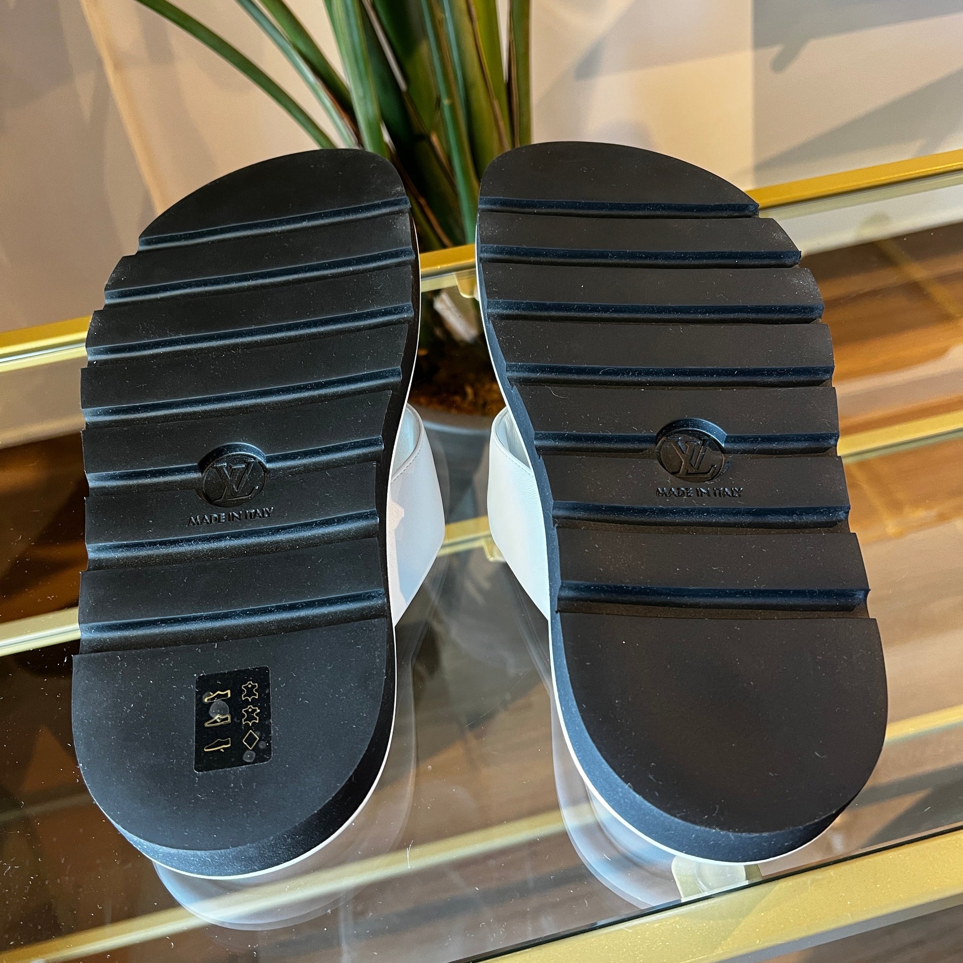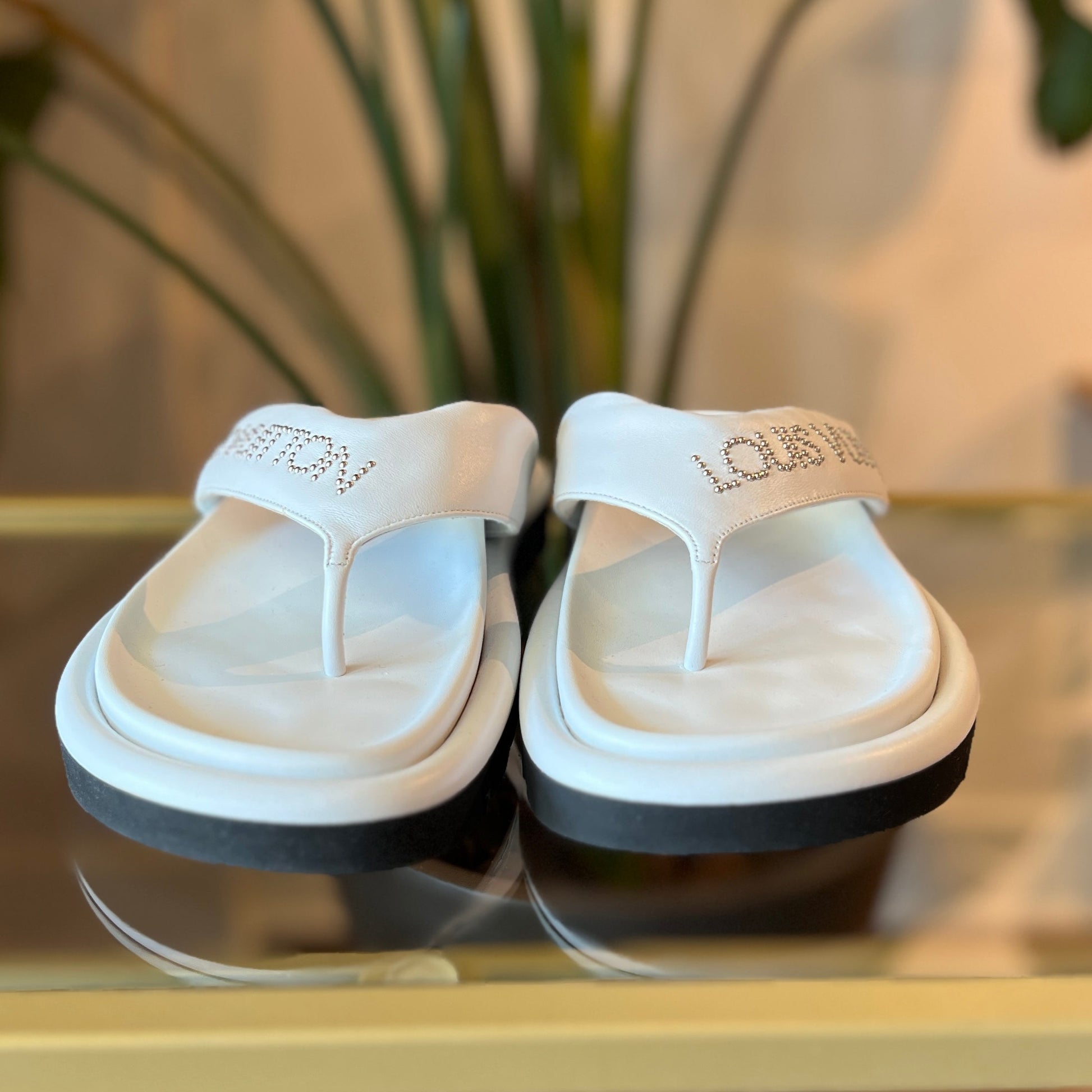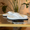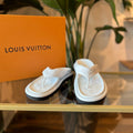 Elevate your summer style with these LOUIS VUITTON flip flops, crafted from pristine white leather and detailed with elegant studded accents. Designed in size 40, they offer a refined blend of luxury and comfort, perfect for making a subtle yet sophisticated statement on warm days. Very good condition.
