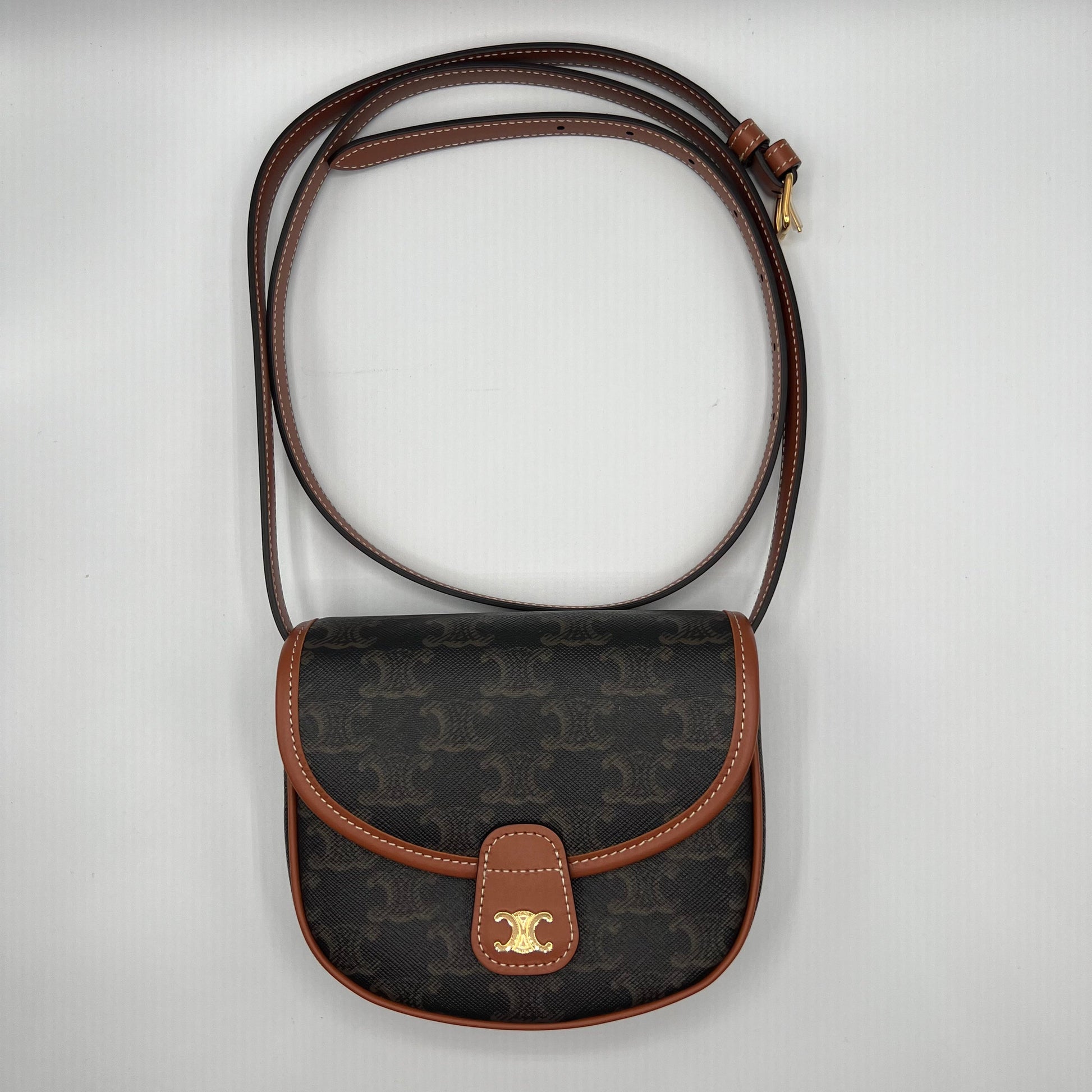 Brand spanking new Celine Triomphe Canvas & Calfskin Crossbody! She literally has no flaws and still comes in her original packaging (took it off for photos). Celine recently raised the price of this bag by $50, so you will saving on retail price and tax!