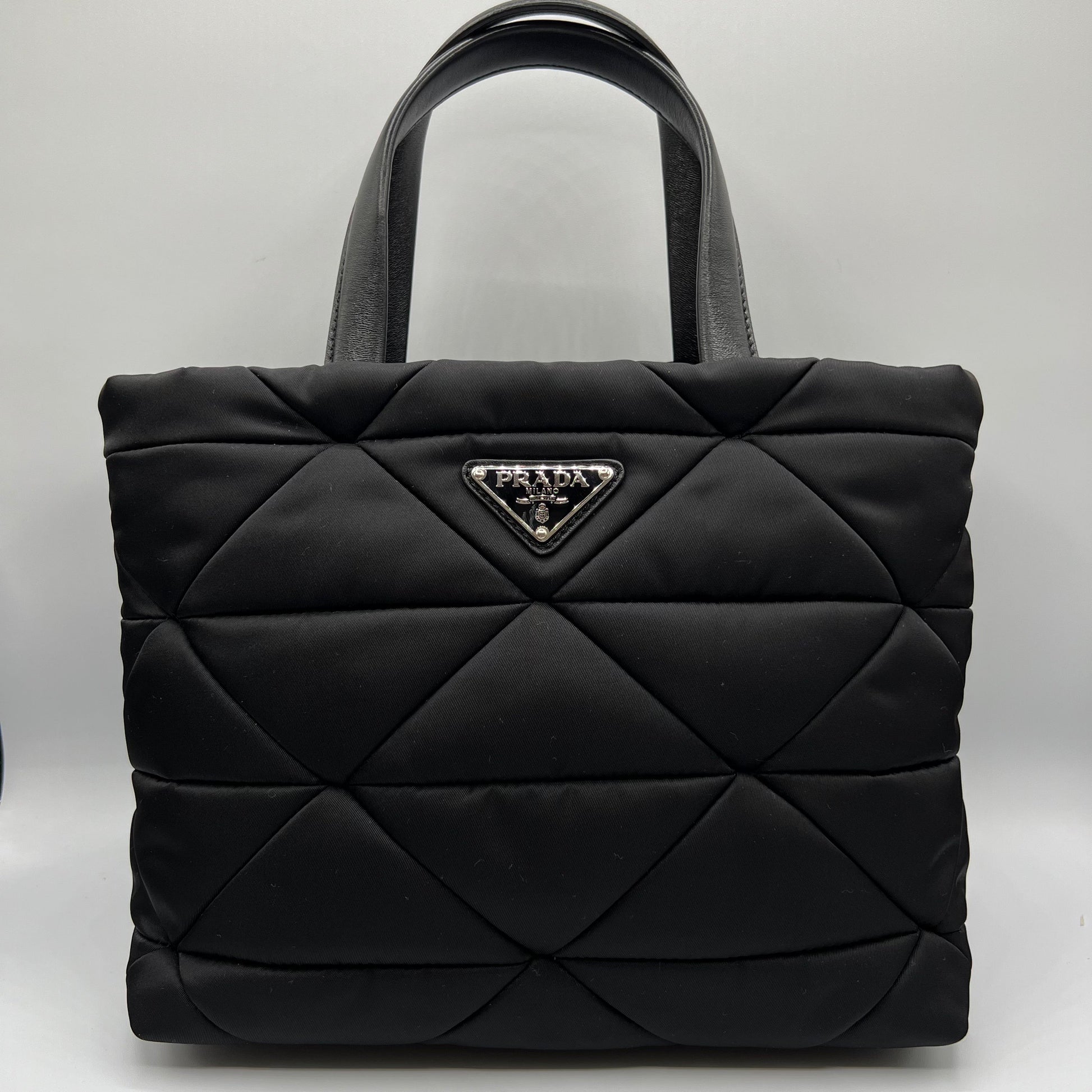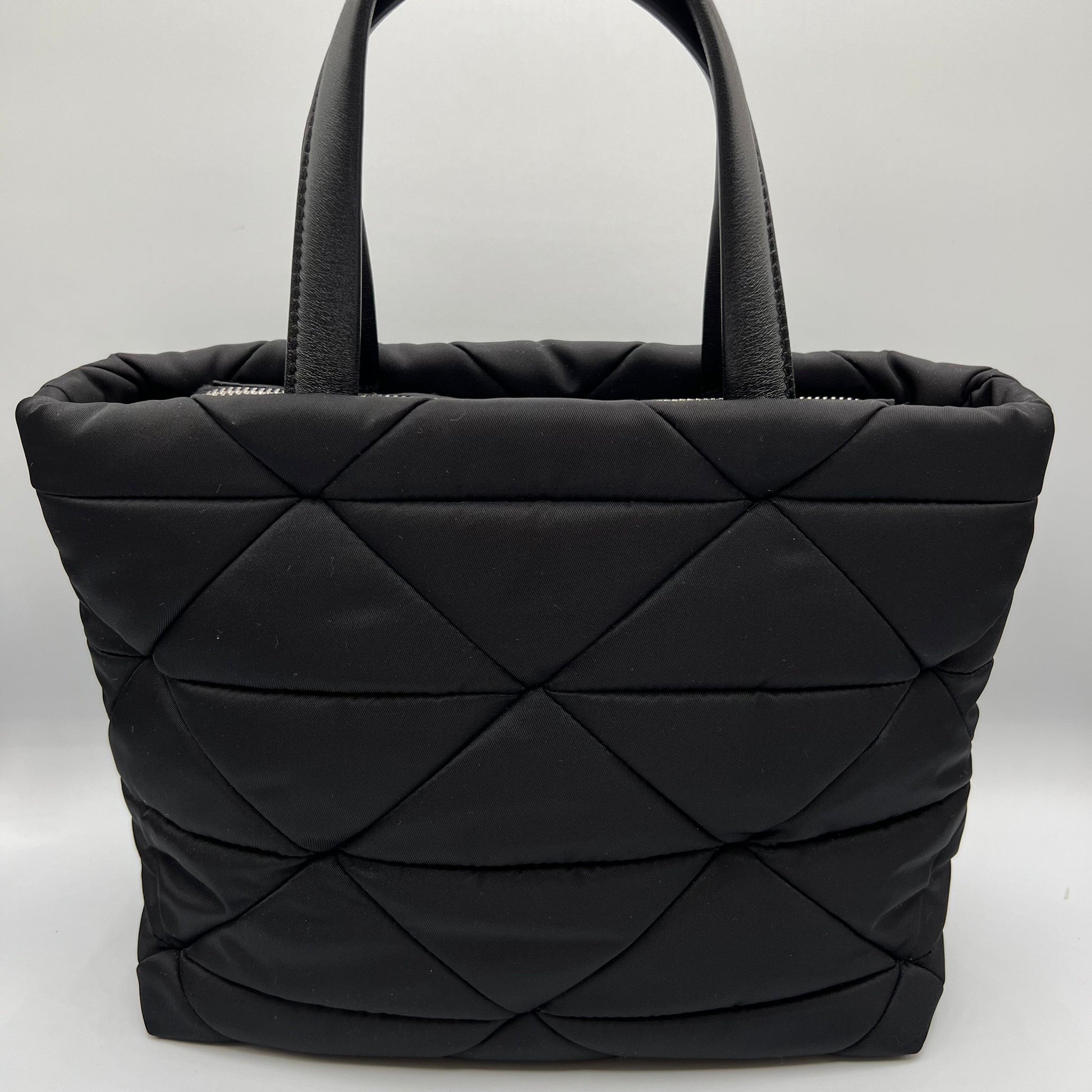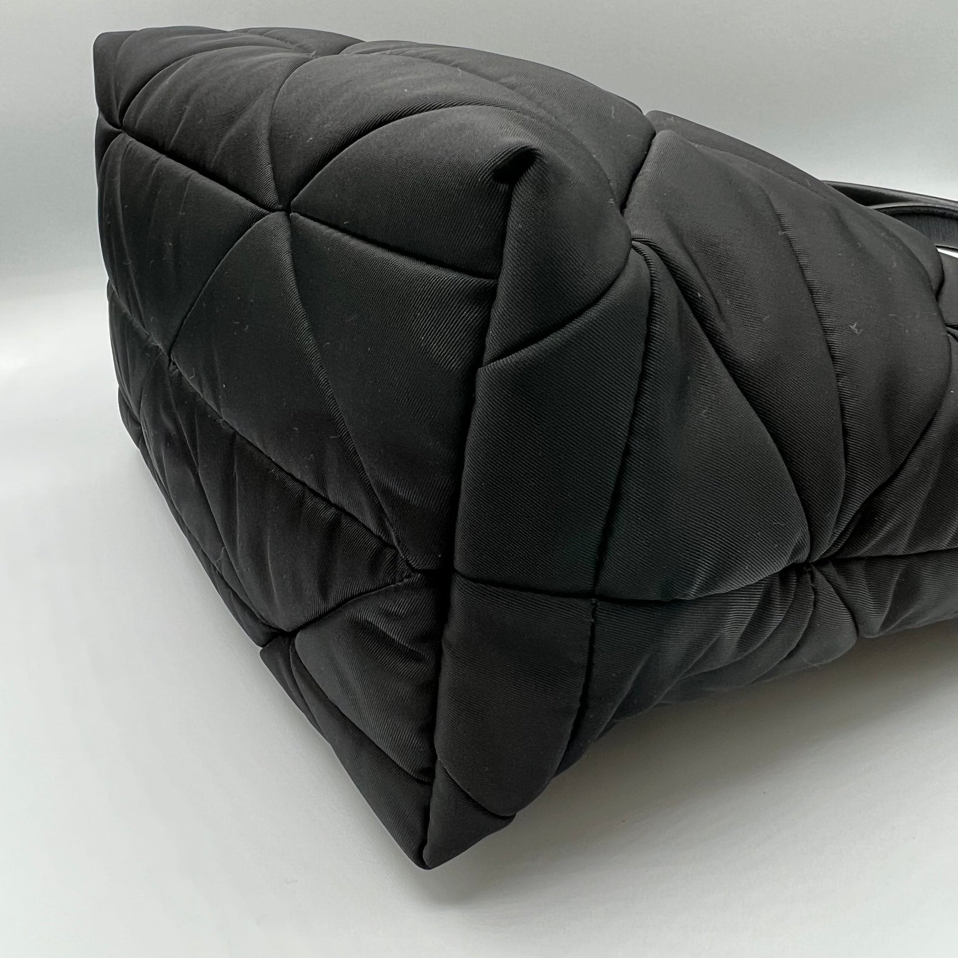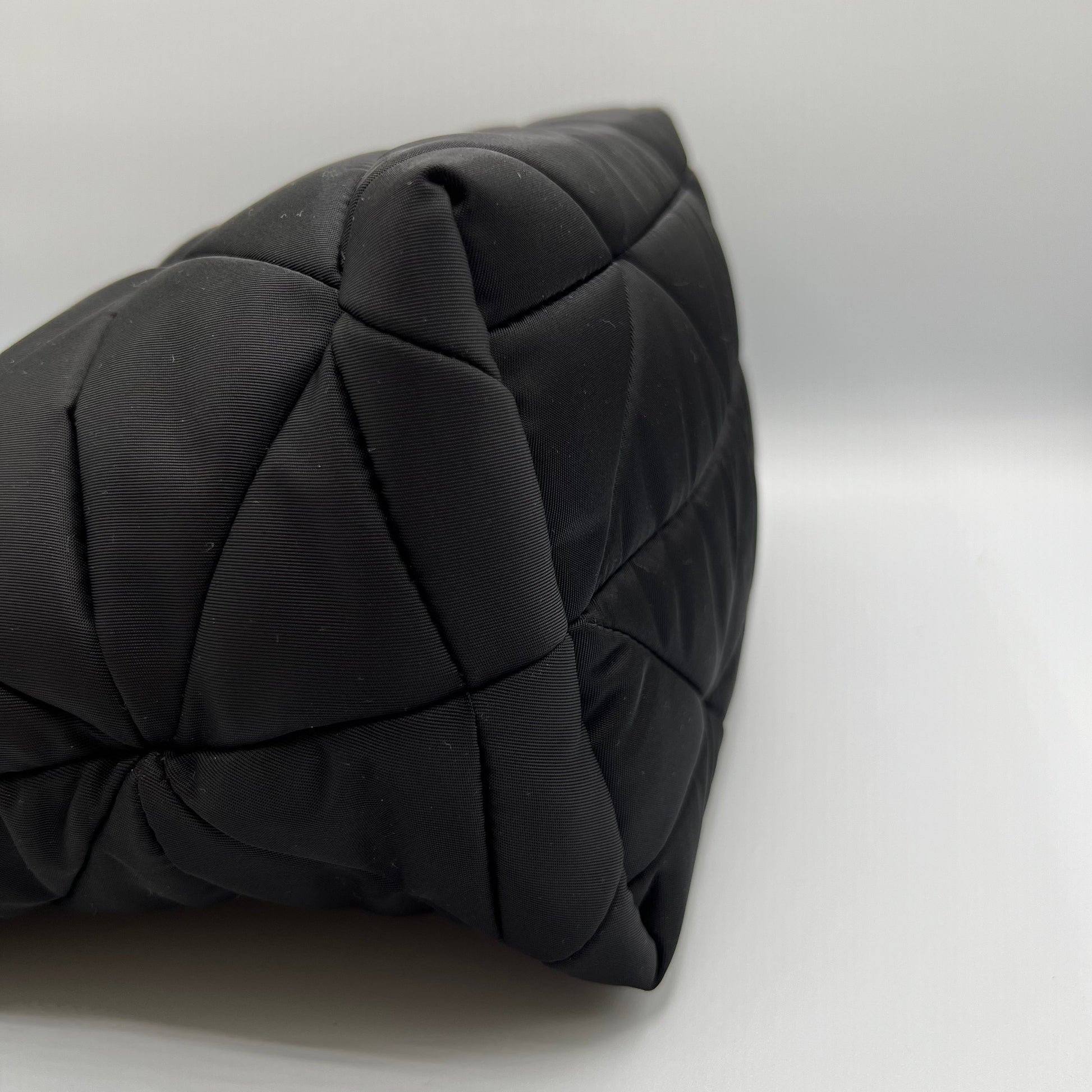 Black Padded Re-Nylon Quilted Tote