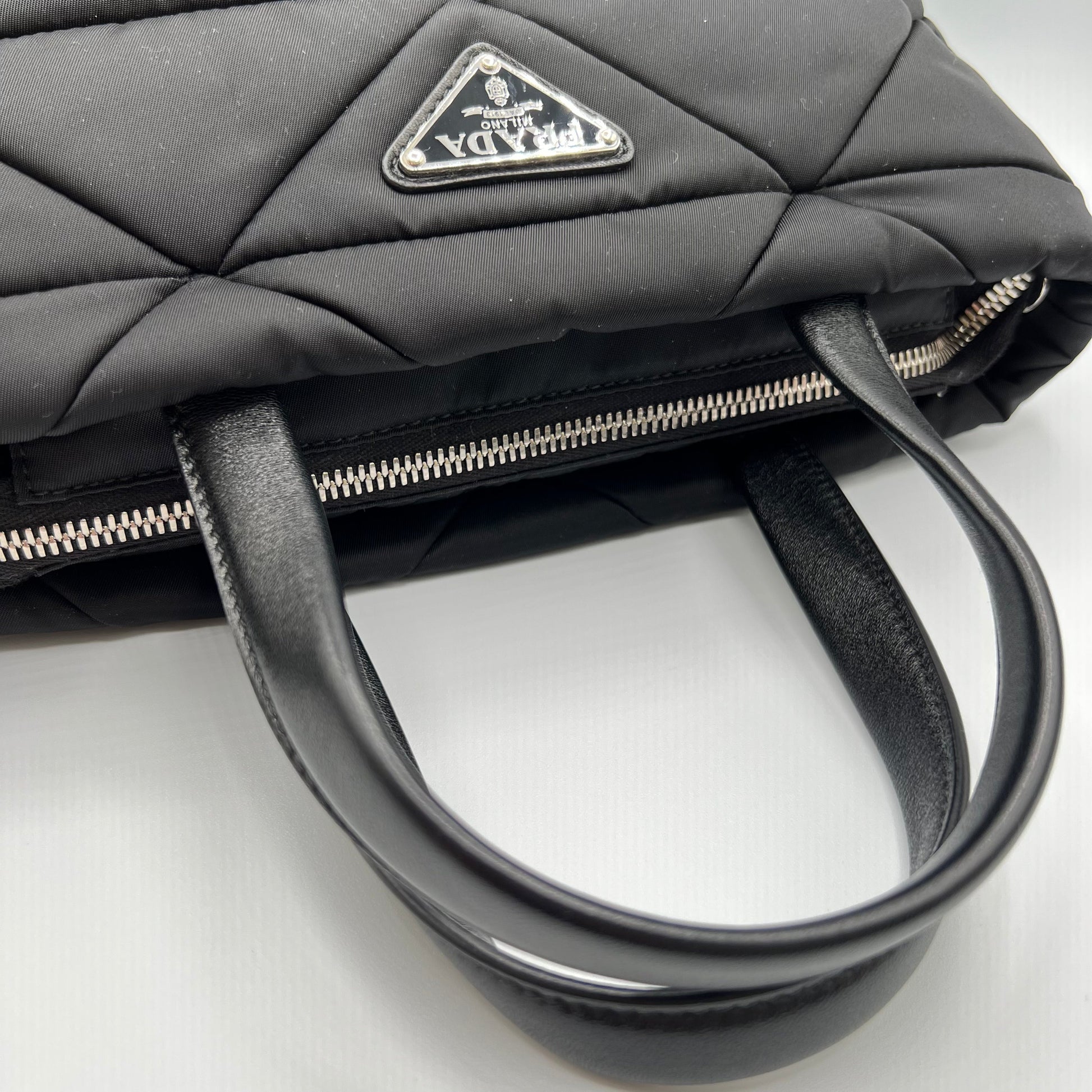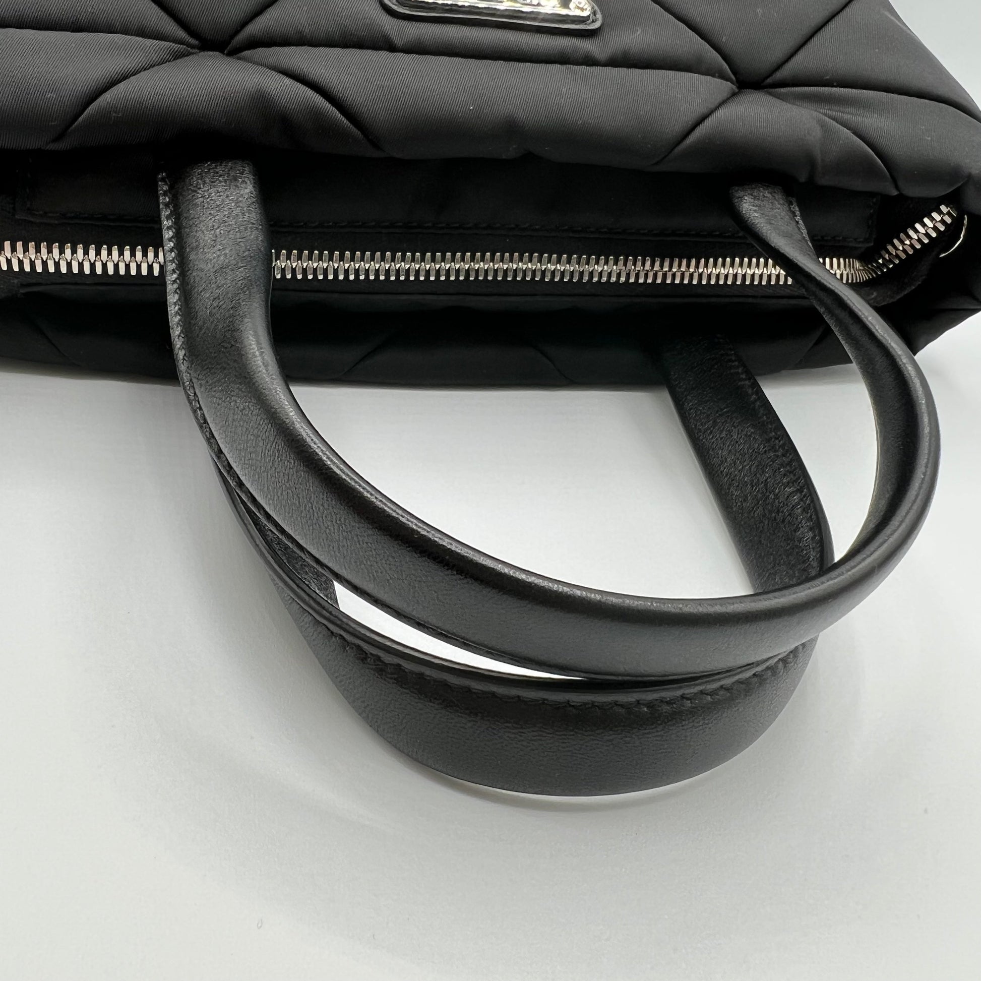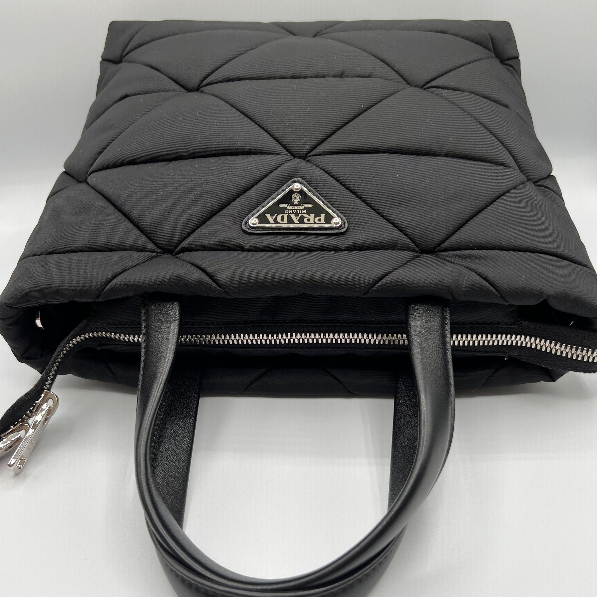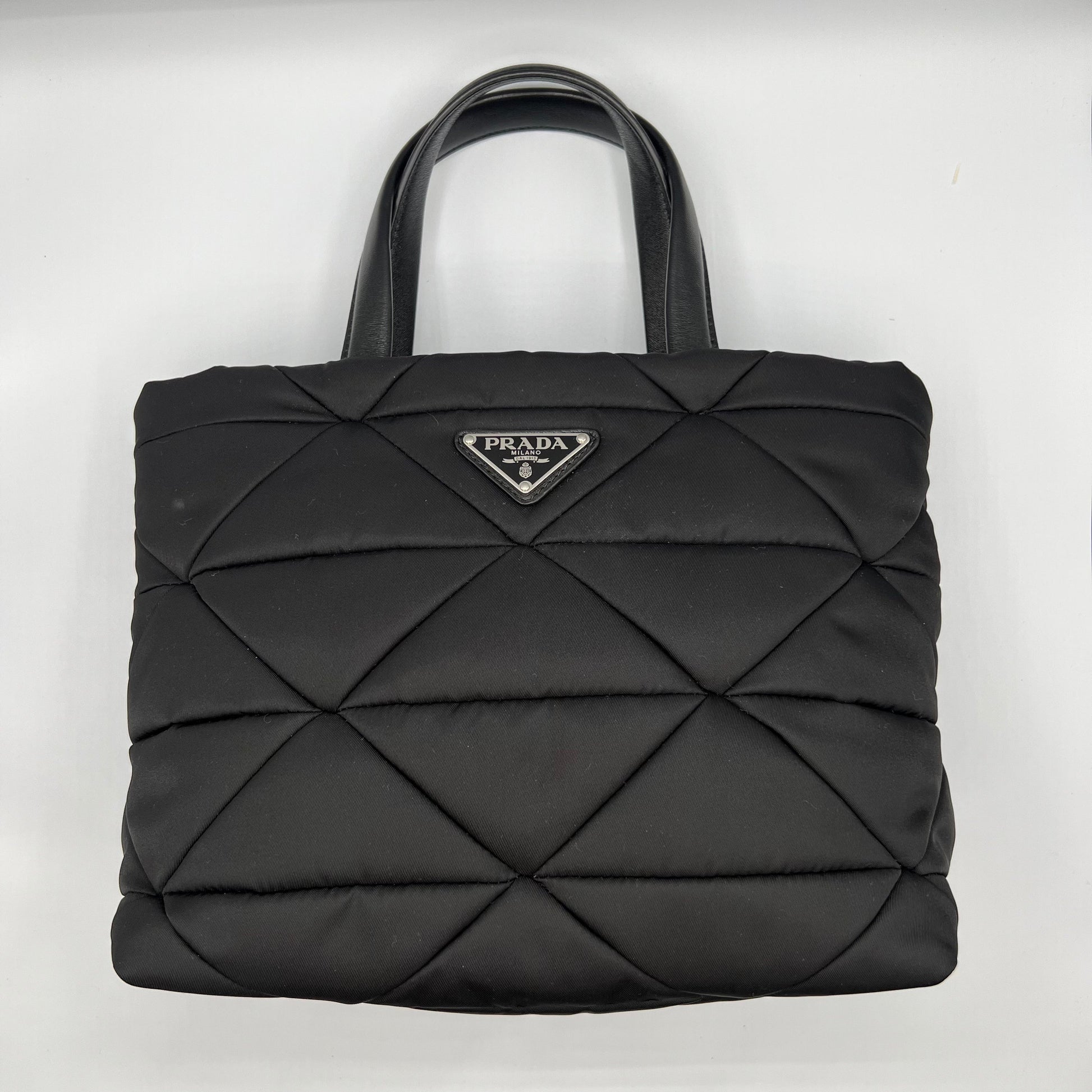 Black Padded Re-Nylon Quilted Tote