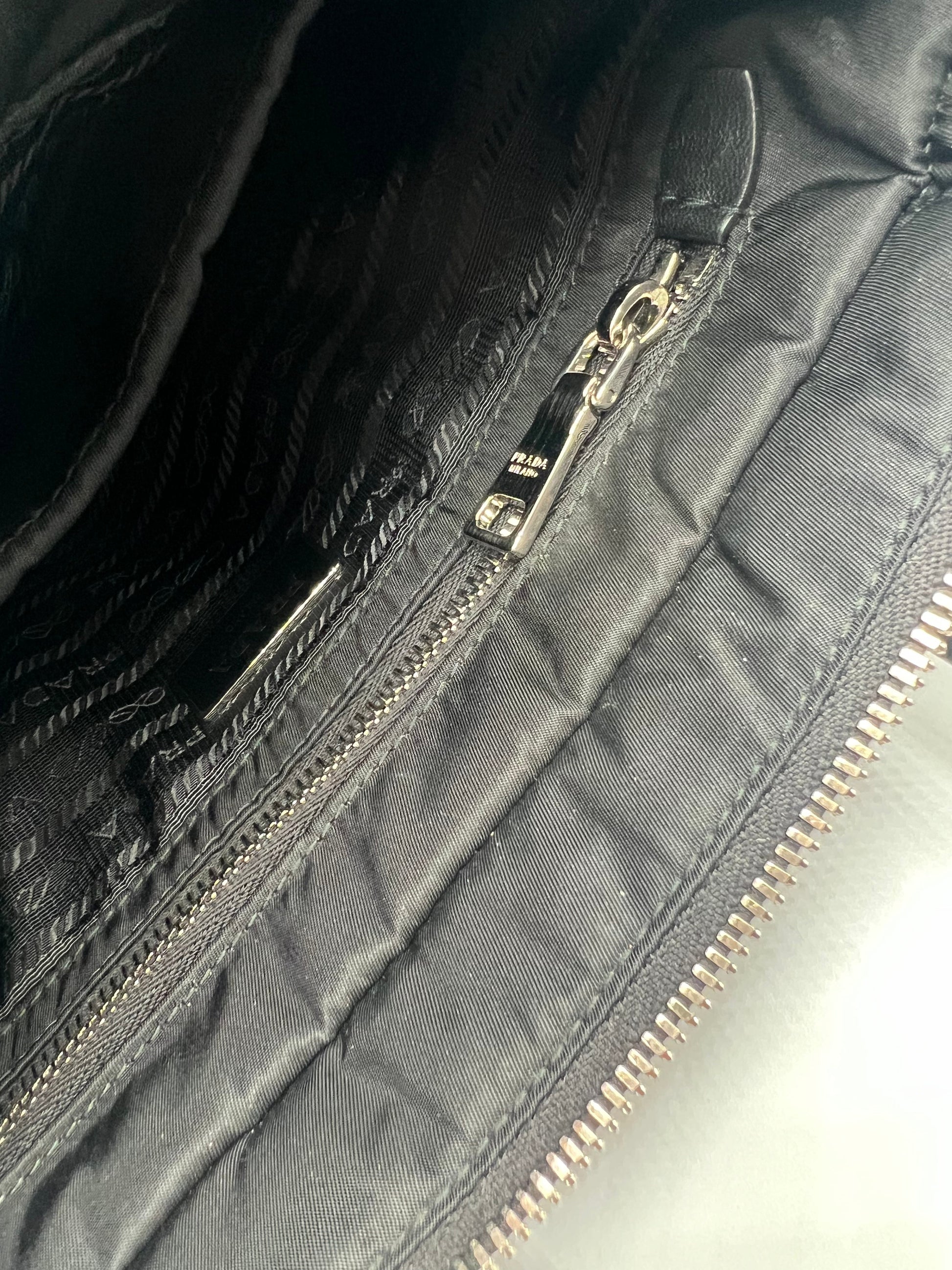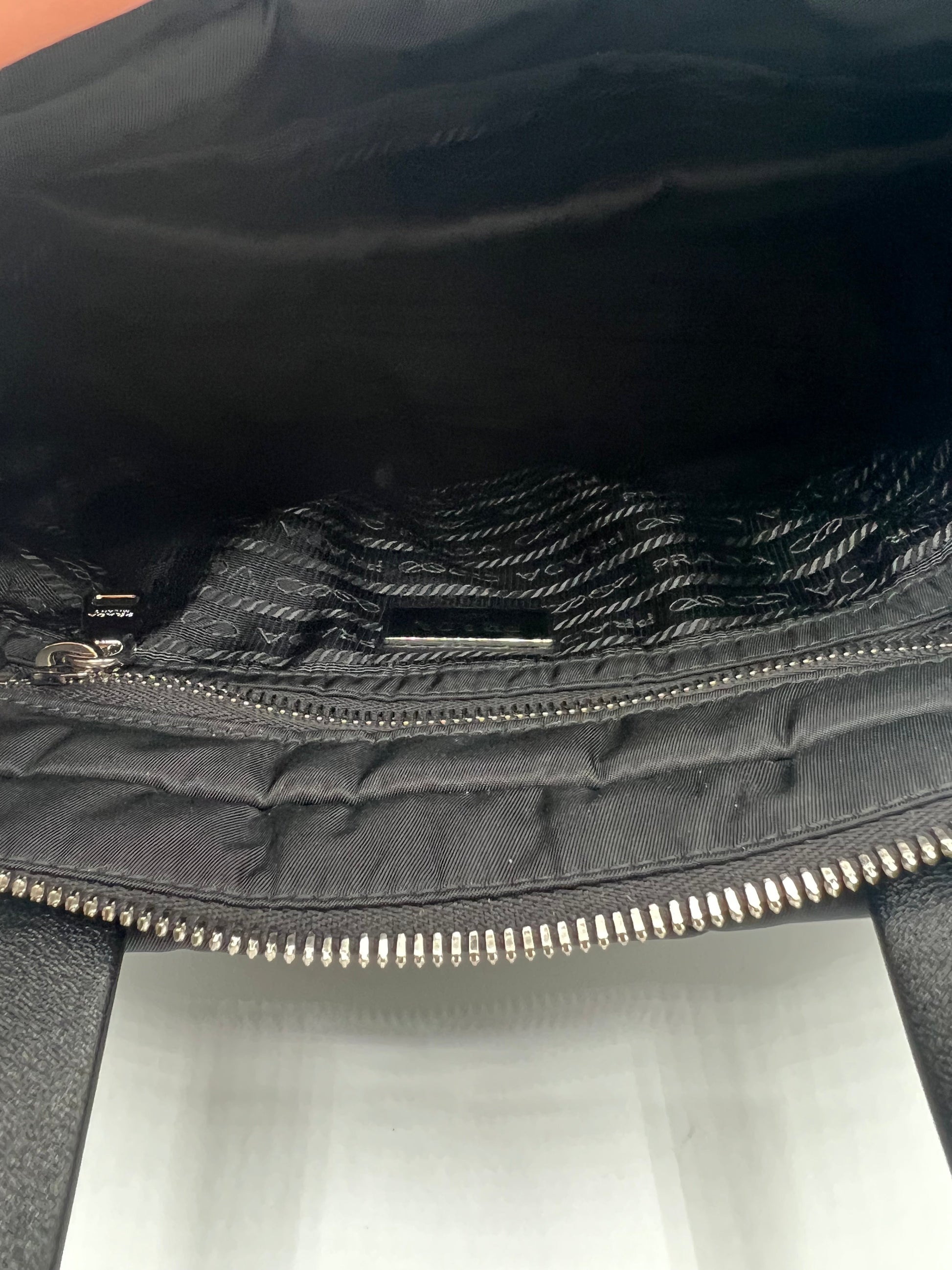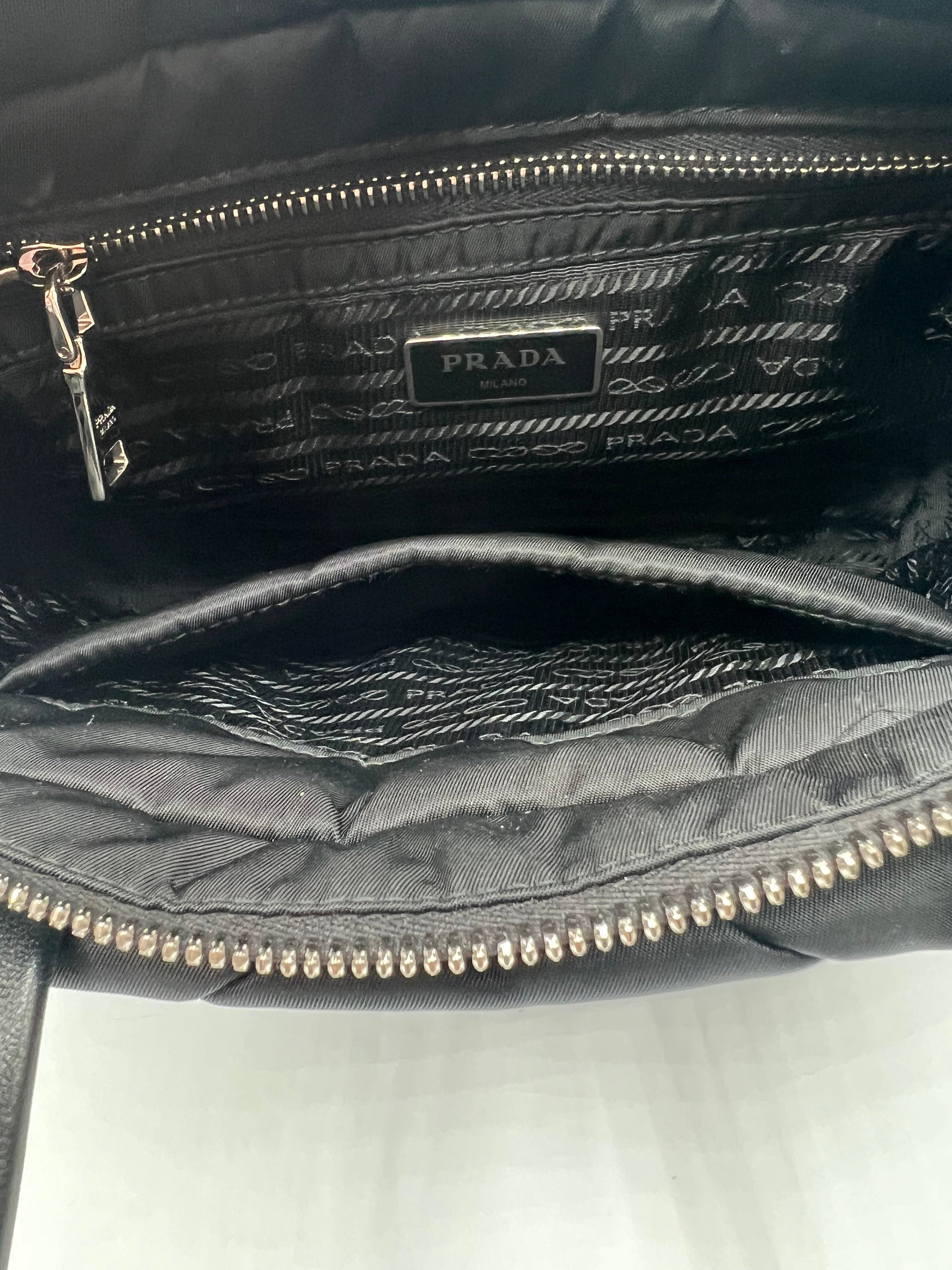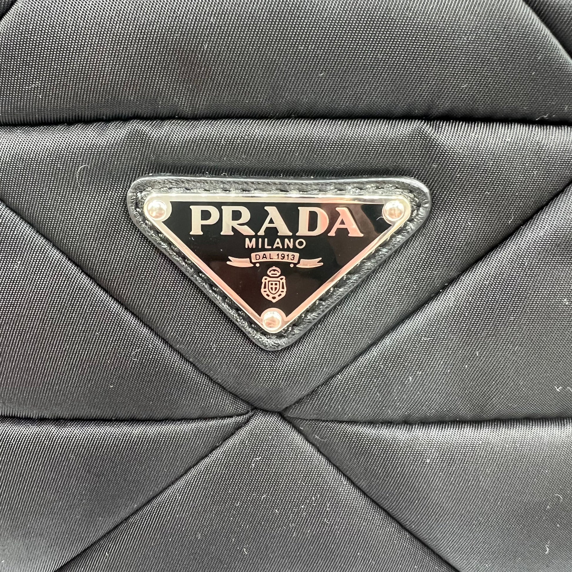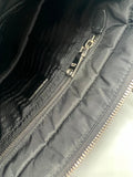 If you are looking for a high quality, low maintenance bag, she might be the one for you. This quilted re-nylon tessuto tote is in pristine condition and can be worn two ways, either a tote or a crossbody. Attachable straps to d-rings makes it super easy to convert the tote into a crossbody. The internal compartment is large enough to hold your essentials and can possibly fit an Ipad. She is lined with fabric so it makes cleaning the bag simple.