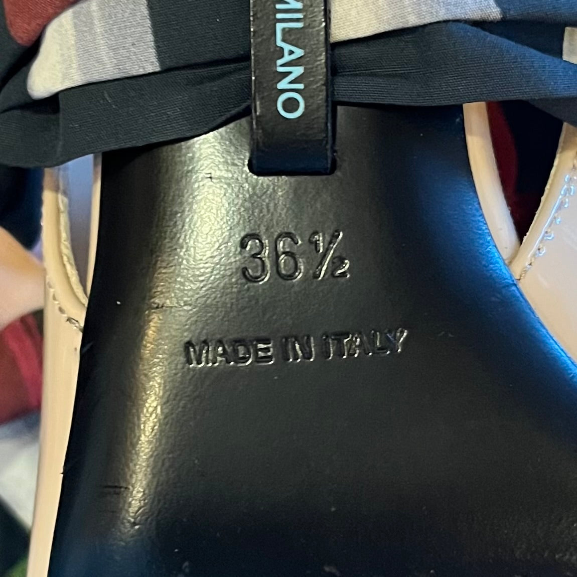 - Exterior: Small transfer marks around toe bed, Soles show wear. Patent is still clear and glossy. Color is bright and vibrant. Overall very good condition.