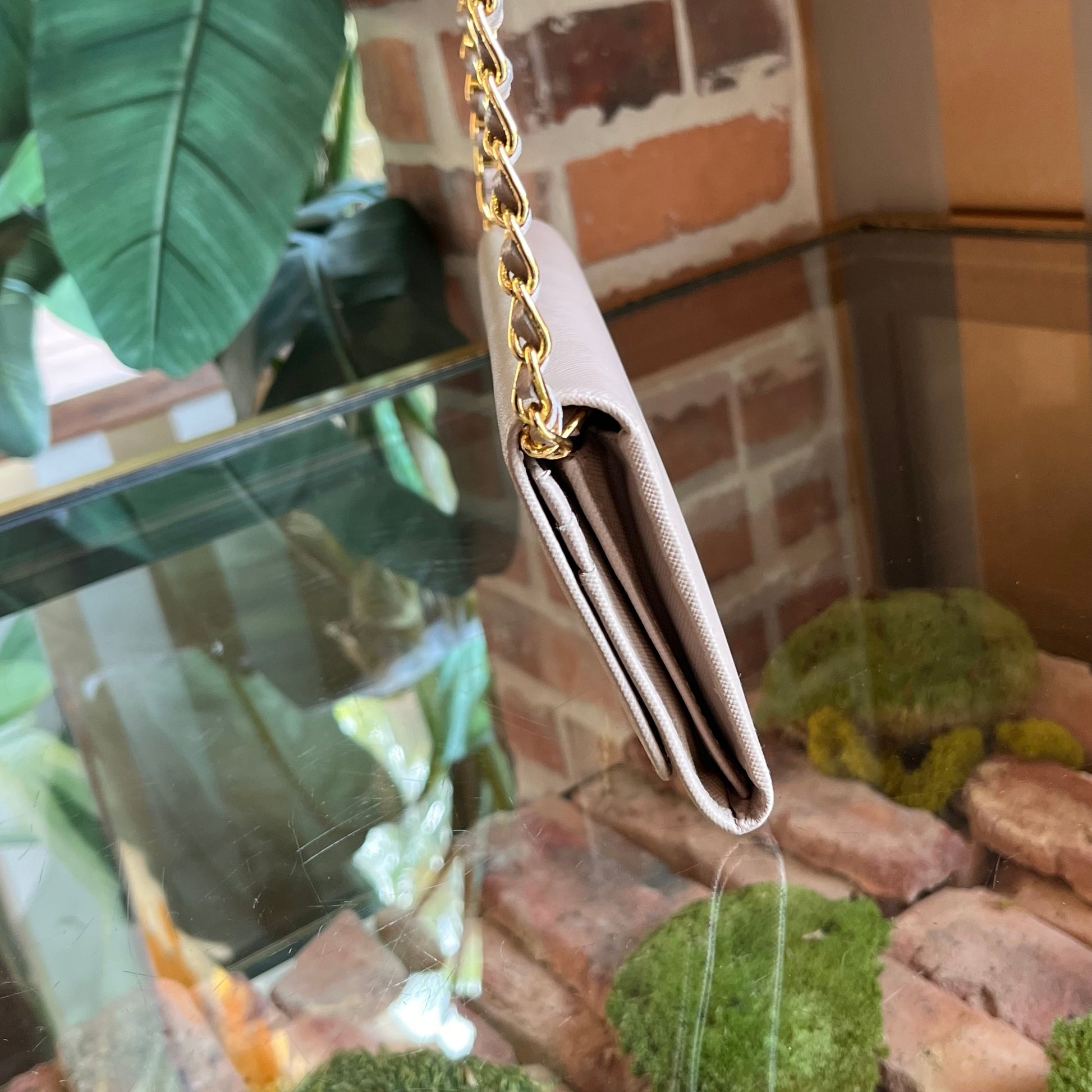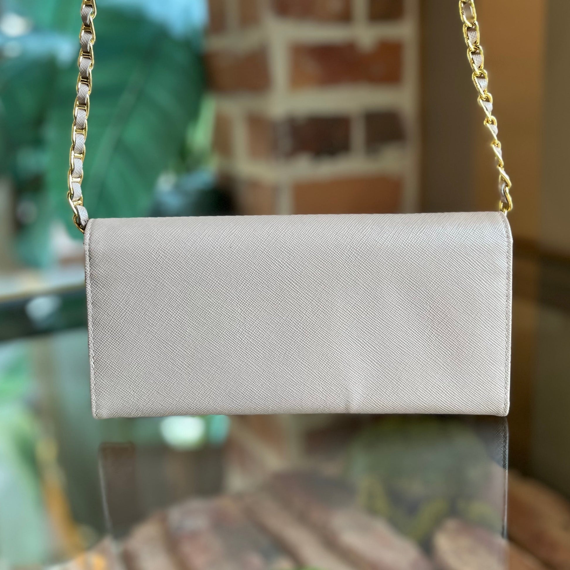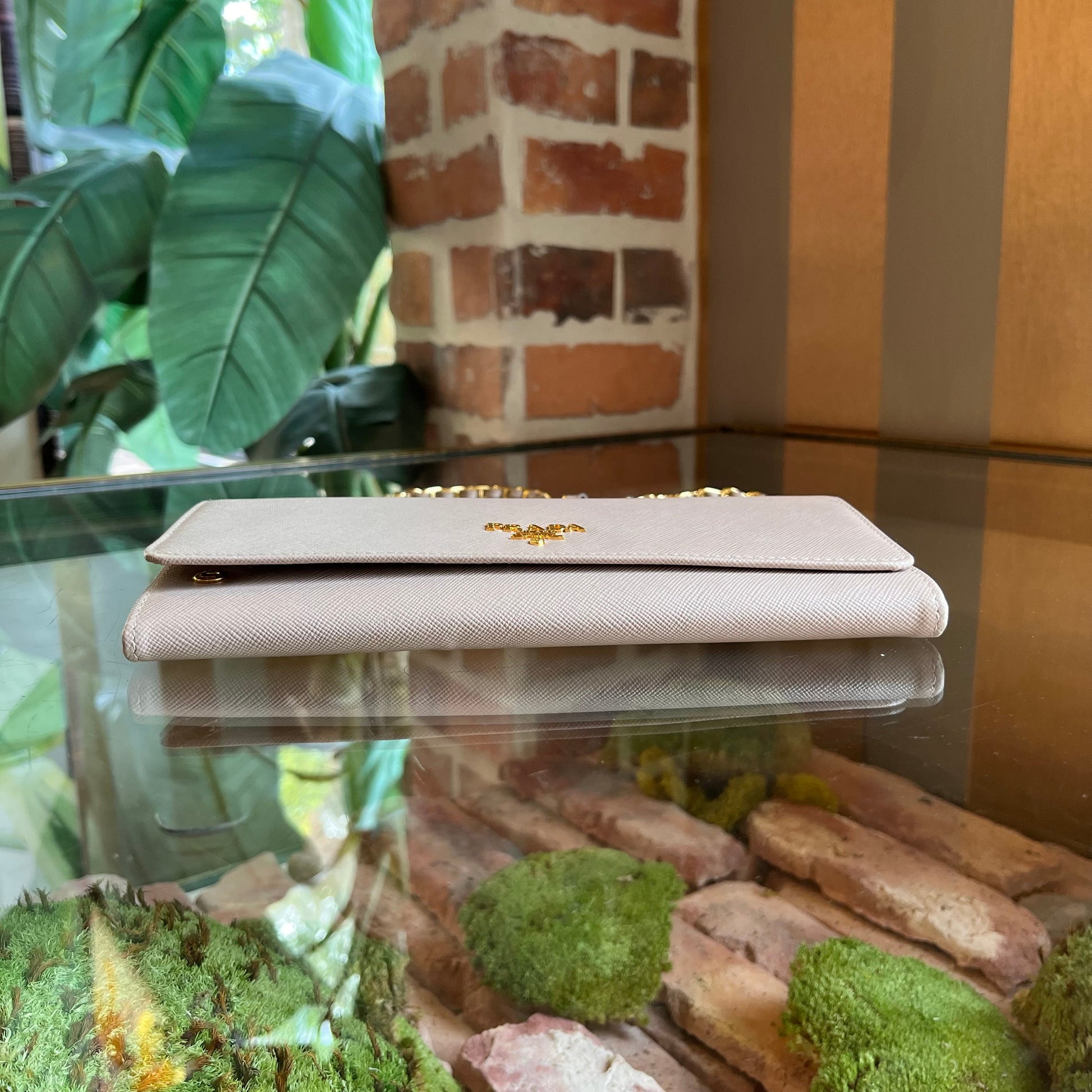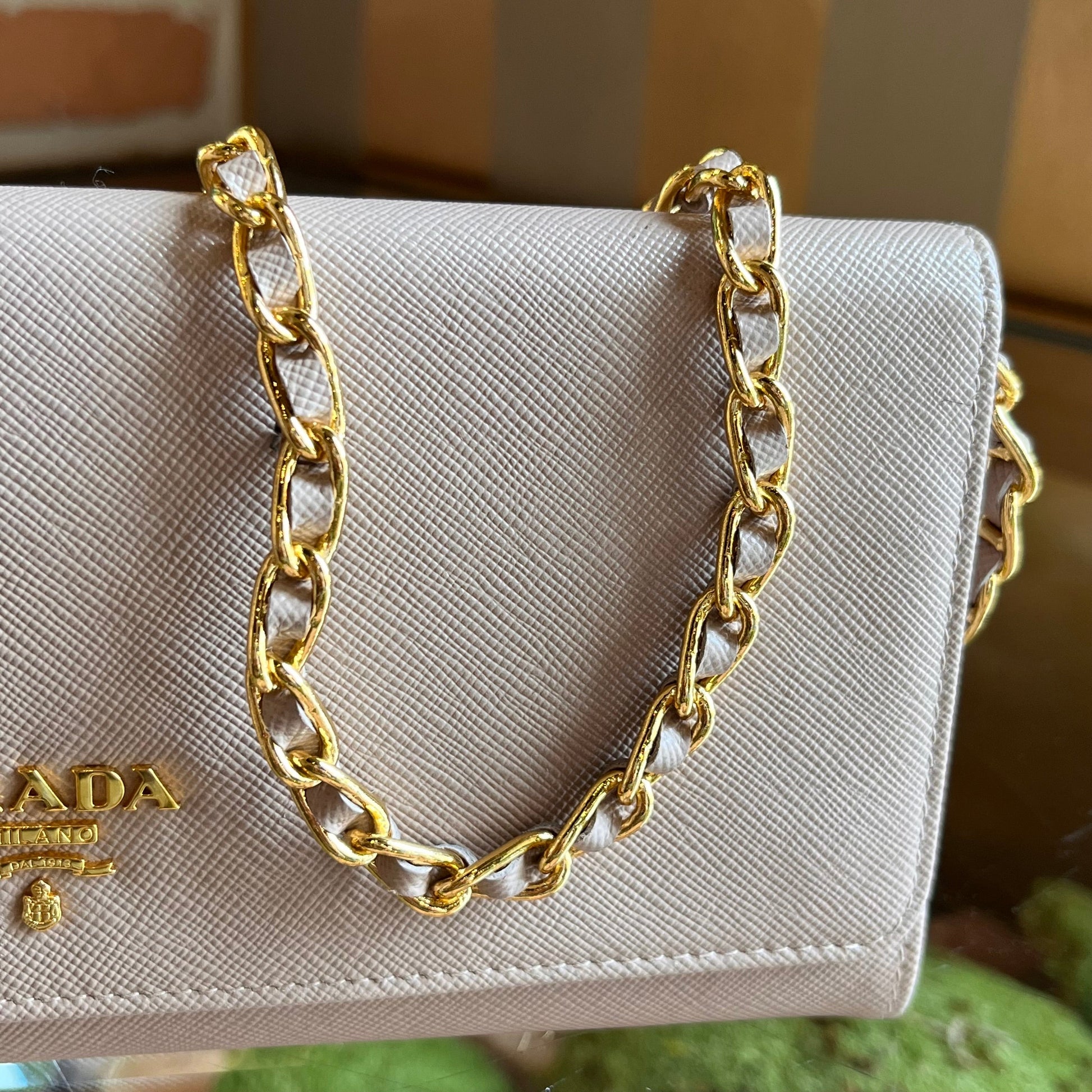 PRADA Wallet on Chain Powder Pink Saffiano Leather Crossbody Bag