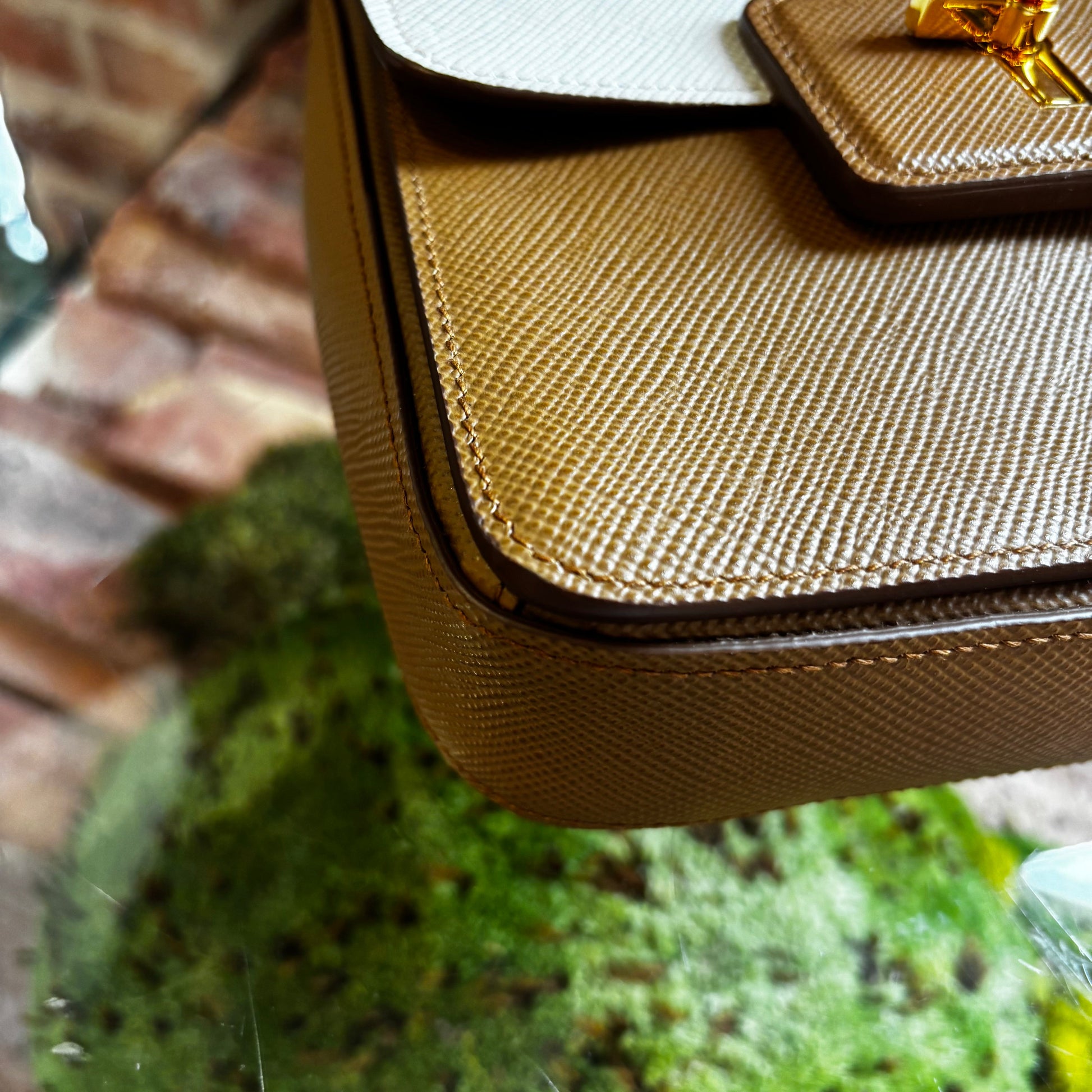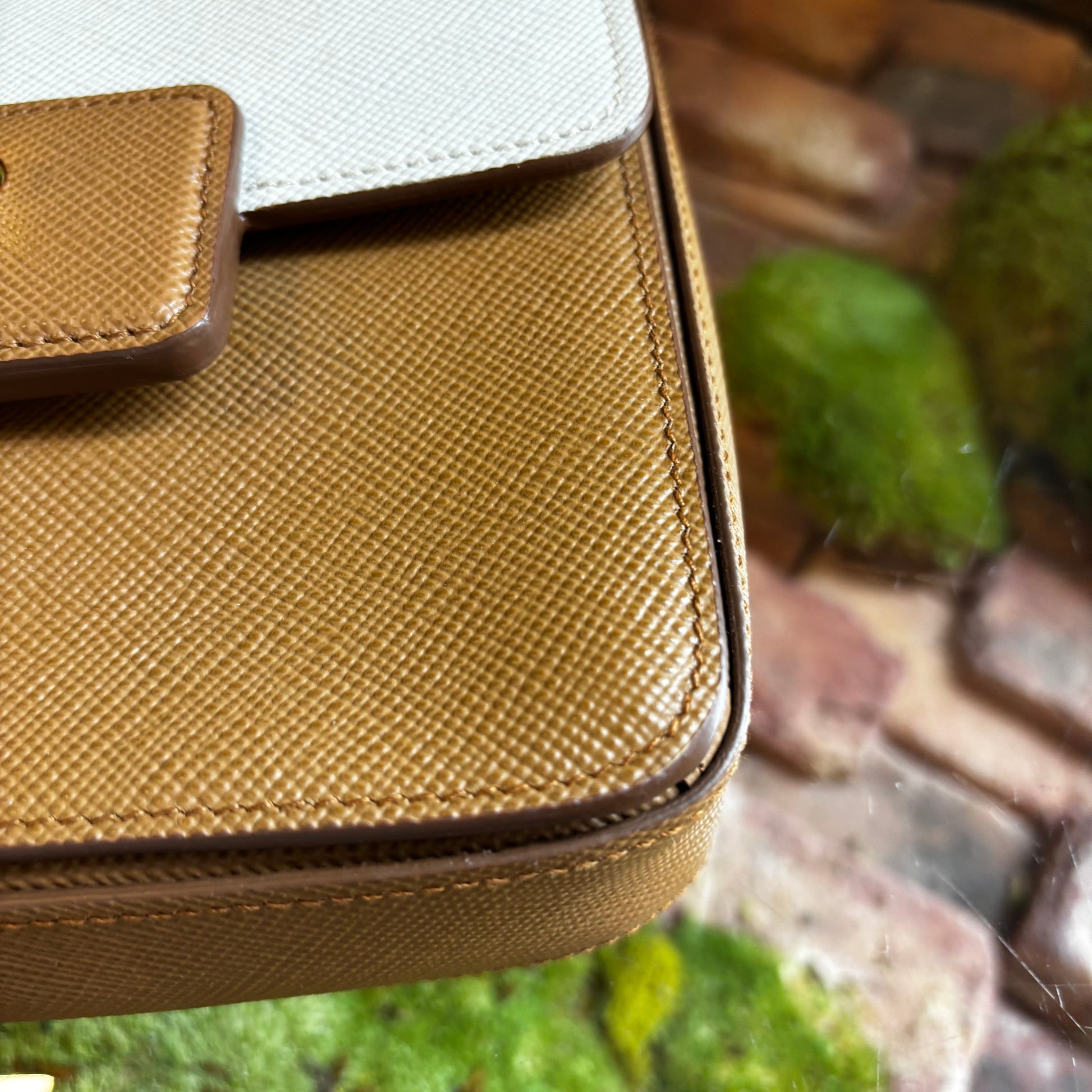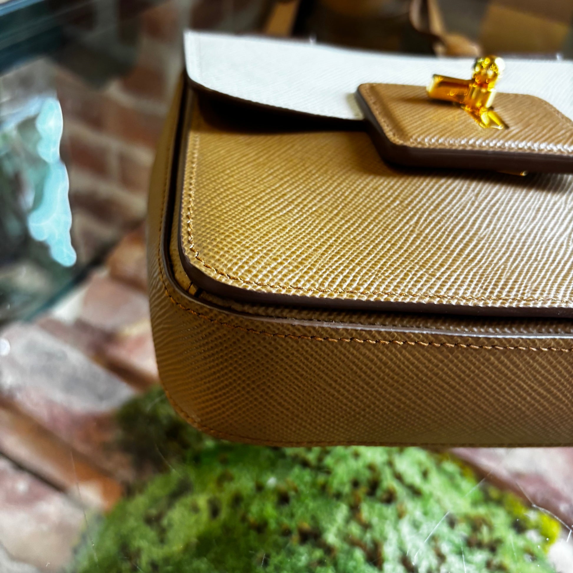 PRADA Saffiano Pattina Caramel Talco Crossbody
