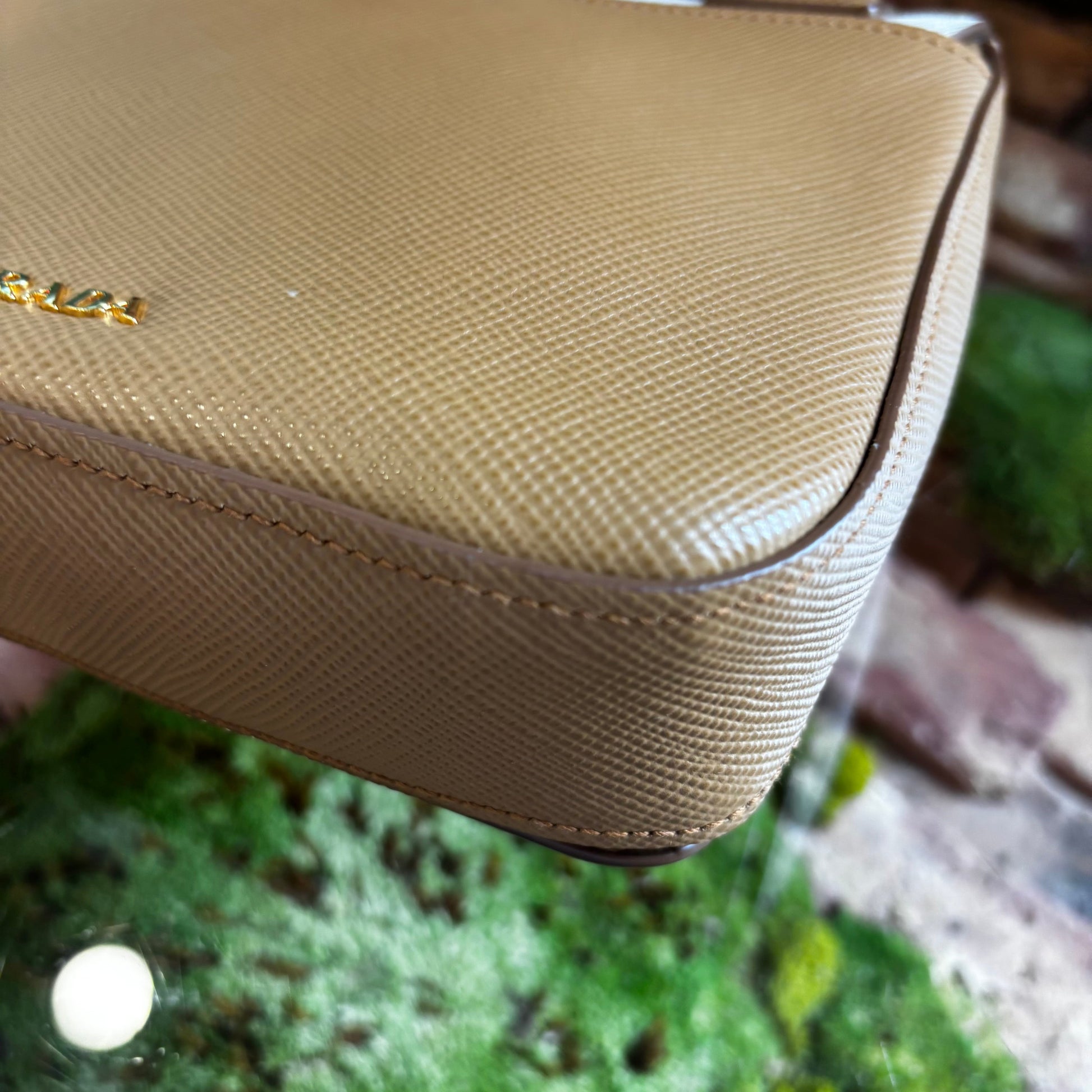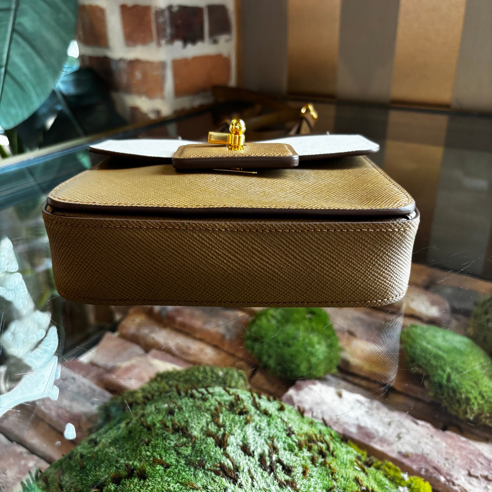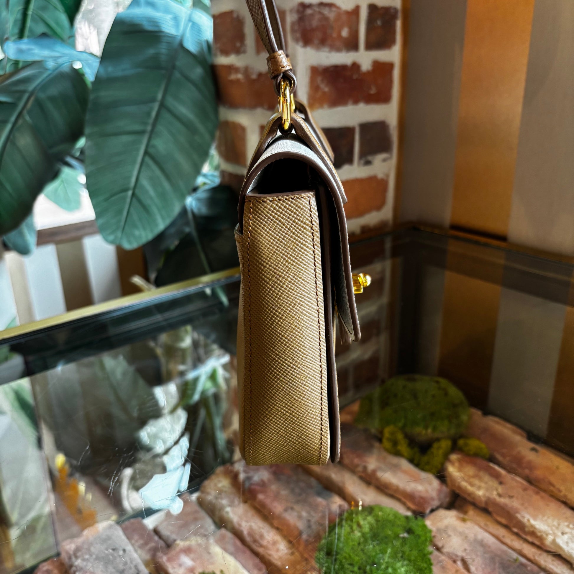 PRADA Saffiano Pattina Caramel Talco Crossbody