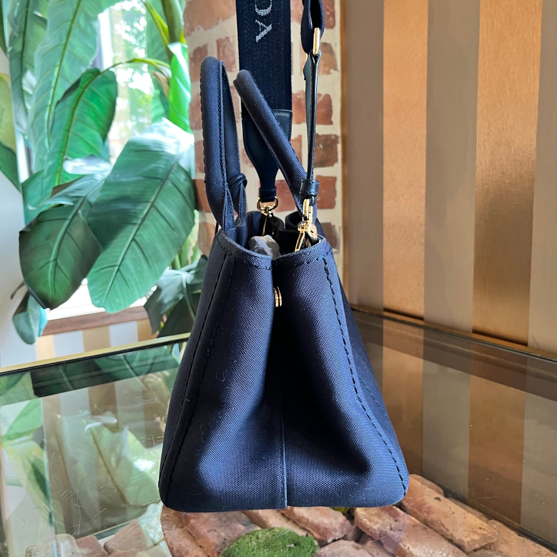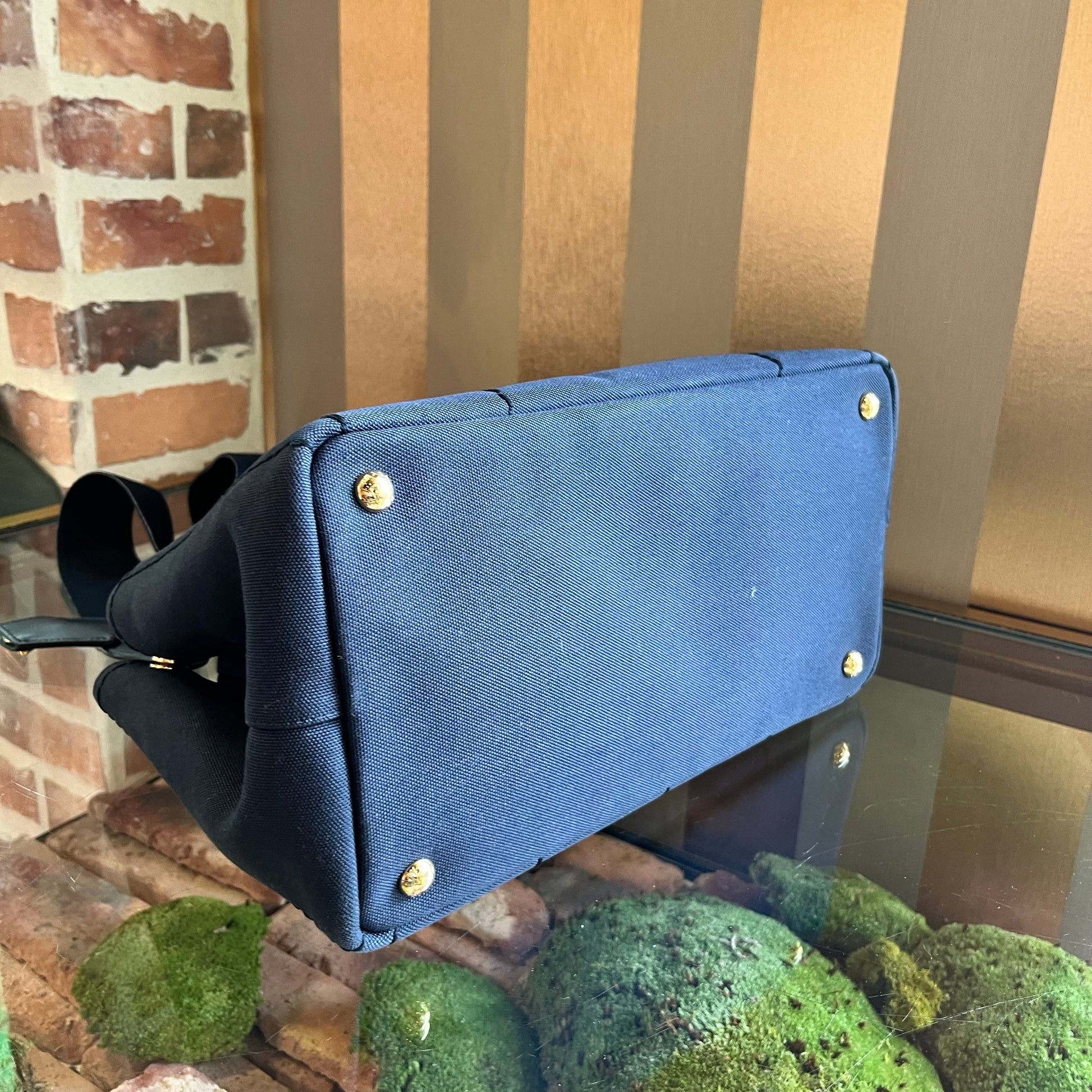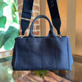 PRADA Jardinière Large Navy Blue Cotton Canvas Tote