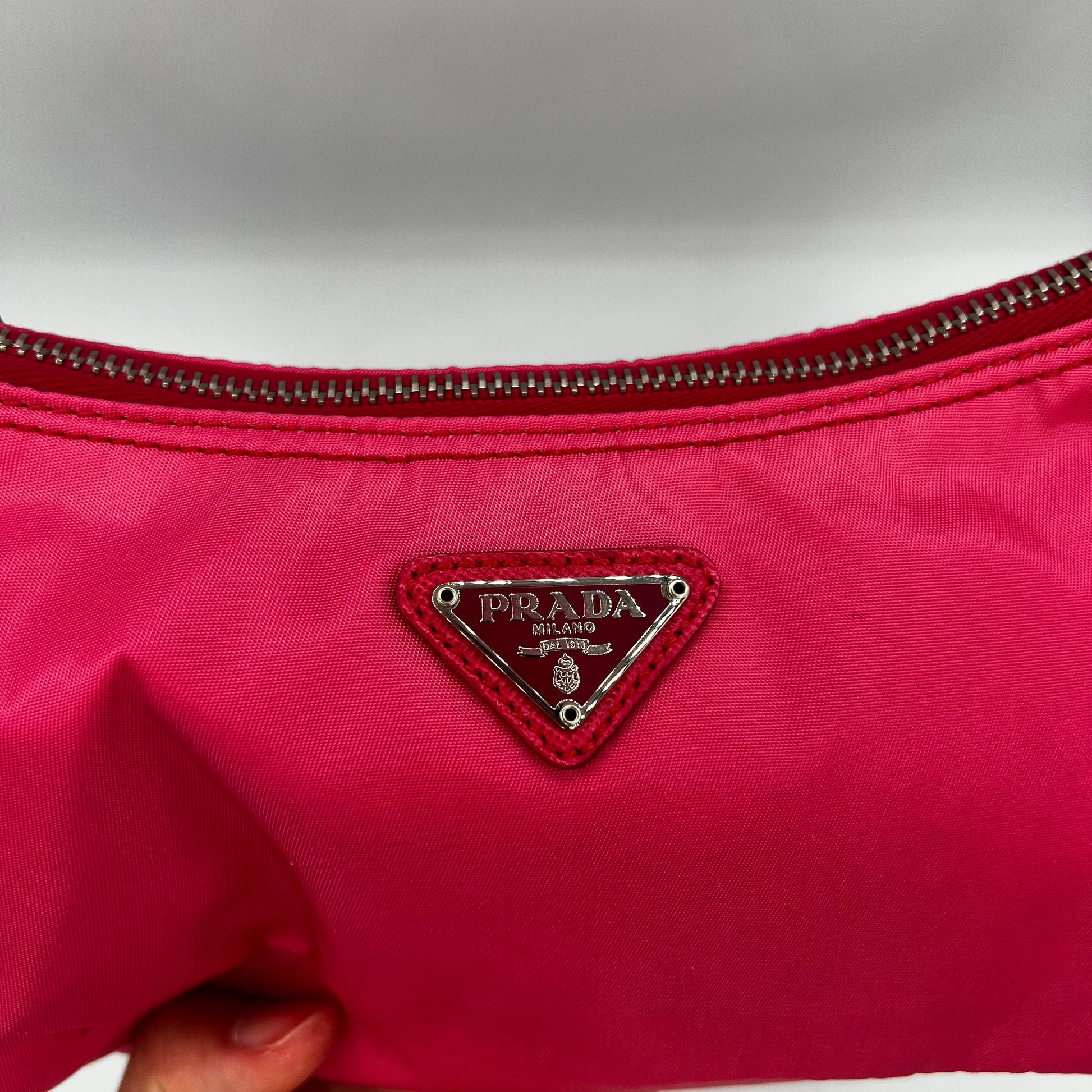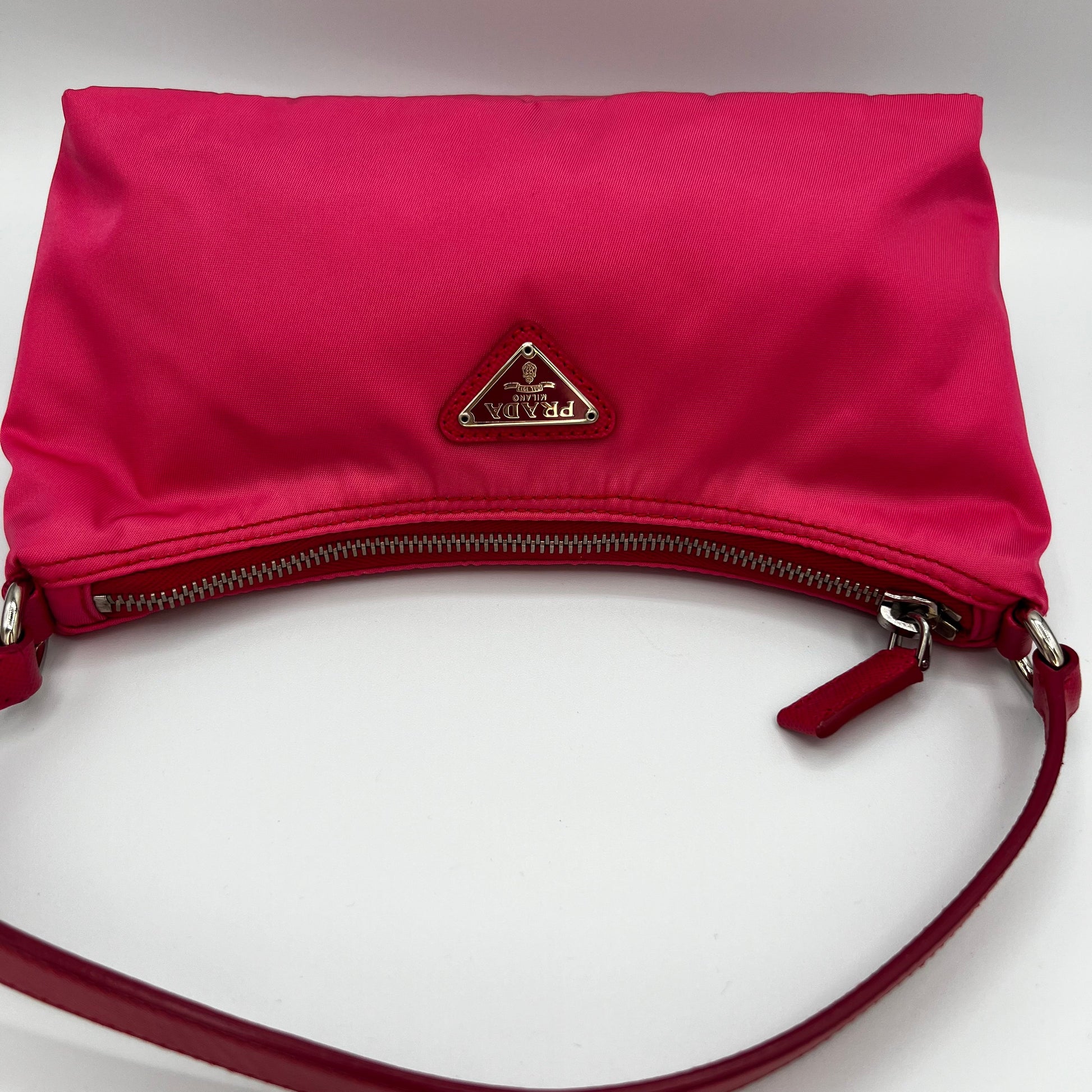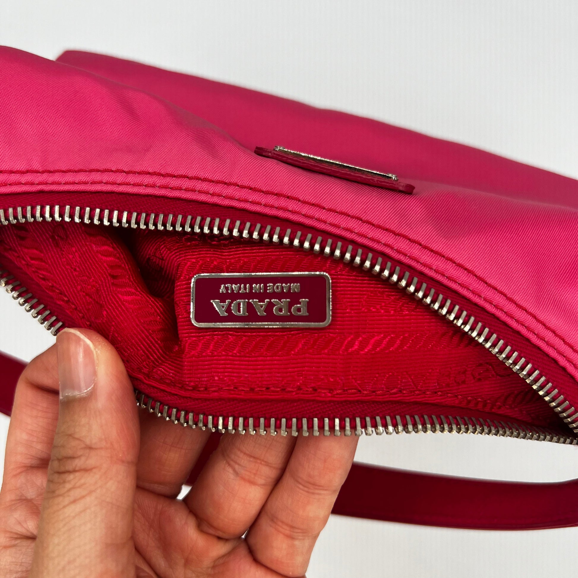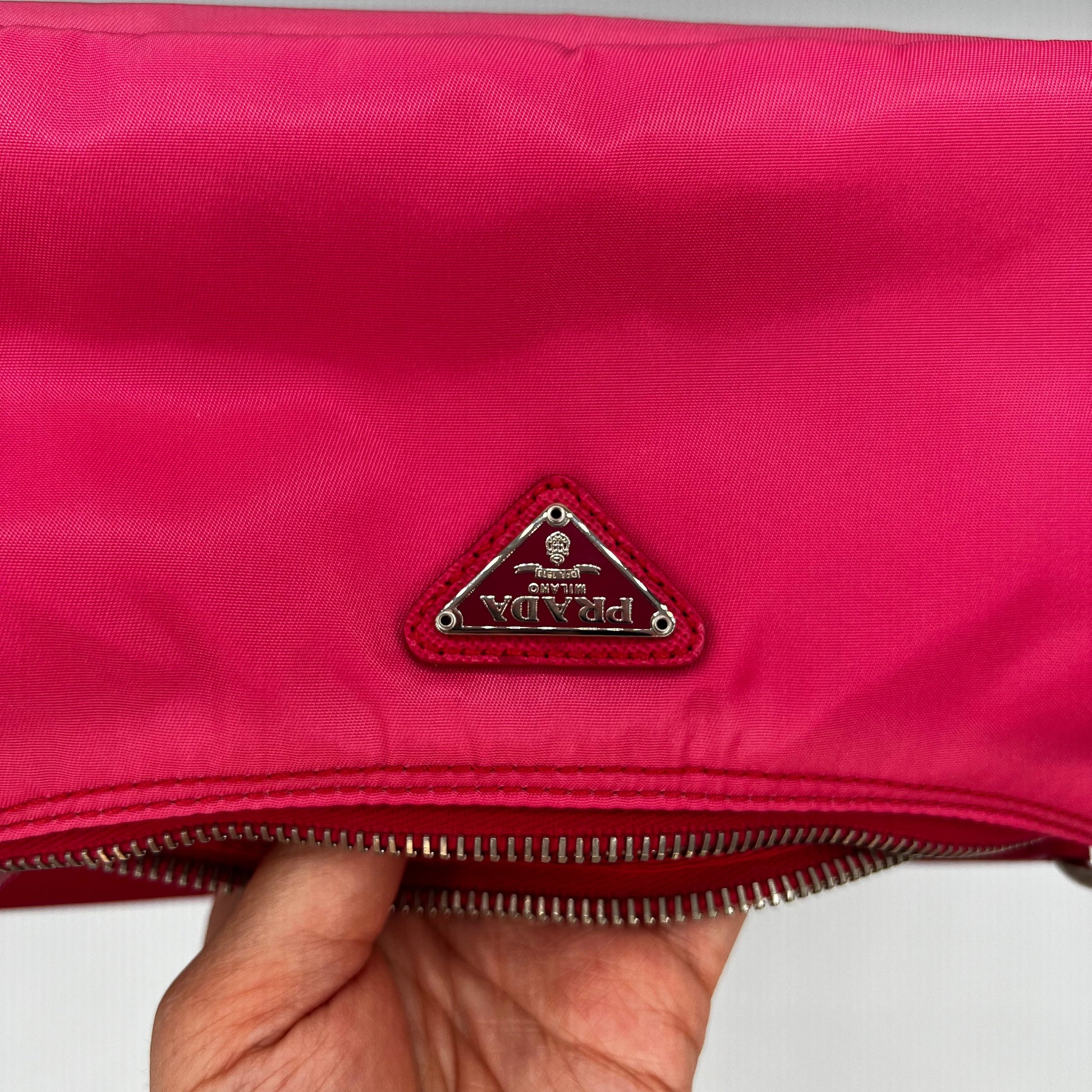 Rare Pink Nylon & Leather Shoulder Bag