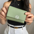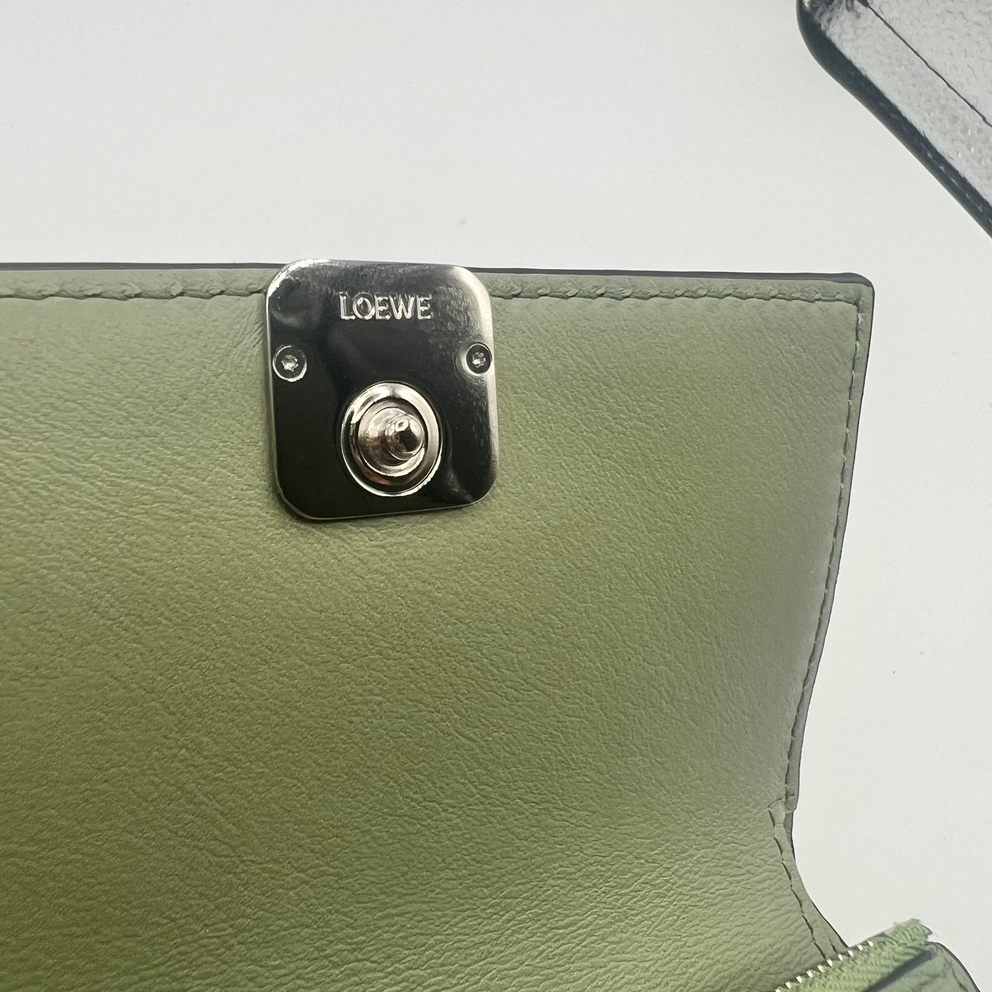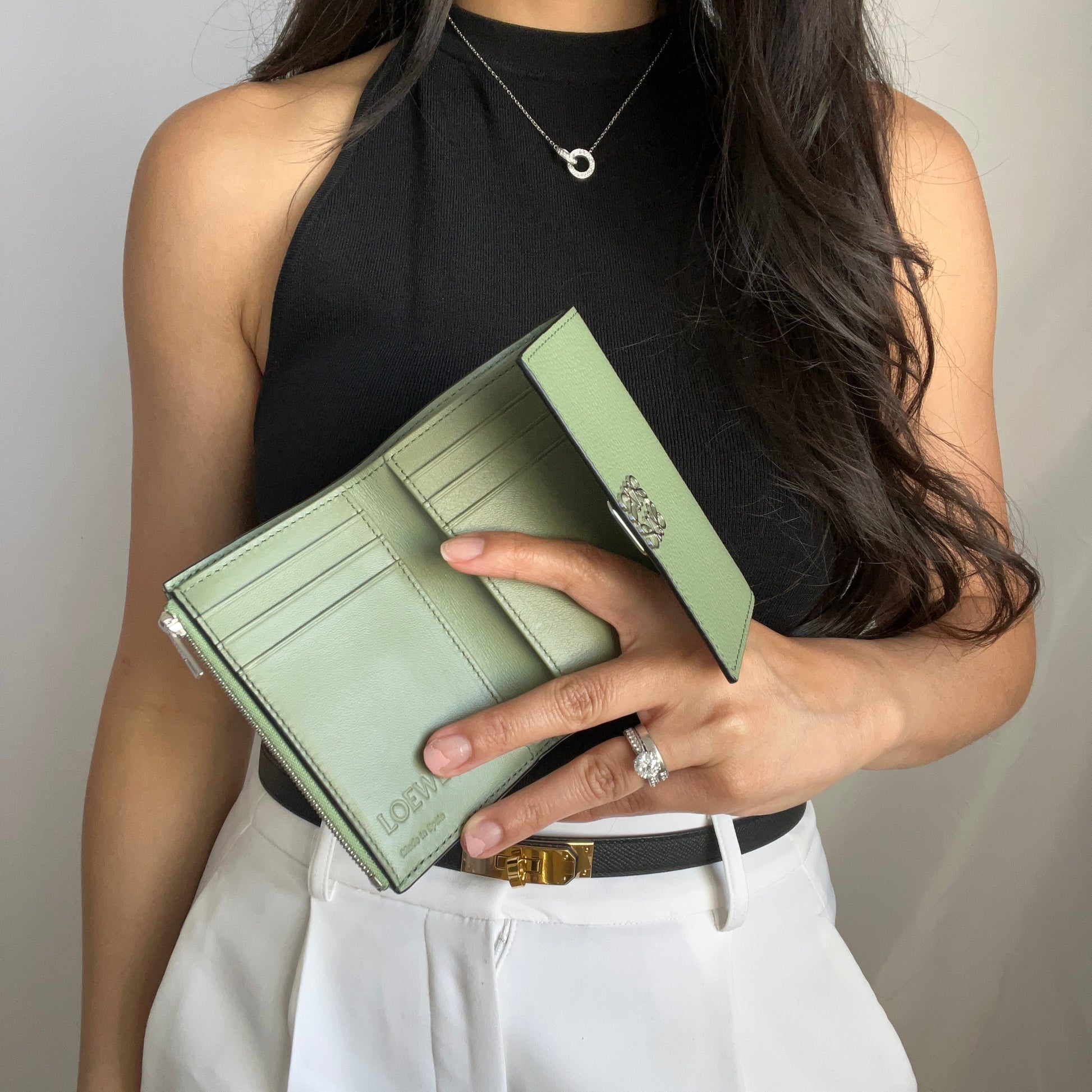 The color is called Rosemary, which is this beautiful earthy green tone wallet that highlights the iconic Loewe Anagram. What makes her even more perfect is the smoothe pebble grain leather she is made out… it’s so buttery.