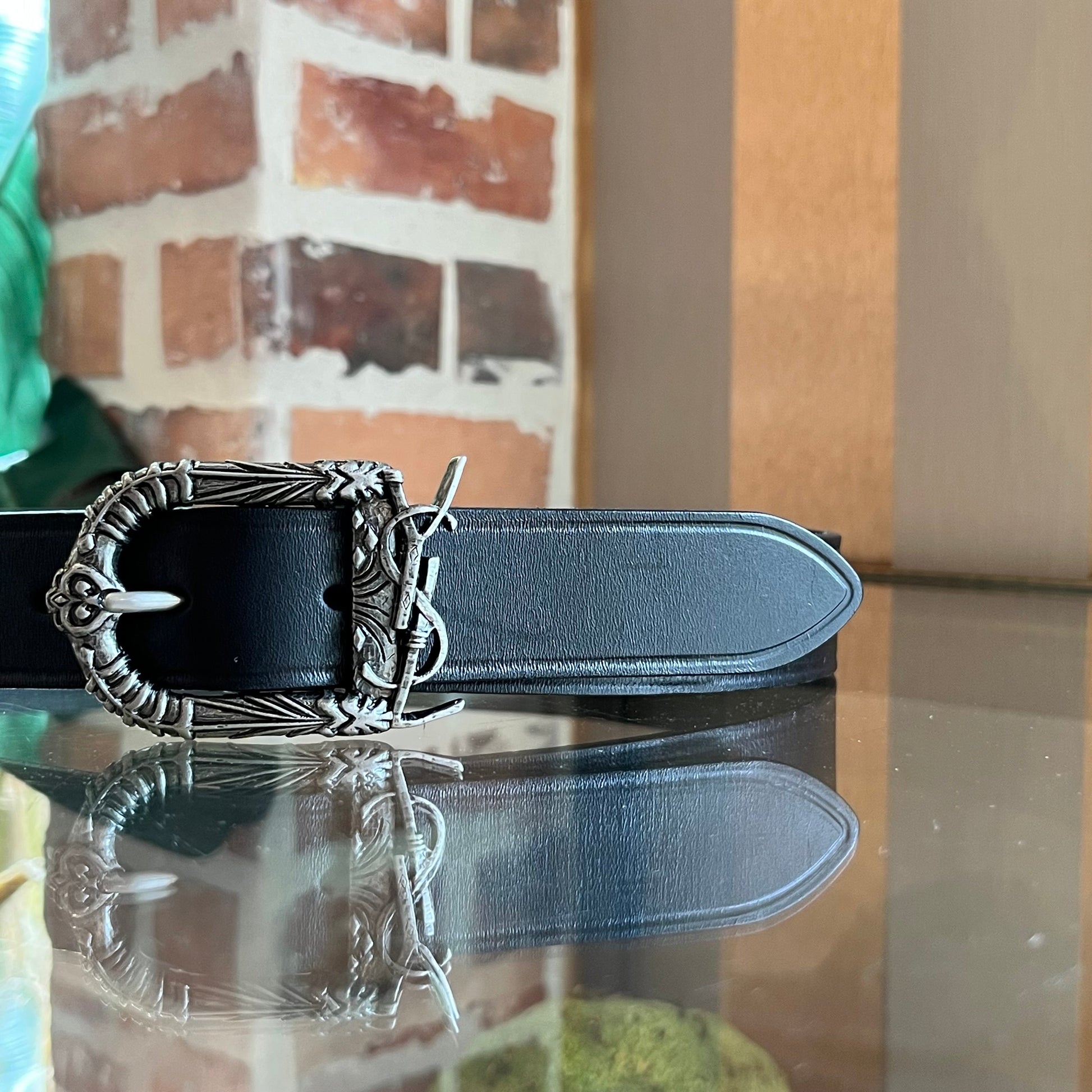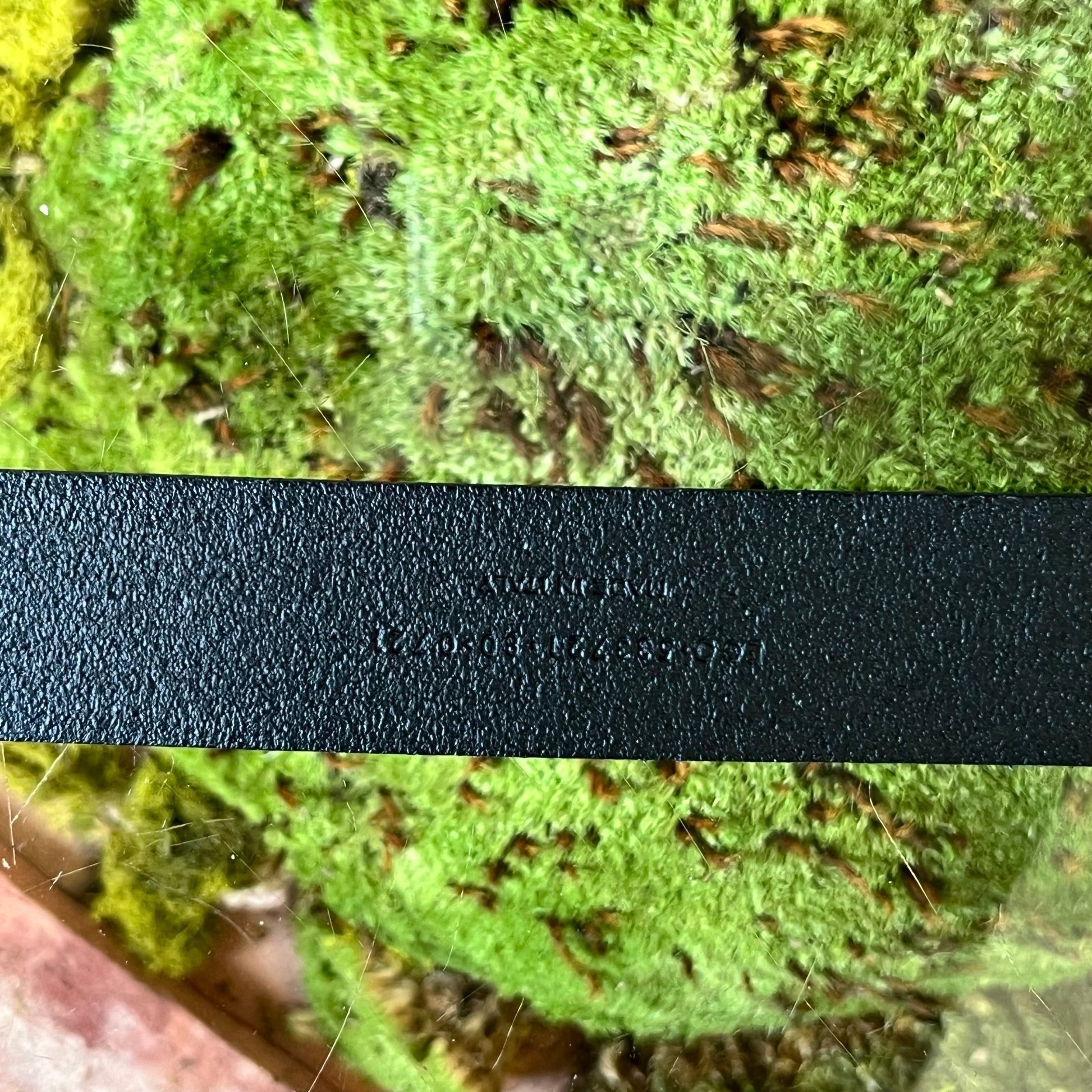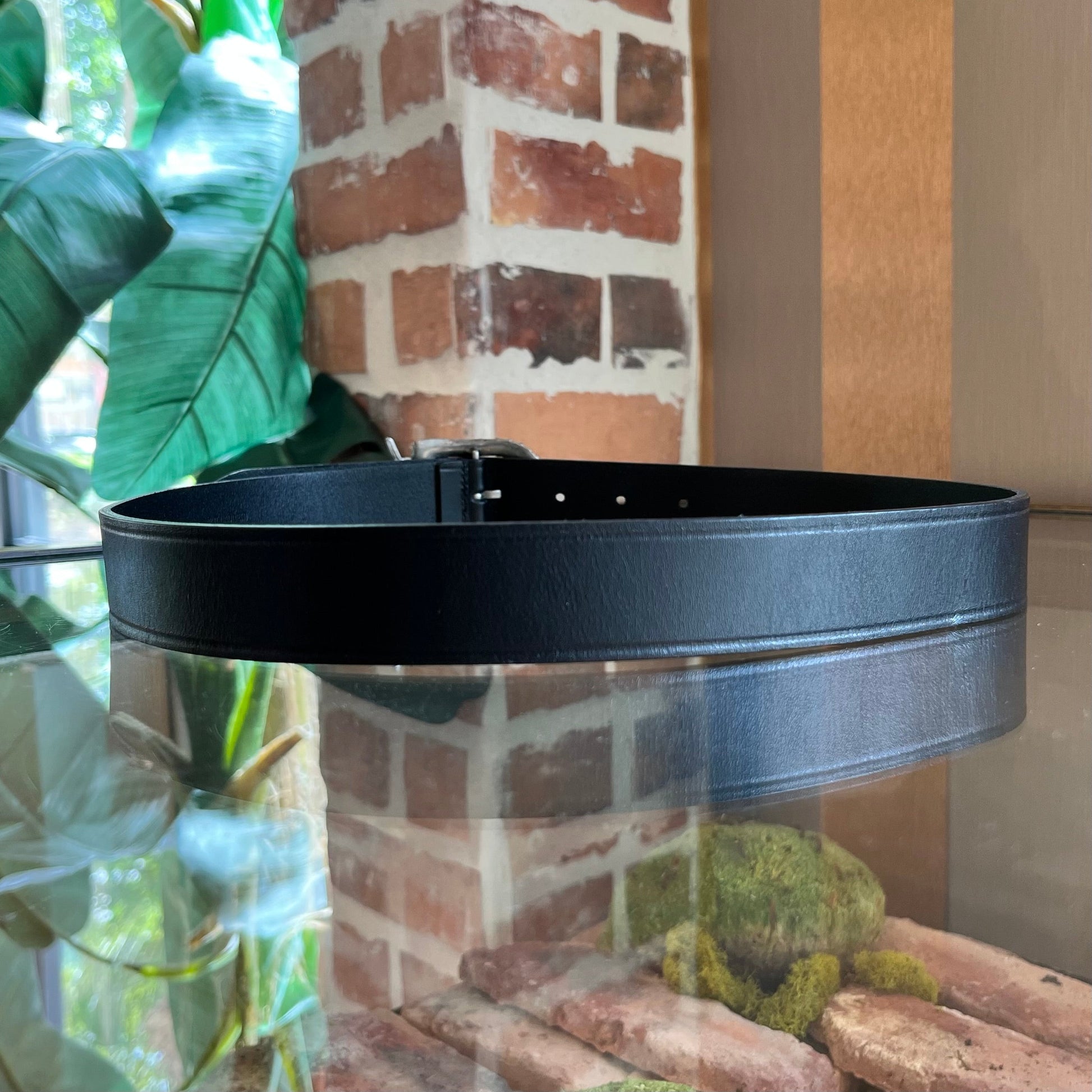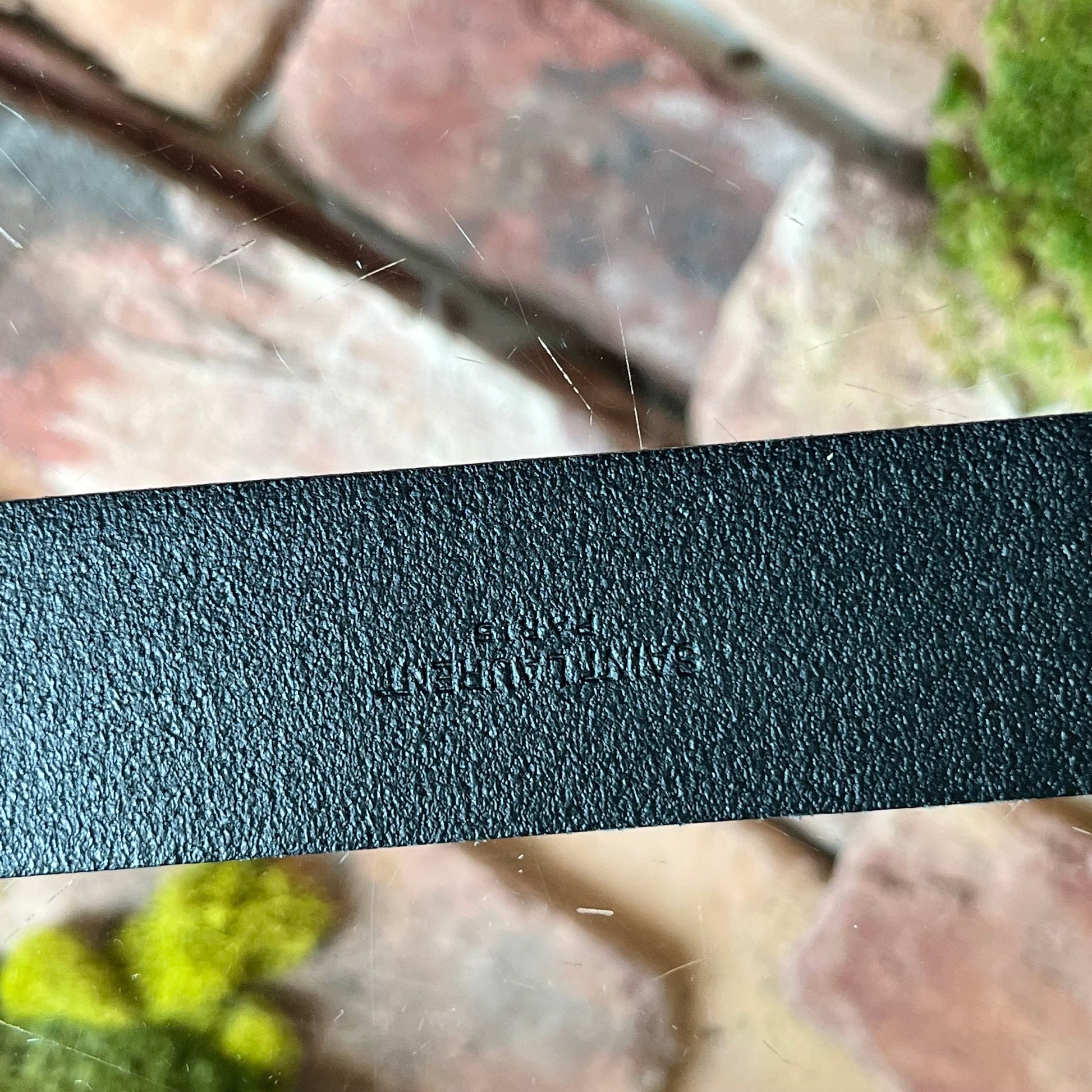 A sleek belt in Saint Laurent's monogram-embossed leather, featuring the brand's subtle "Celtique" buckle for understated edge. The adjustable fit and versatile width make it perfect for tailoring or jeans, while the tonal branding keeps it polished. A minimalist staple with rockstar DNA. B+ Very Good Condition