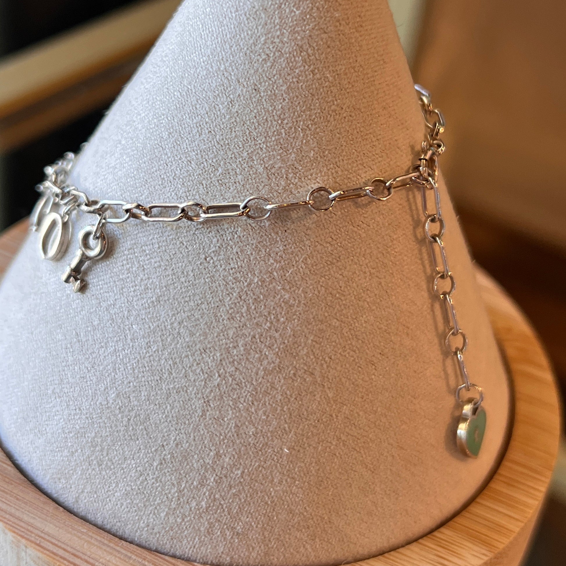 TIFFANY&CO. 925 Sterling Silver Enamel Love Notes Dangle Charm Bracelet