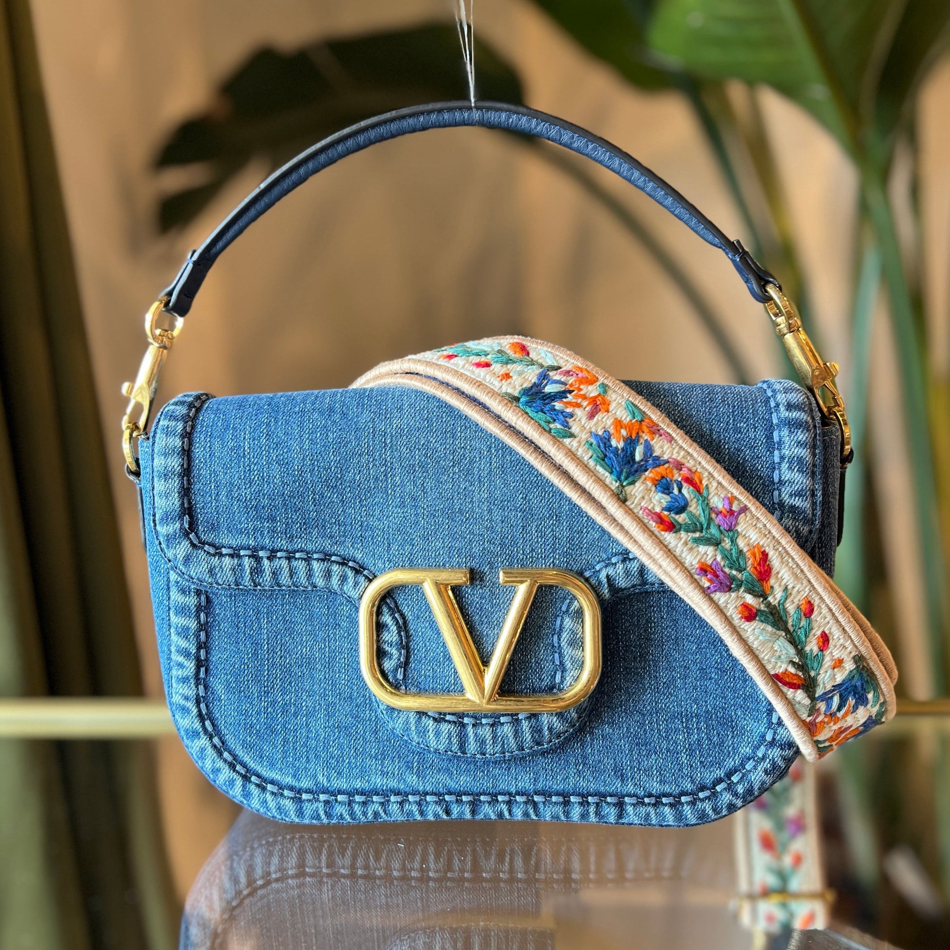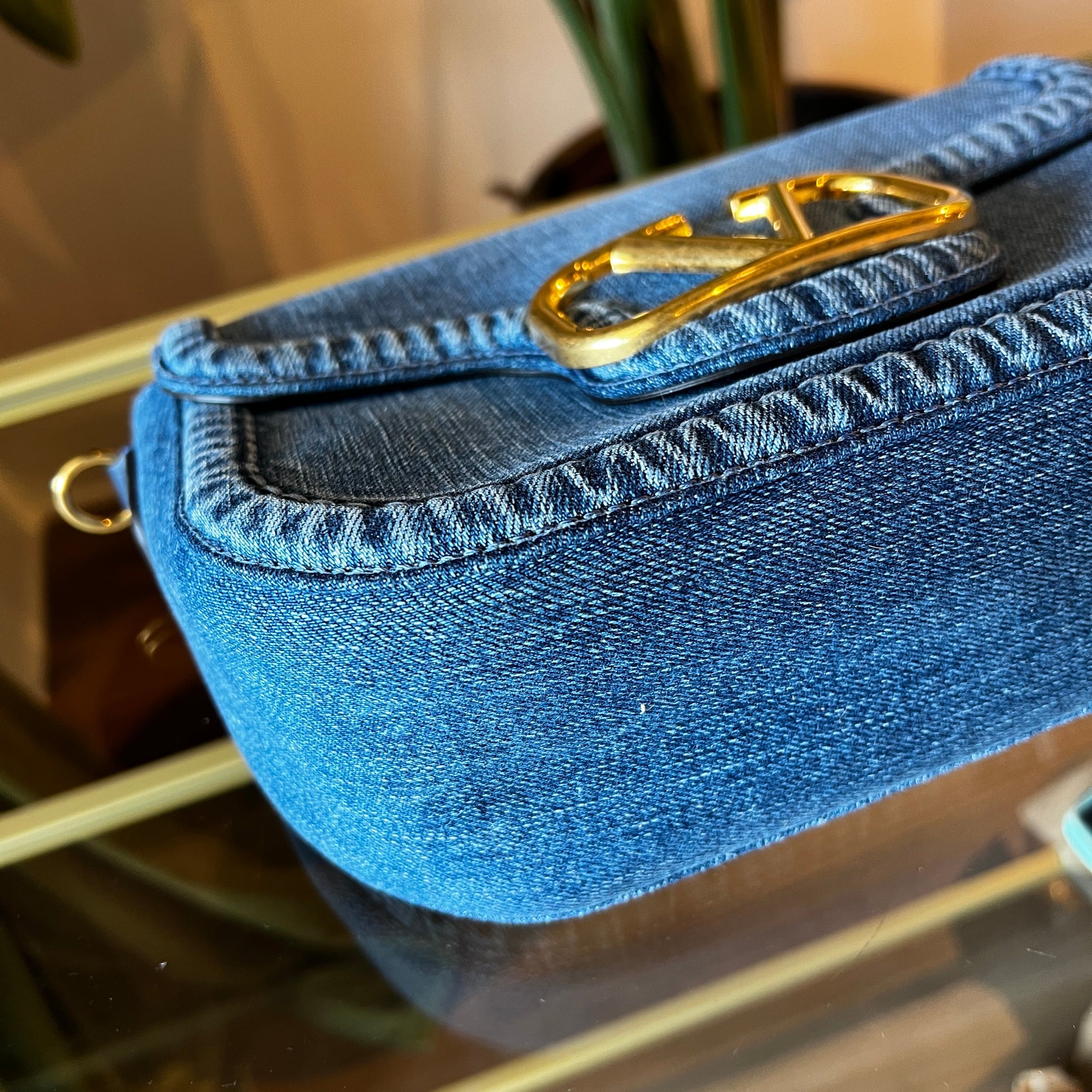 VALENTINO Denim V logo AllTime Shoulder Bag