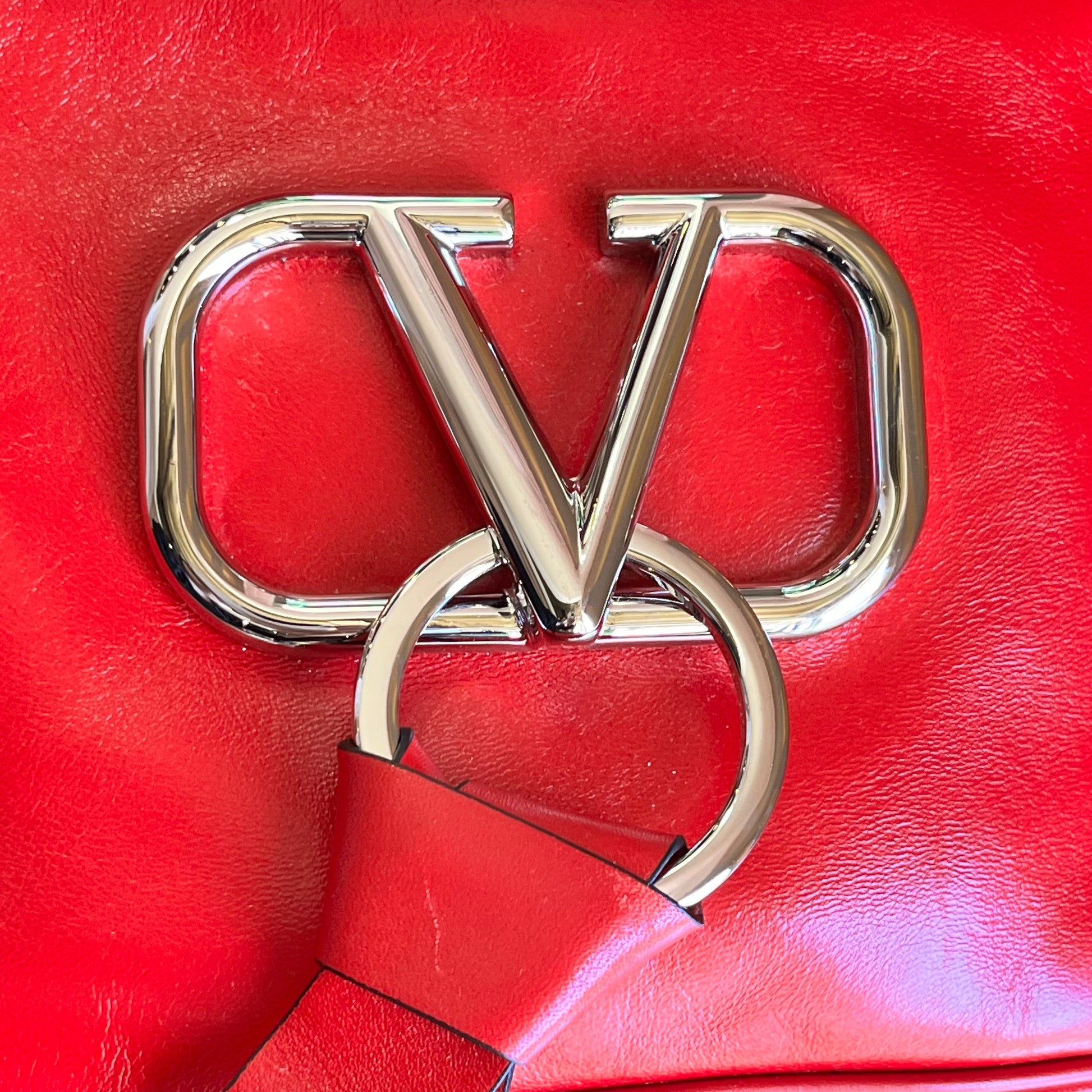A bold fusion of streetwise edge and Italian glamour, this belt bag features Valentino's signature VRing hardware against glossy leather for head-turning luminosity. The oversized silhouette and adjustable strap offer hands-free versatility, while the high-shine finish ensures it transitions effortlessly from day to night—proof that practicality can pack a couture punch. B+ Very Good Condition