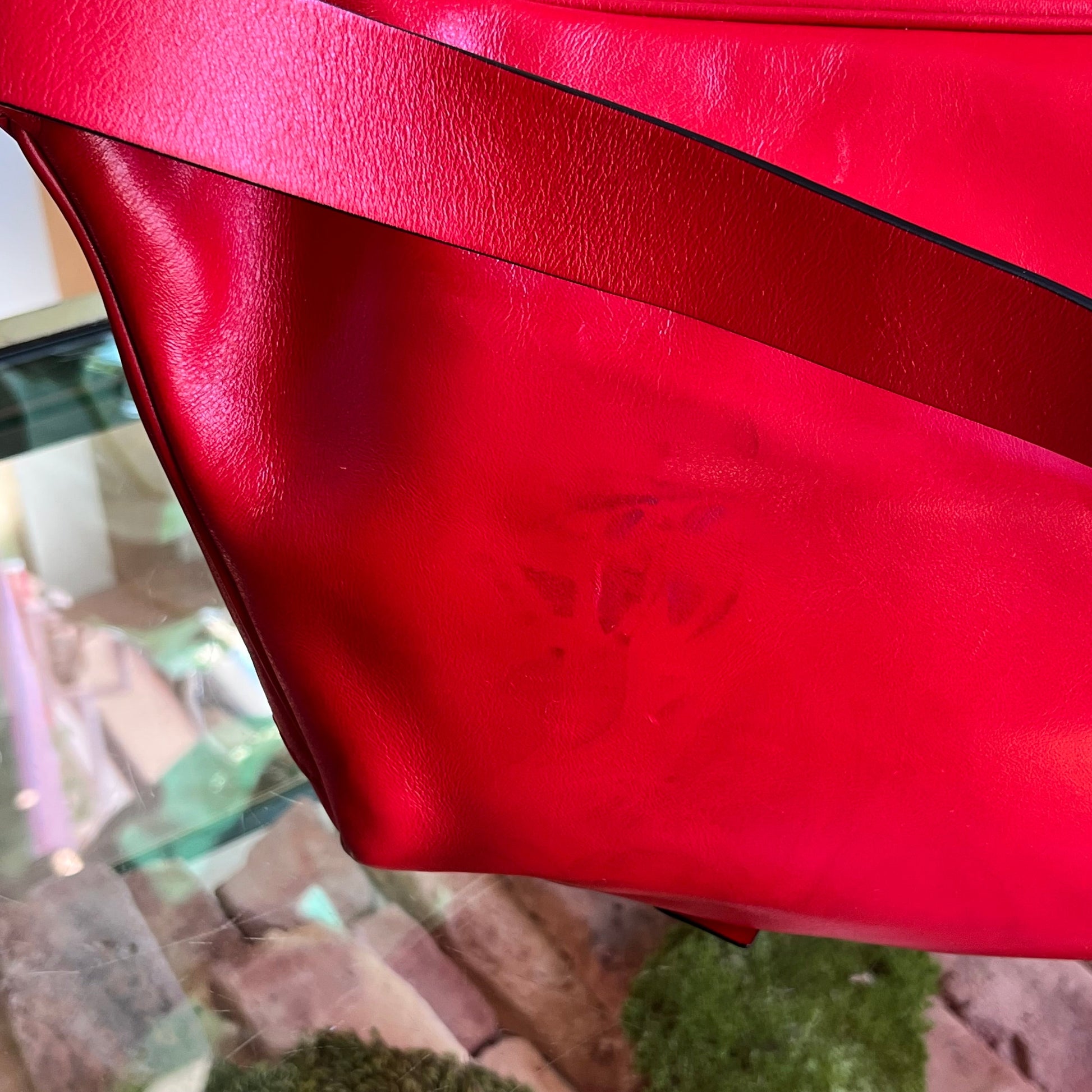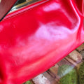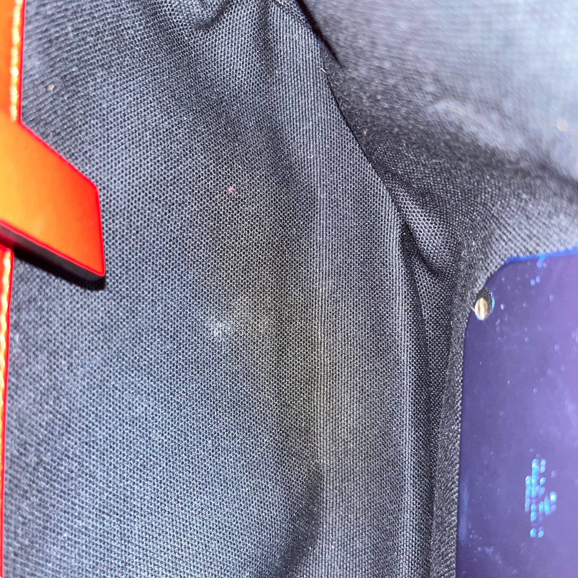 - Exterior: The leather is gorgeous and supple with discoloration, creasing, misshapenness and scratches.