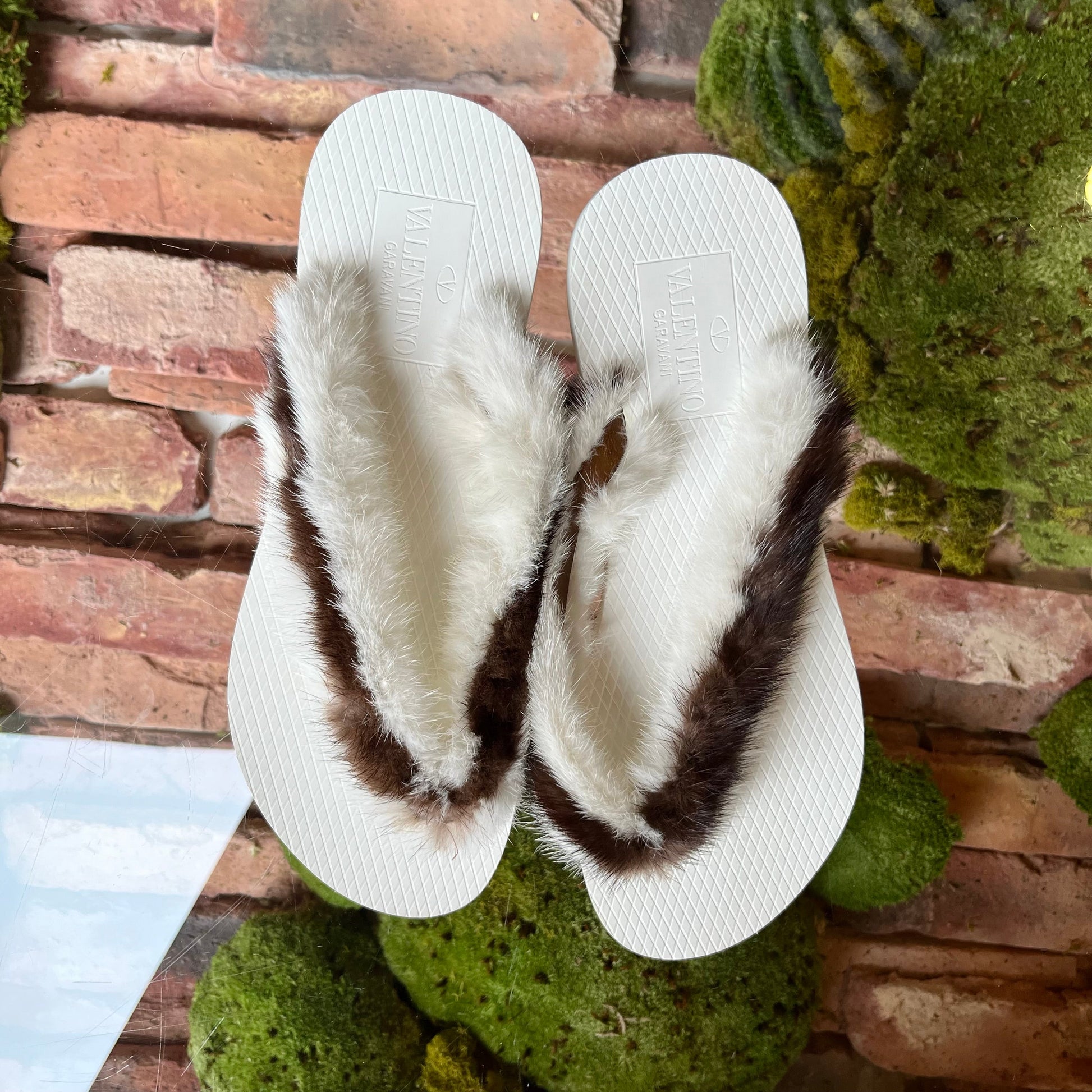 VALENTINO Mink Fur Thong Sandals SZ40(10US)